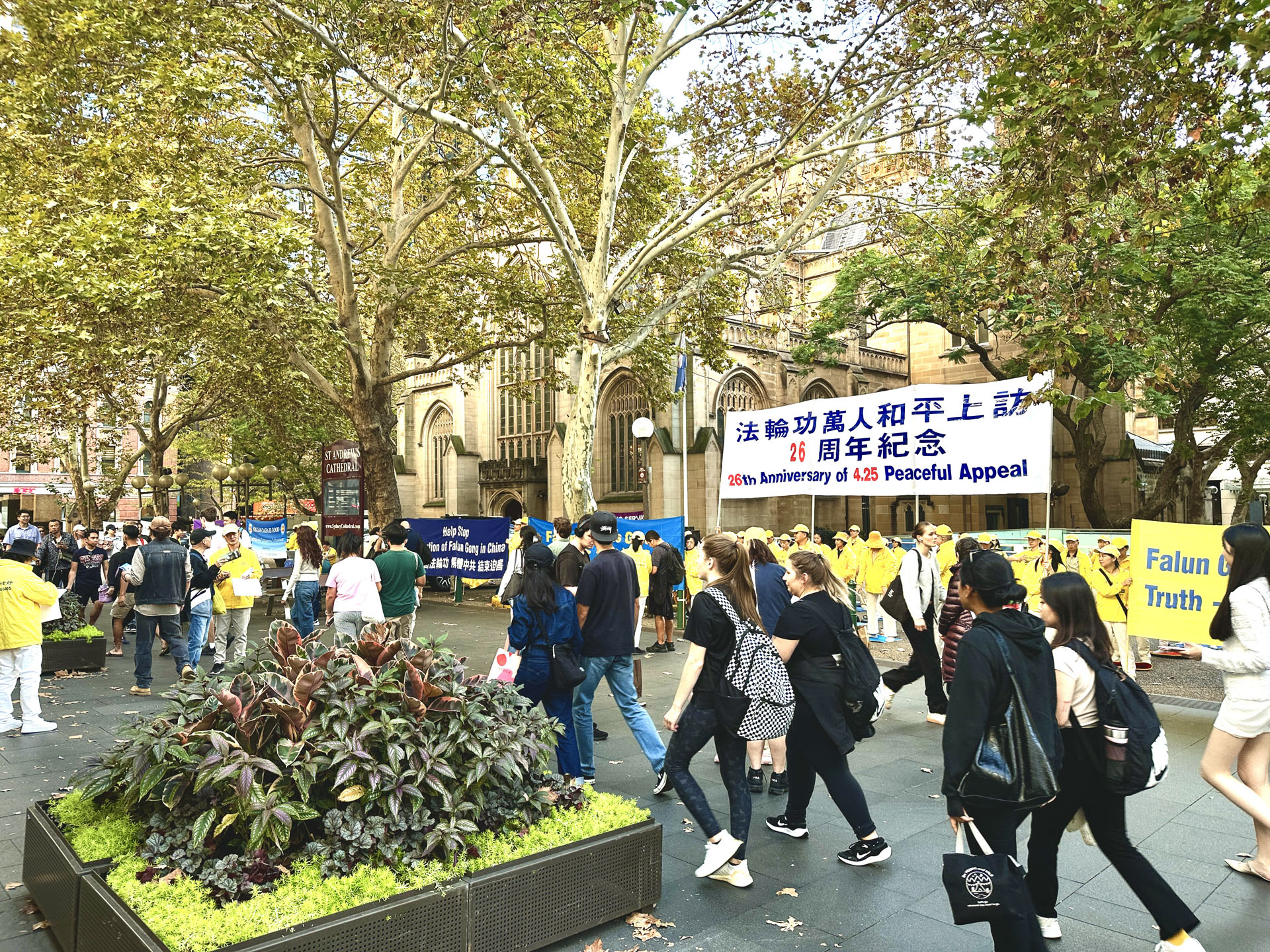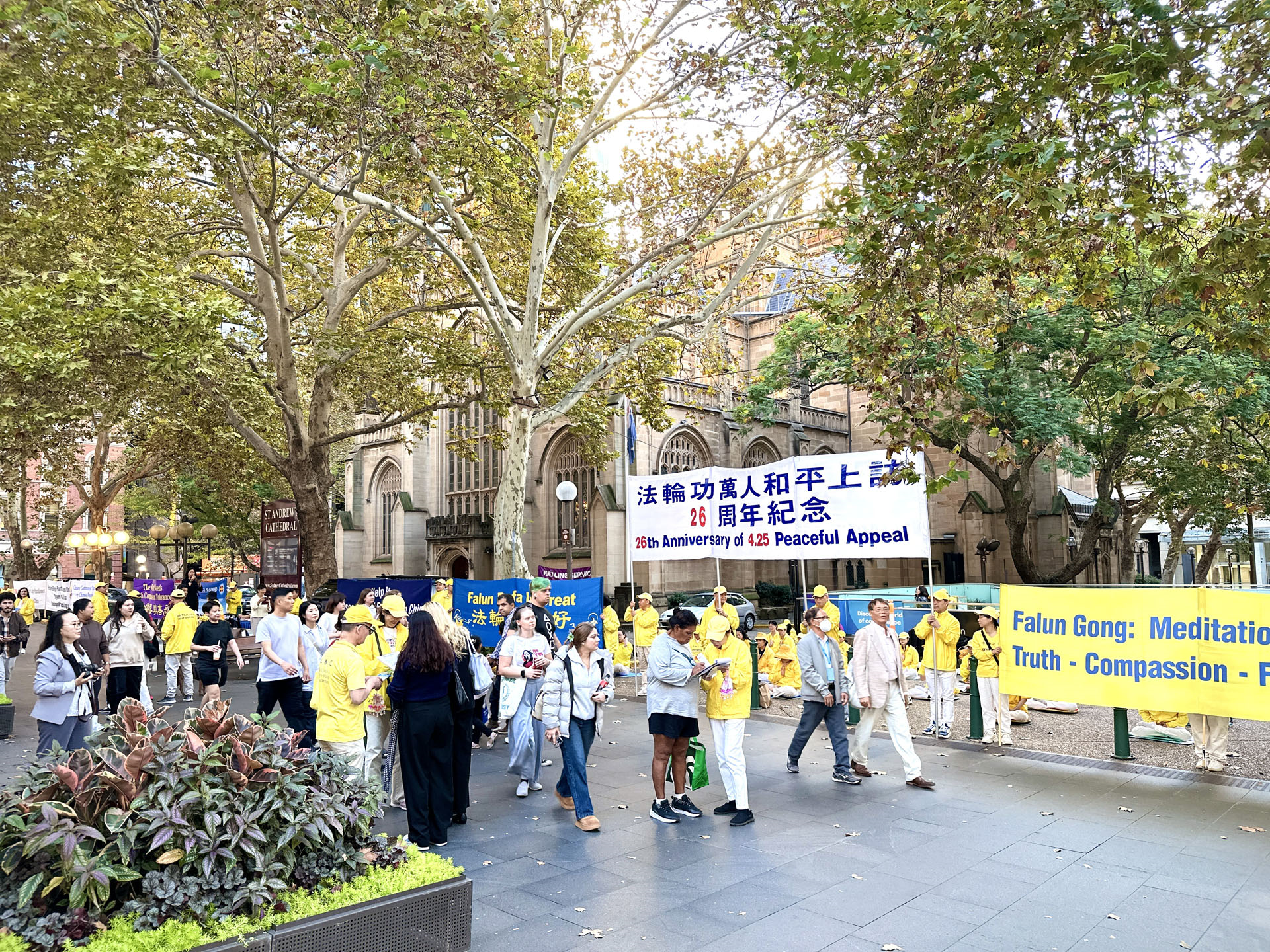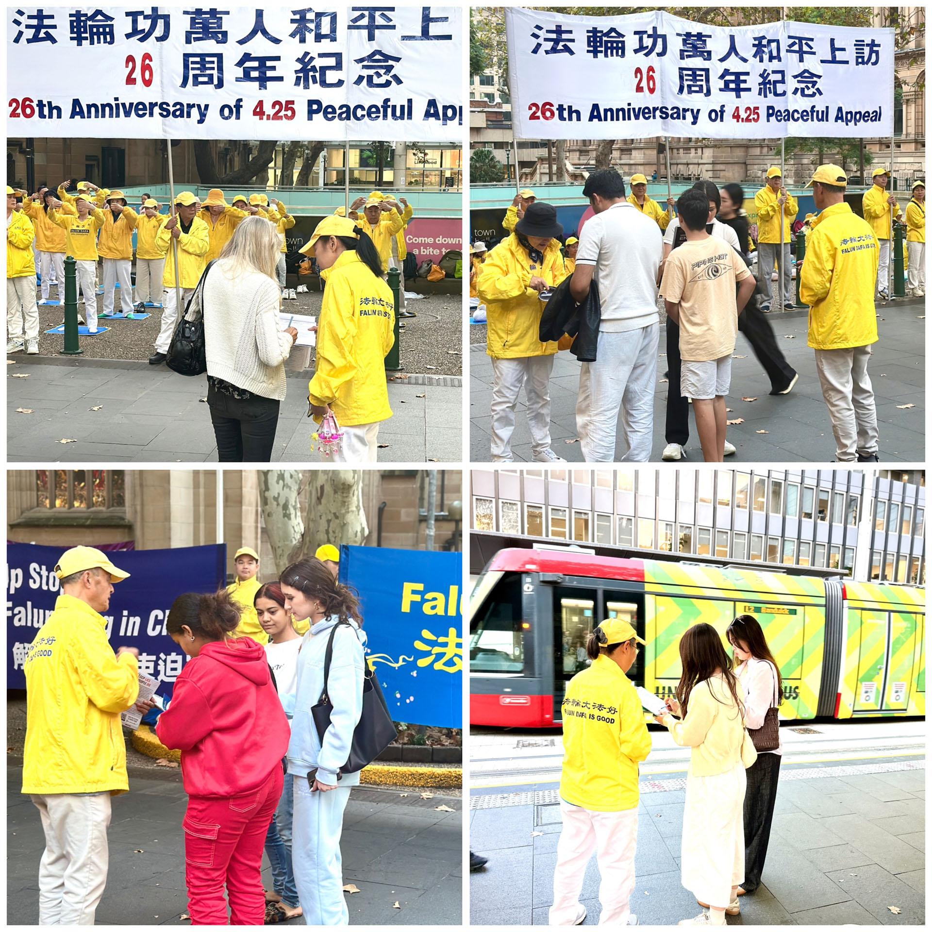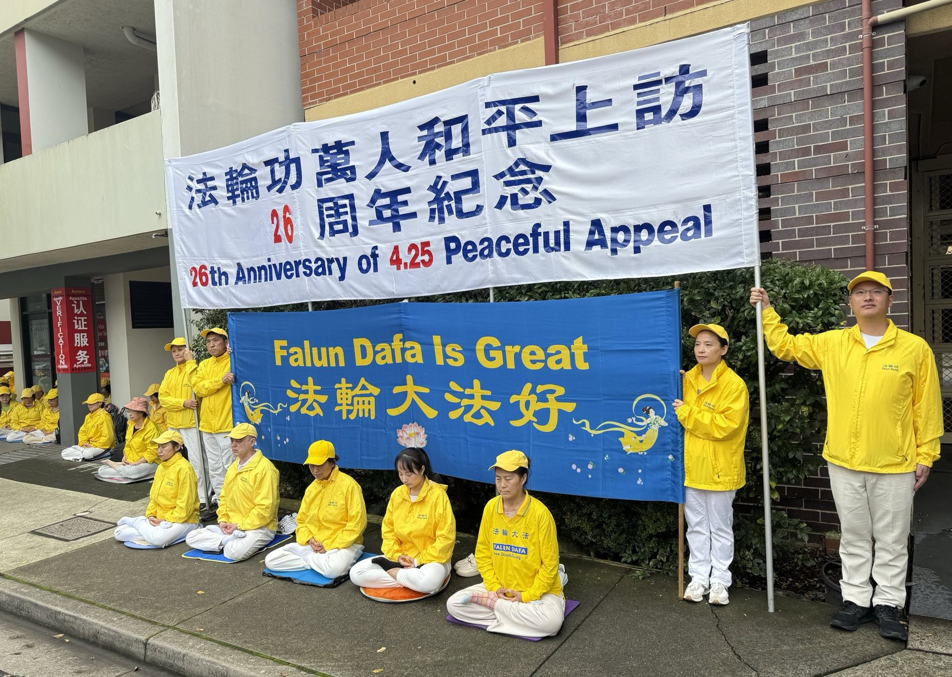![]() 图3:二零二五年四月二十五日,法轮功学员在悉尼中领馆前纪念四·二五逾万名法轮功学员和平理性上访26周年,呼吁停止迫害。 |