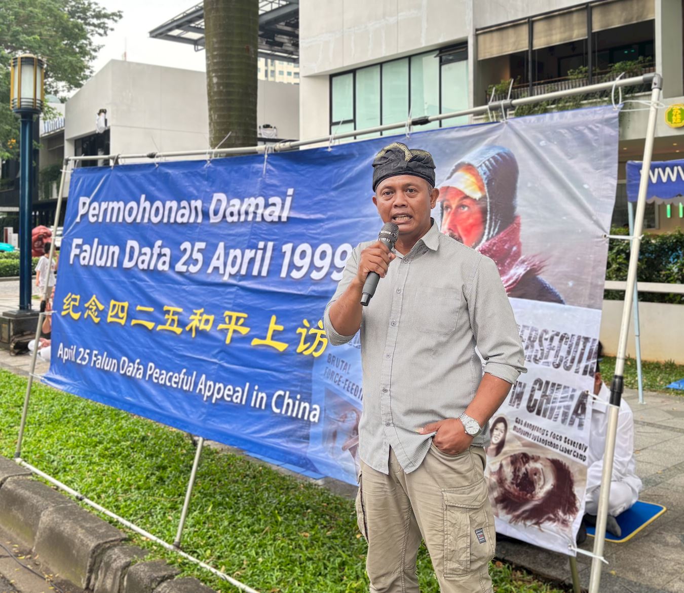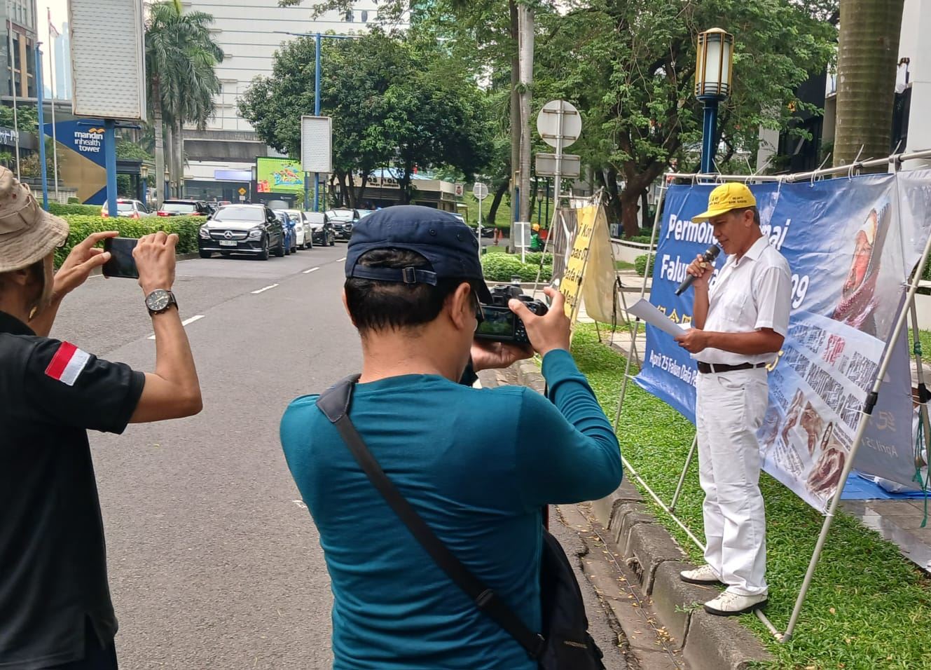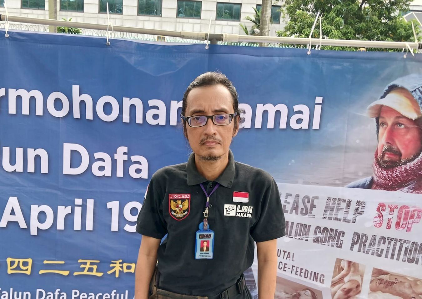 来自雅加达法律援助基金会(LBH Jakarta)的人权非政府组织代表普里玛(YFC Prima)参加了此次集会,并表达了对法轮功学员的支持。他说:“中共政府严重侵犯了本国公民的基本人权。每个人都应享有信仰自由。”