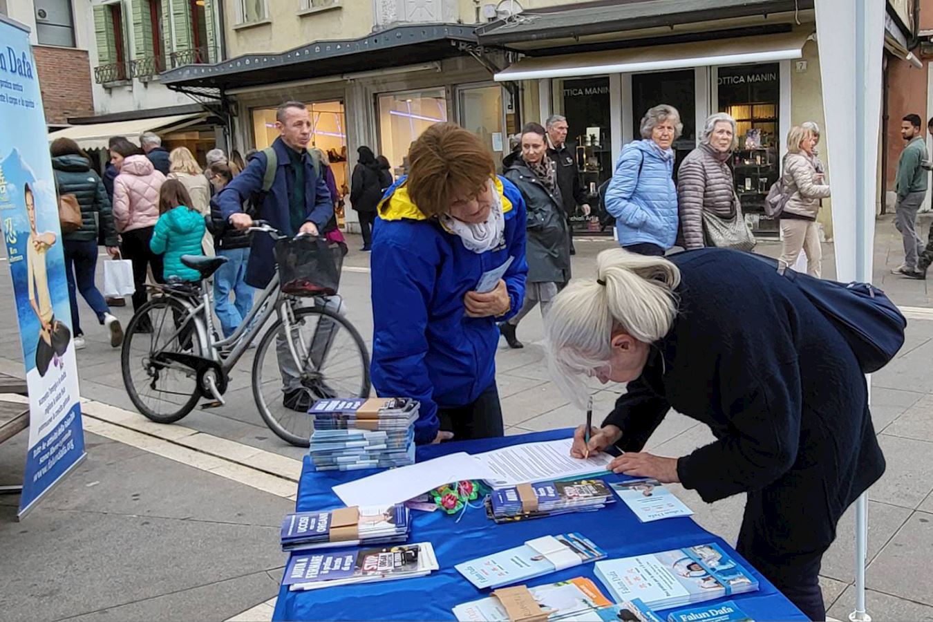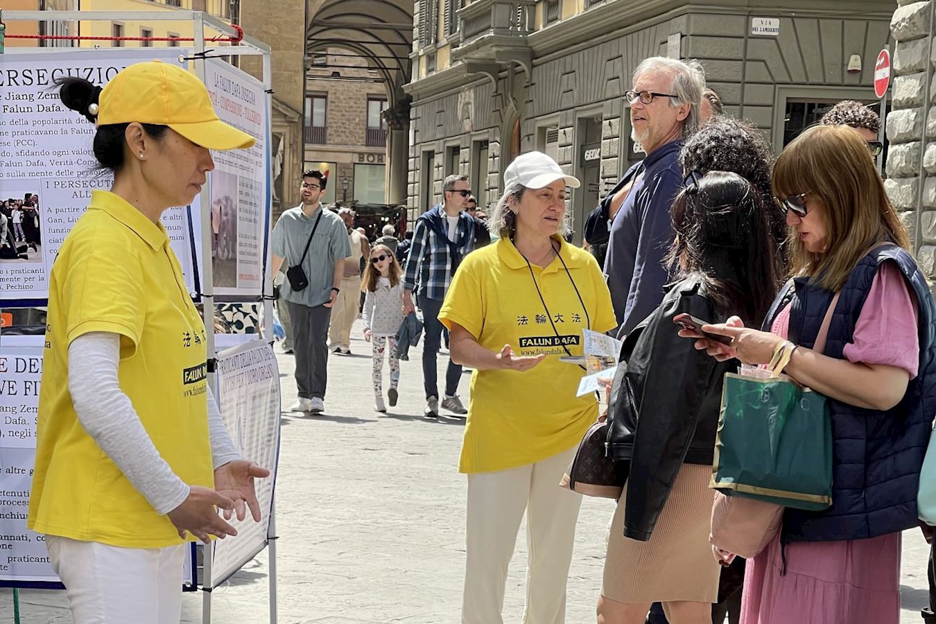 一位住在托斯卡纳的先生说,他于一九九八年在中国时,看到数百名法轮功学员一起炼功,那种宁静祥和的方式让他至今难忘。后来了解到法轮功遭受到镇压,当时并没有引起他的注意,而现在与法轮功学员们交流并查看真相资料后,他才意识到了问题的严重性,他签署了制止迫害的请愿书。