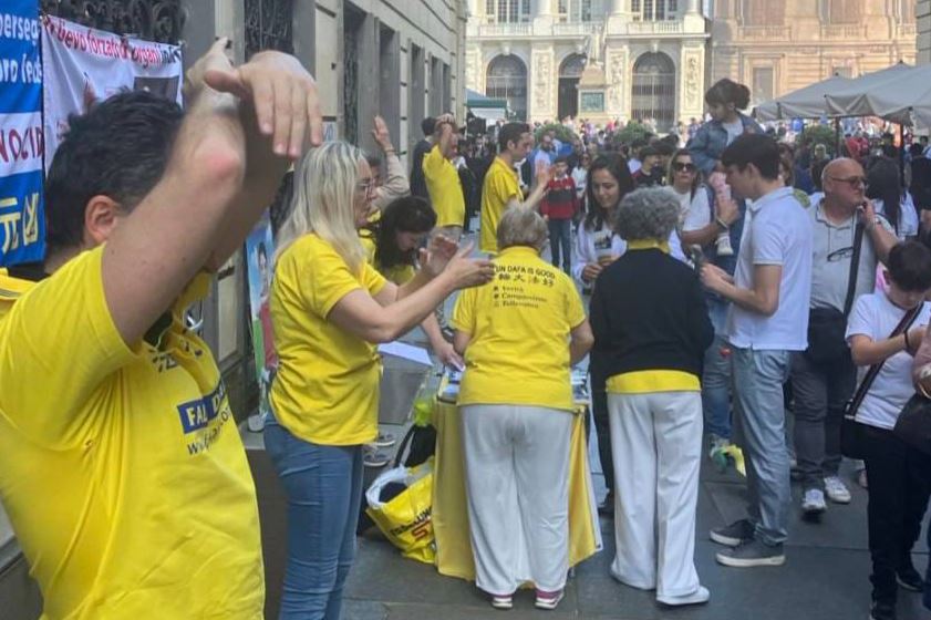 四月二十五日,皮埃蒙特大区的法轮功学员在意大利著名汽车制造名城都灵(Torino)聚会,纪念一九九九年四月二十五日在中国发生的法轮功学员万人和平上访事件。