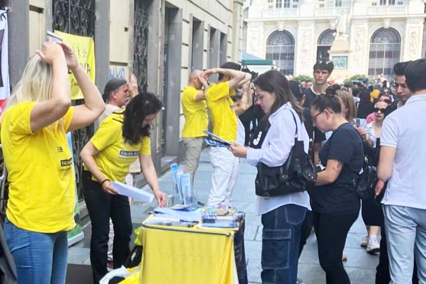 ![]() 图6~7:二零二五年四月二十五日,法轮功学员在意大利著名汽车制造名城都灵(Torino)市中心举行纪念四・二五万人和平上访活动 ,期间有演示功法,和向行人提供真相资料,并征集反迫害签名。 |