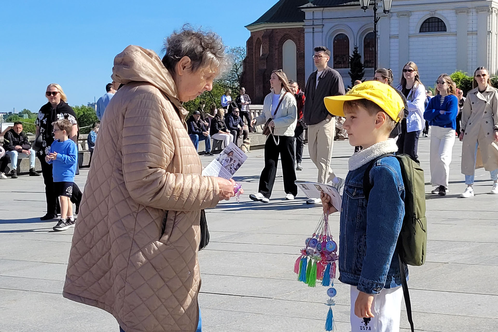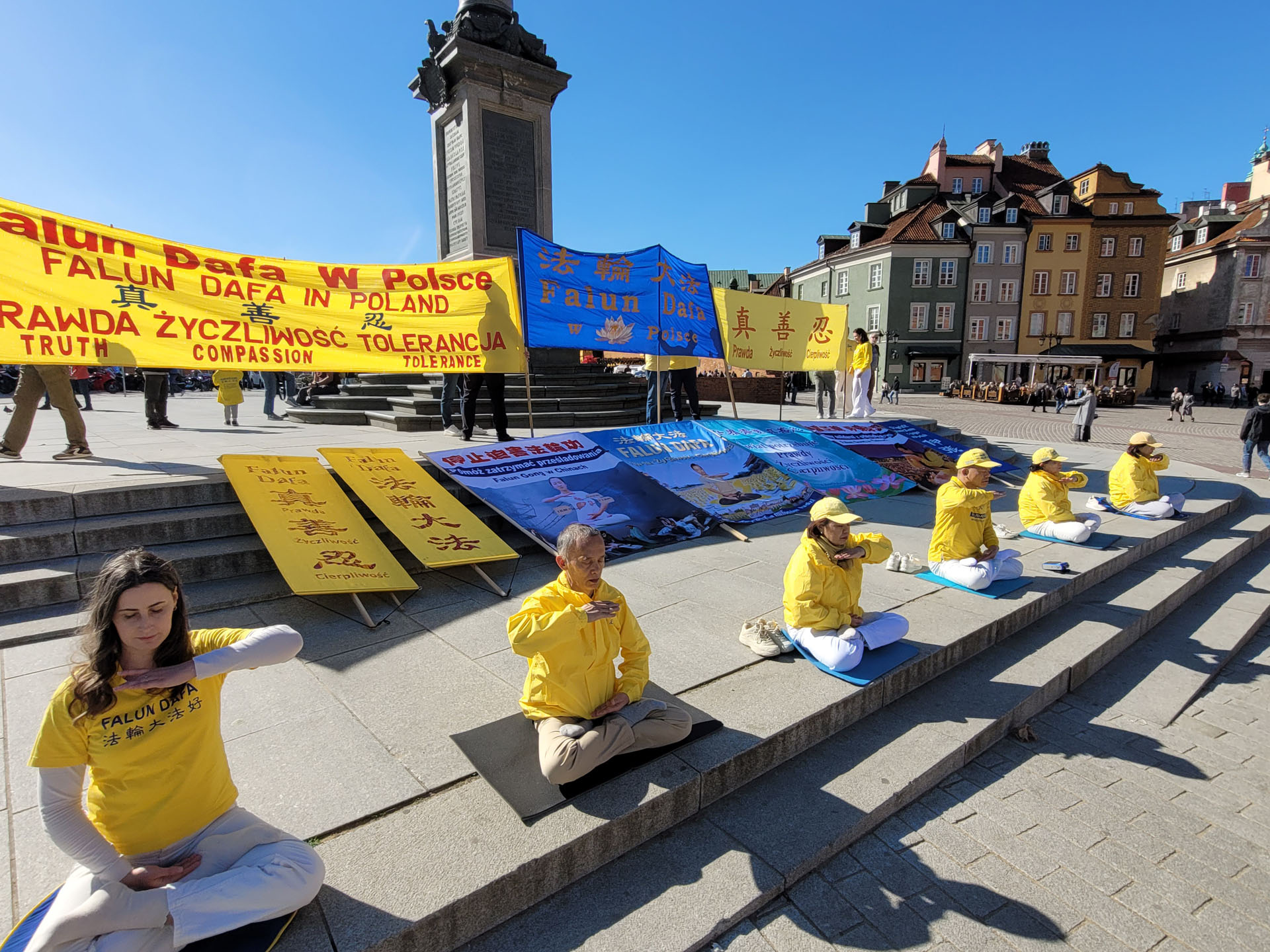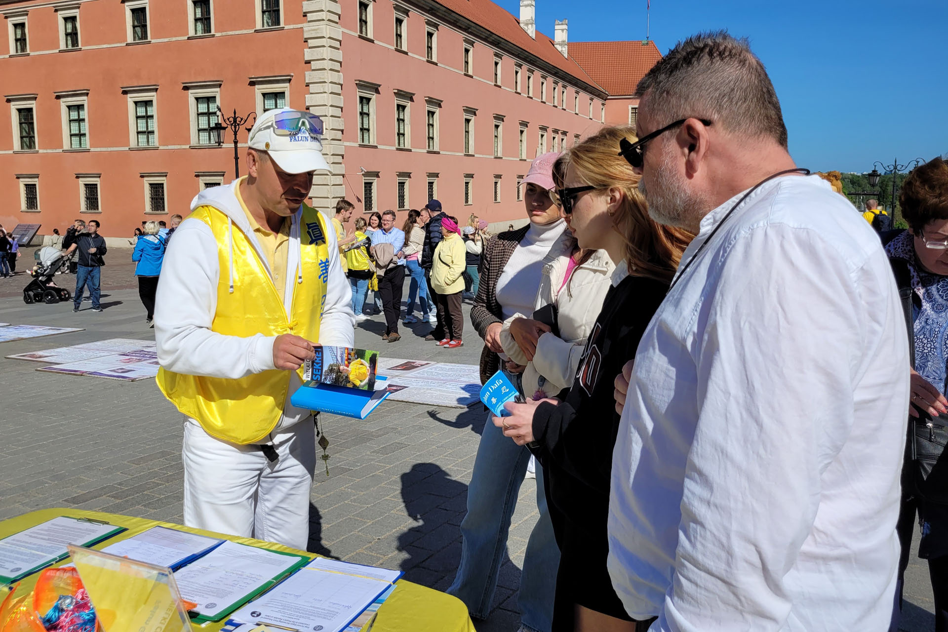 波兰学员马丁(Marcin)在活动前为大家做了历史回顾,他说:“二十六年前,一九九九年四月二十五日,在中国因中共的不断骚扰,有超过一万名法轮大法修炼者来到北京信访办上访,呼吁释放天津被抓的学员,要求允许公开出版法轮功书籍,要求一个宽松的修炼环境,此举当天即得到圆满解决。