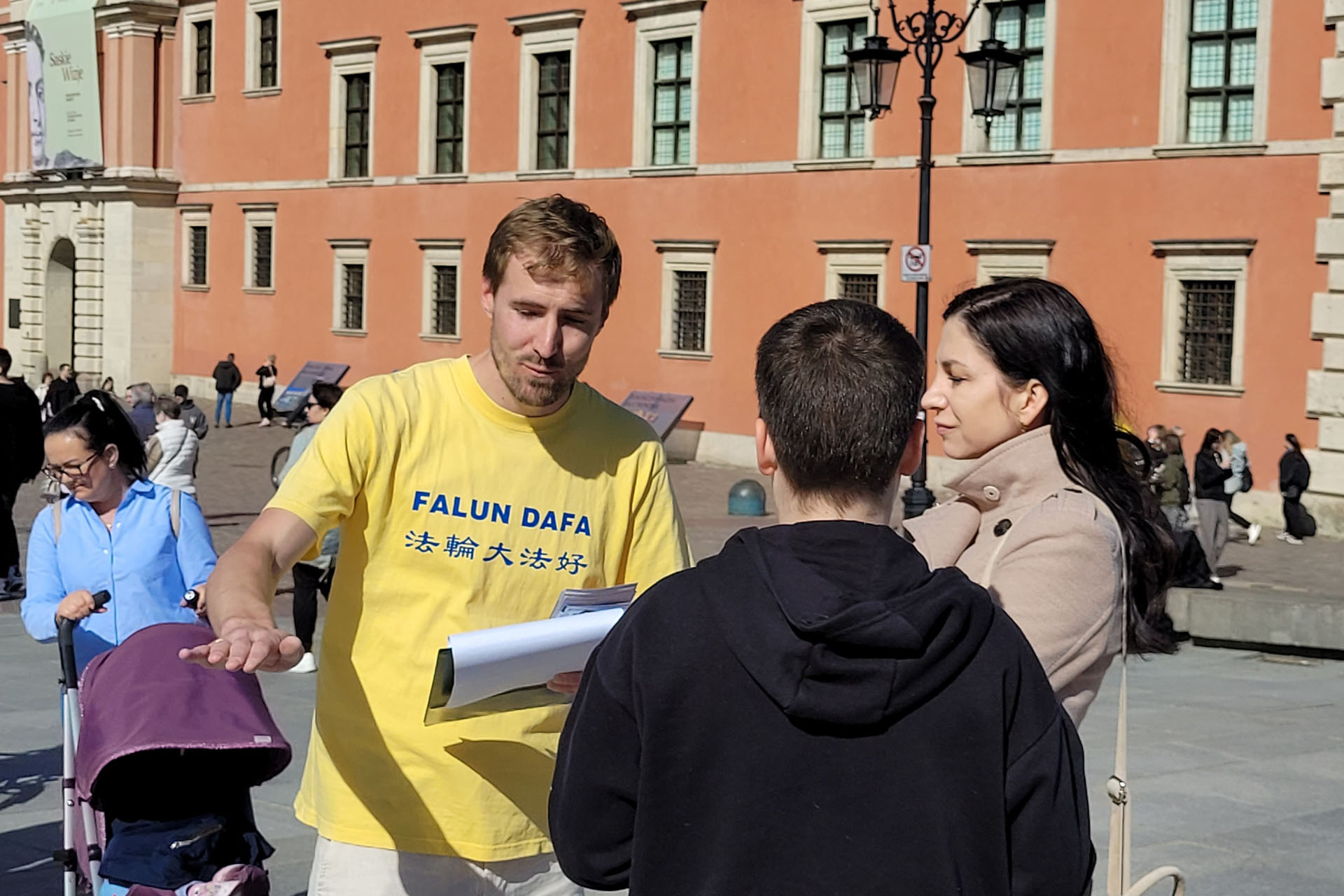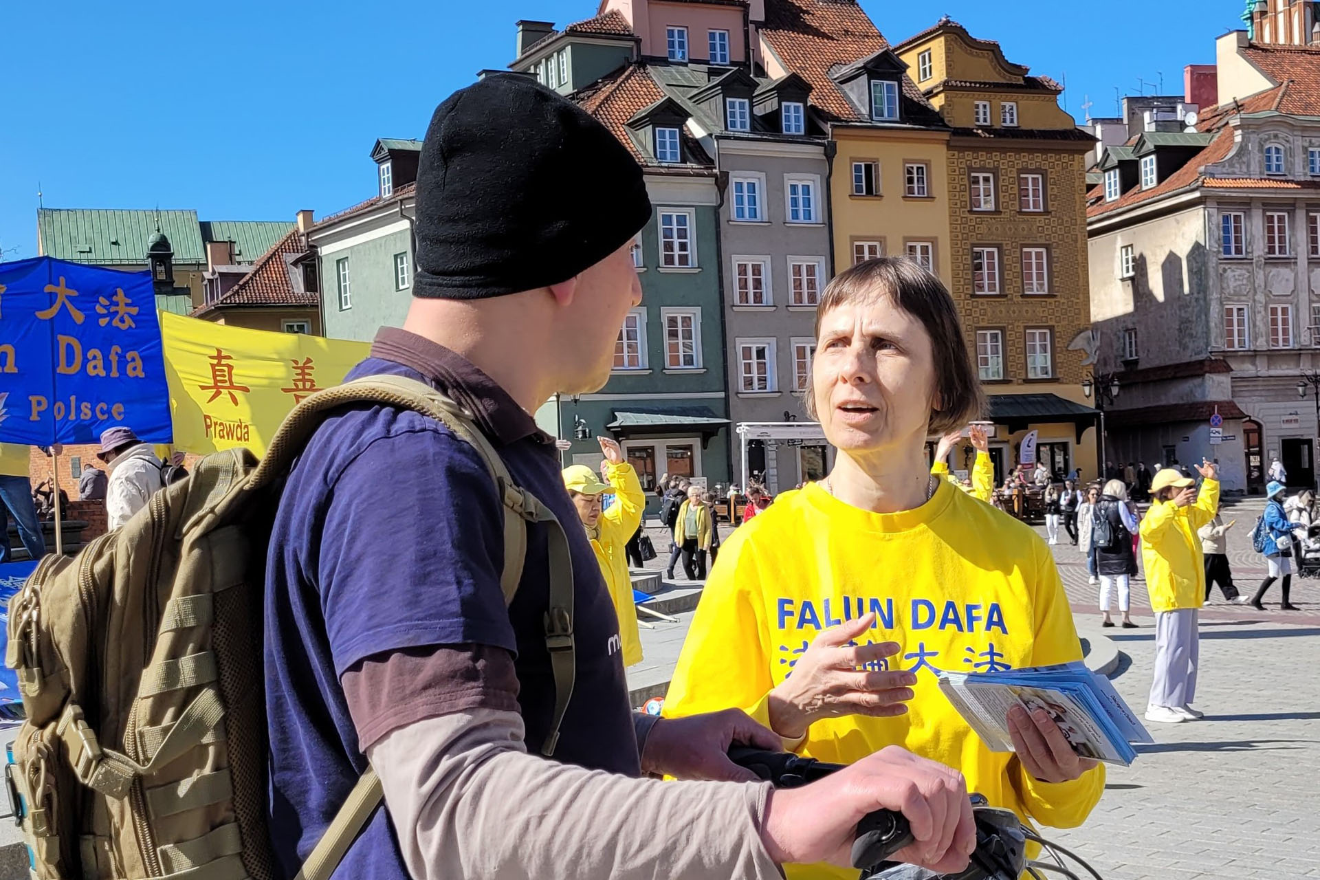 亚历克斯(Alex)说:“我今天参加华沙古城四·二五二十六周年纪念活动,就是为了表达对全世界,特别是中国的法轮功修炼者的声援。人们的尊严、信仰和自由不应受到践踏,也借此机会再次告诉所有人“法轮大法好,真善忍好”。”