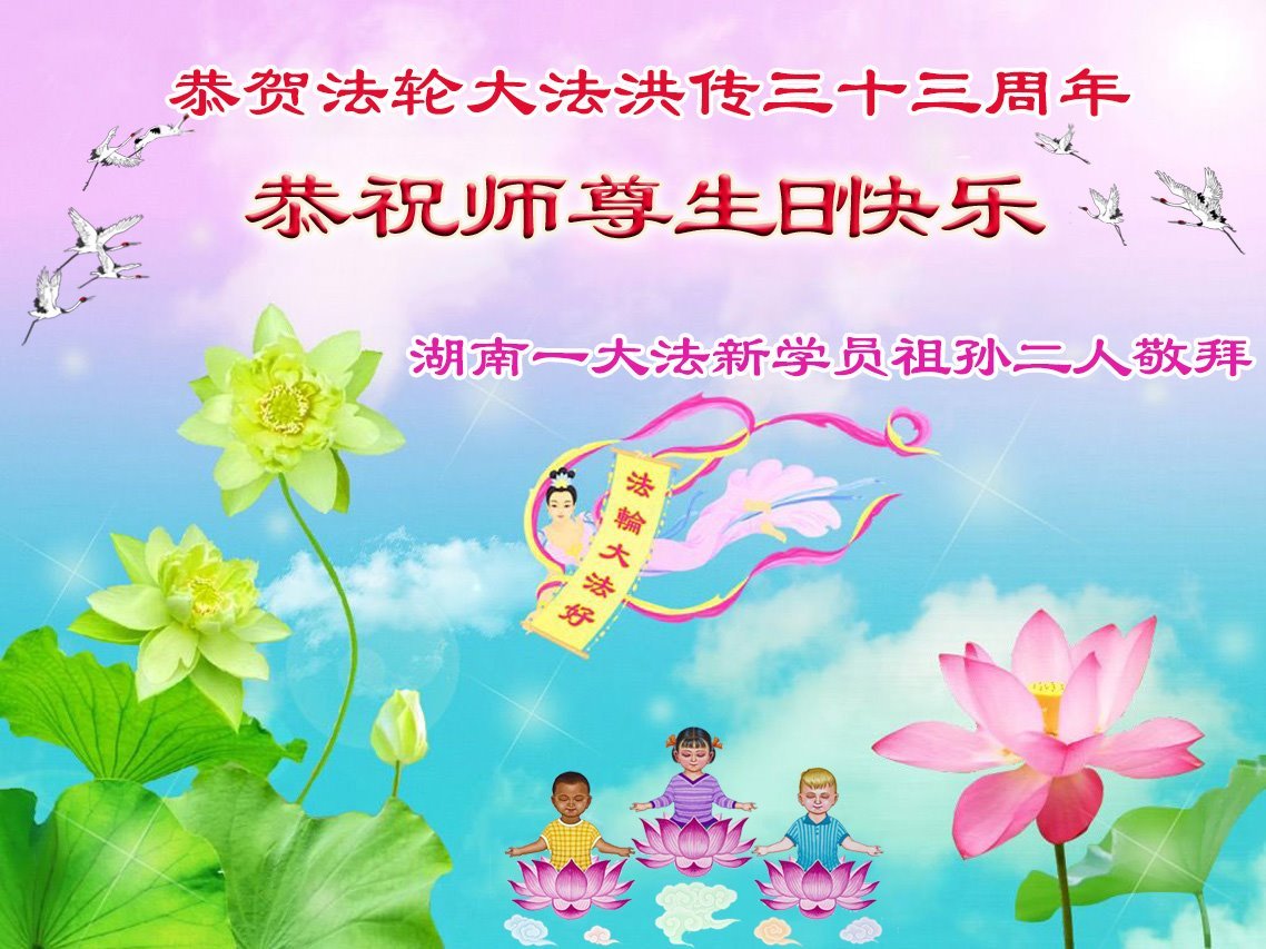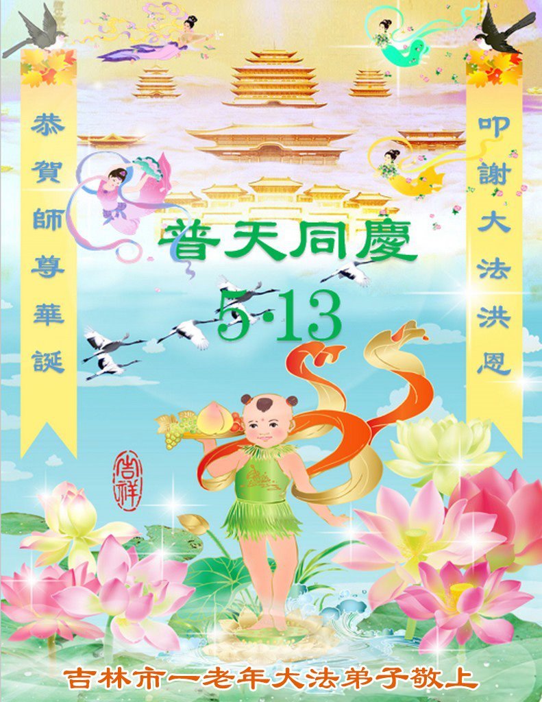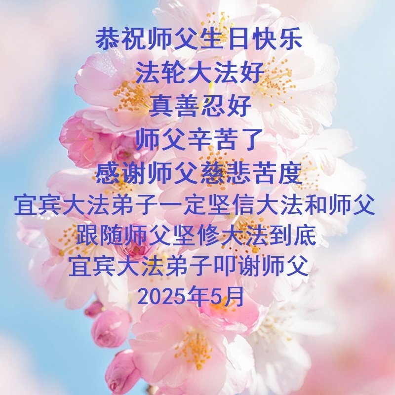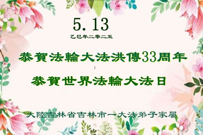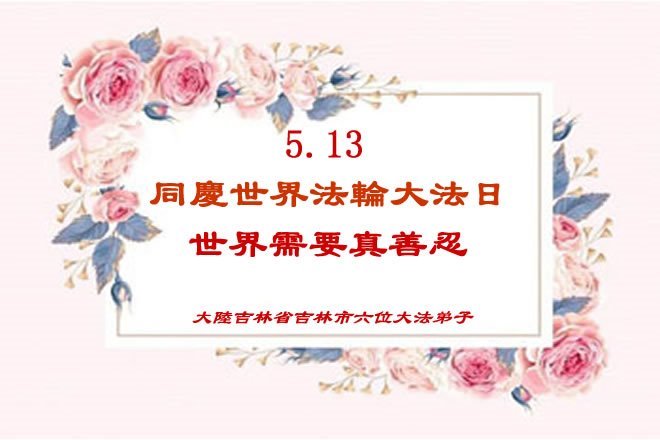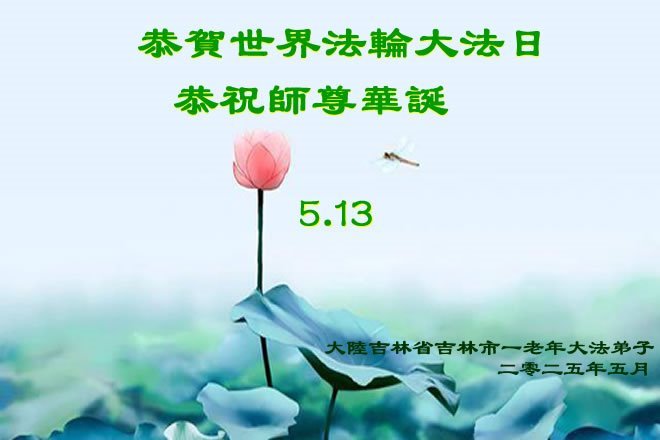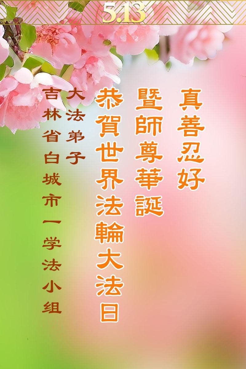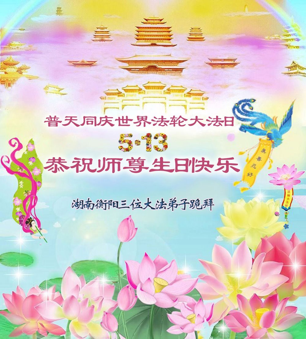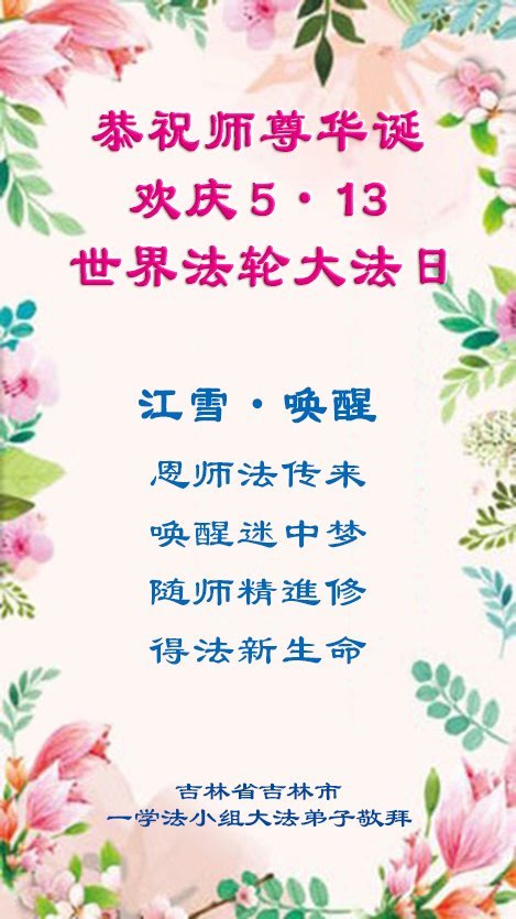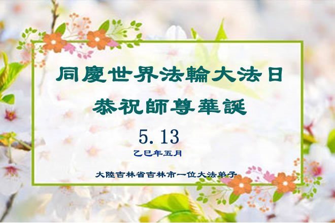 一个生命能在大法中修炼、升华,是无上的荣耀,无论经历多少艰难困苦,一颗坚修大法的向善之心永恒不变。在世界法轮大法日暨师尊华诞来临之际,弟子以最恭敬之心,叩谢师尊的恩典、向师尊献上最真诚之祝福:恭祝师尊生日快乐!师尊您辛苦了!愿真善忍之光照亮整个世界,愿法轮大法早日普照华夏大地!