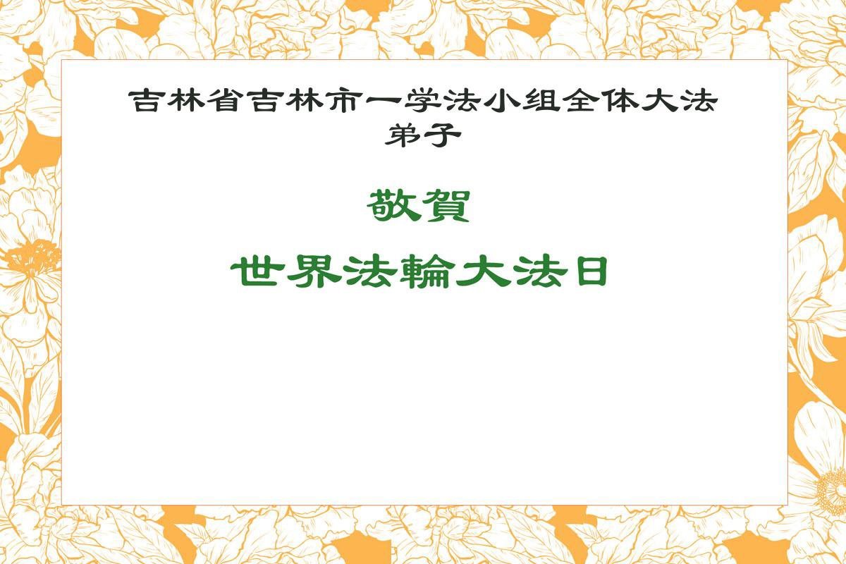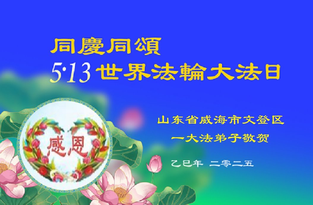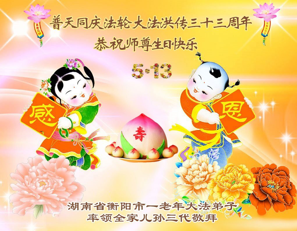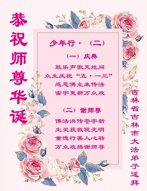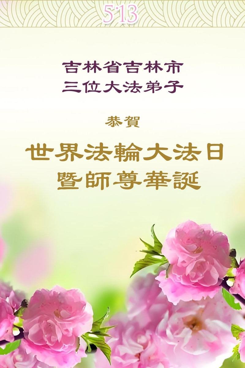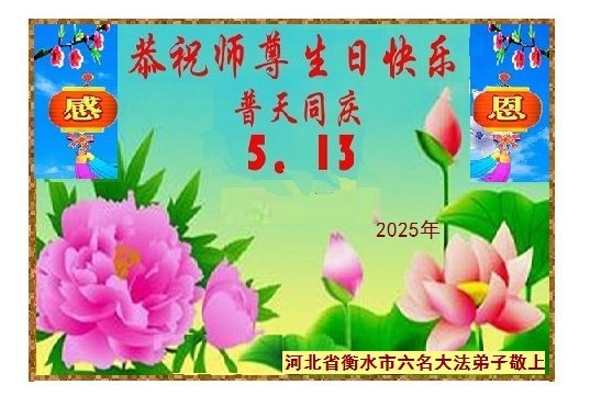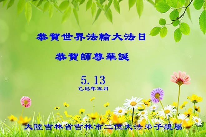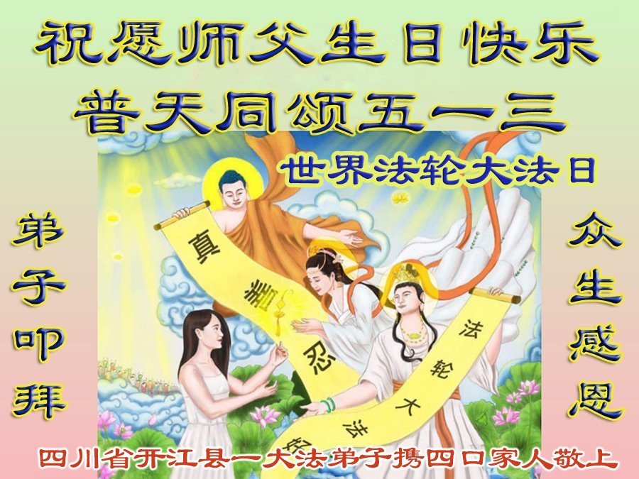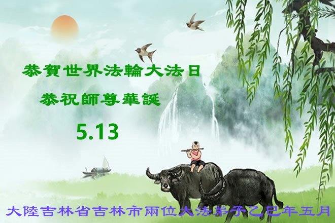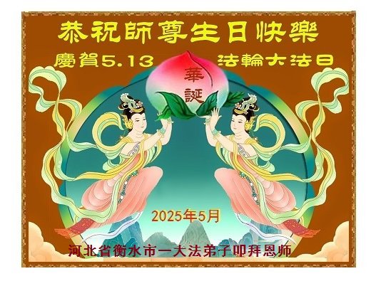 一个生命能在大法中修炼、升华,是无上的荣耀,无论经历多少艰难困苦,一颗坚修大法的向善之心永恒不变。在世界法轮大法日暨师尊华诞来临之际,弟子以最恭敬之心,叩谢师尊的恩典、向师尊献上最真诚之祝福:恭祝师尊生日快乐!师尊您辛苦了!愿真善忍之光照亮整个世界,愿法轮大法早日普照华夏大地!