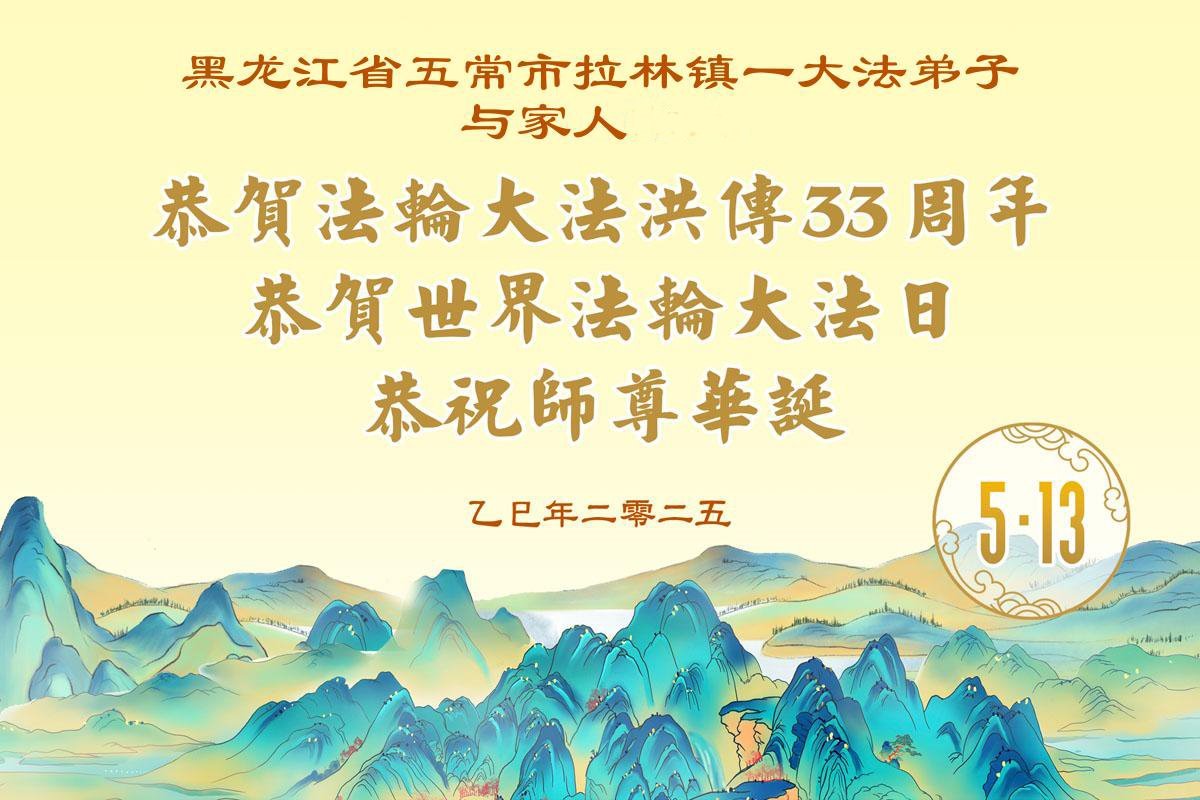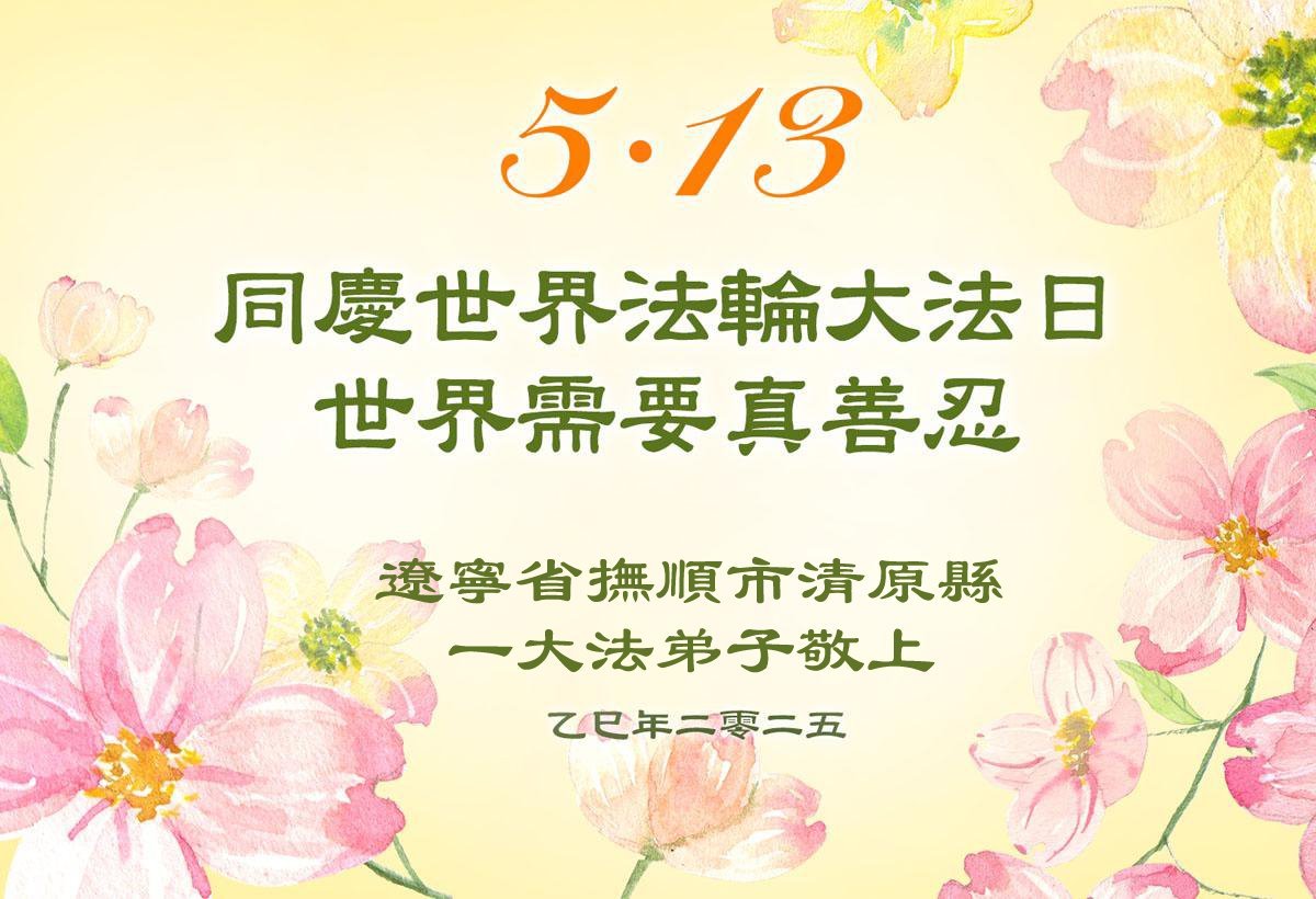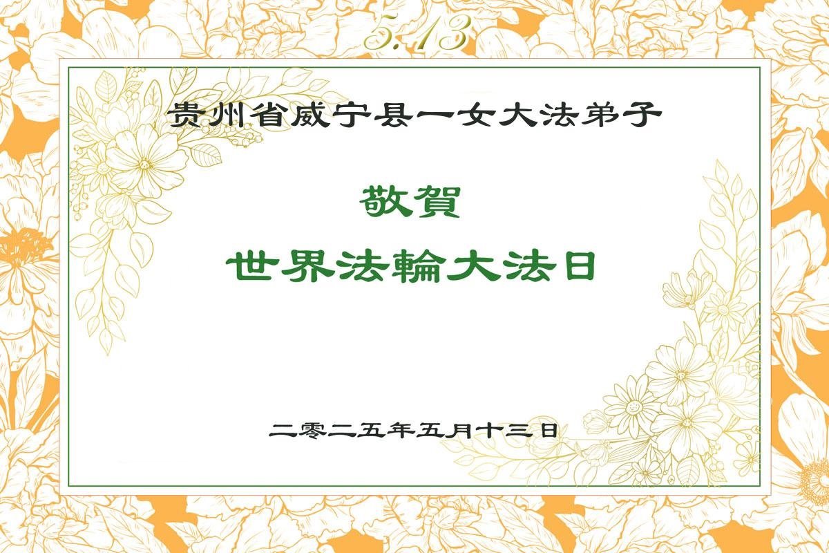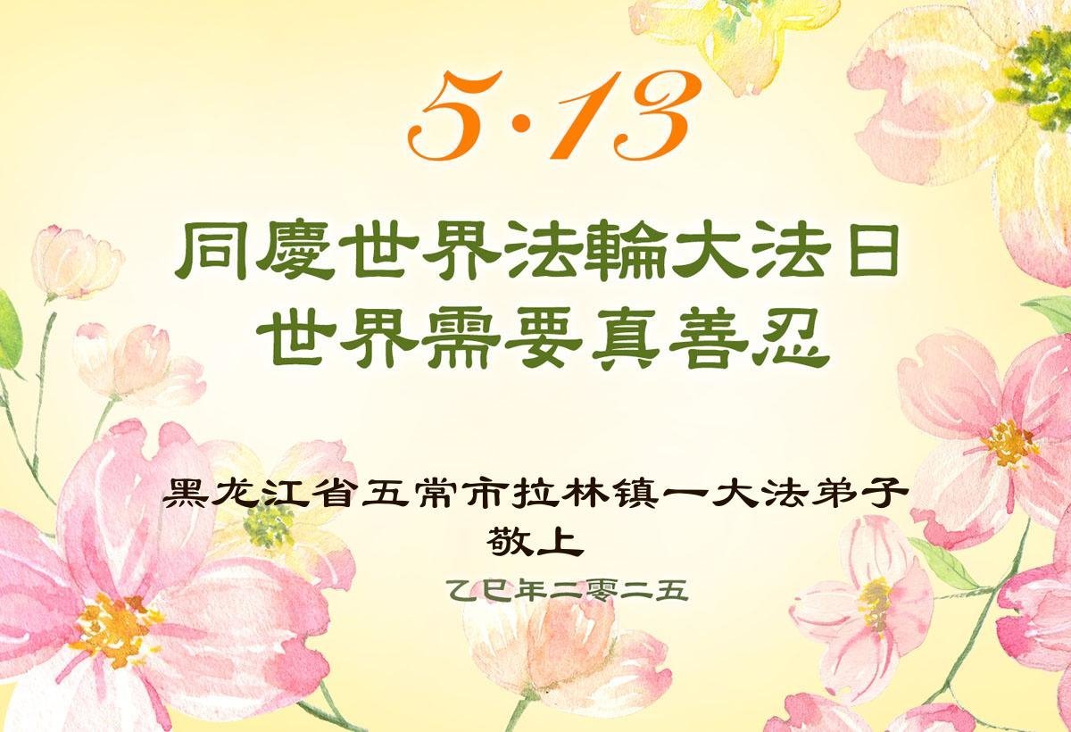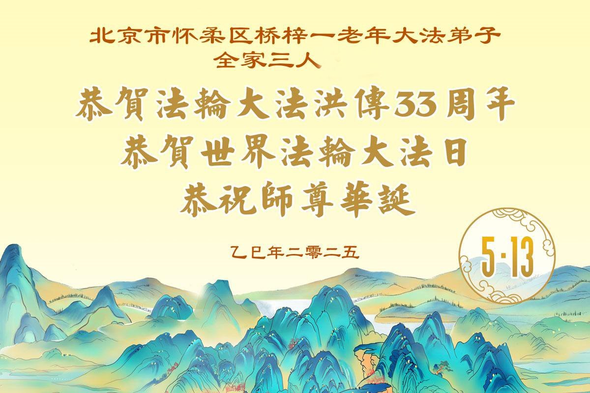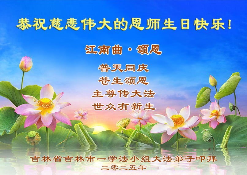 一个生命能在大法中修炼、升华,是无上的荣耀,无论经历多少艰难困苦,一颗坚修大法的向善之心永恒不变。在世界法轮大法日暨师尊华诞来临之际,弟子以最恭敬之心,叩谢师尊的恩典、向师尊献上最真诚之祝福:恭祝师尊生日快乐!师尊您辛苦了!愿真善忍之光照亮整个世界,愿法轮大法早日普照华夏大地!
