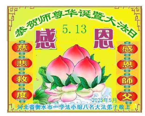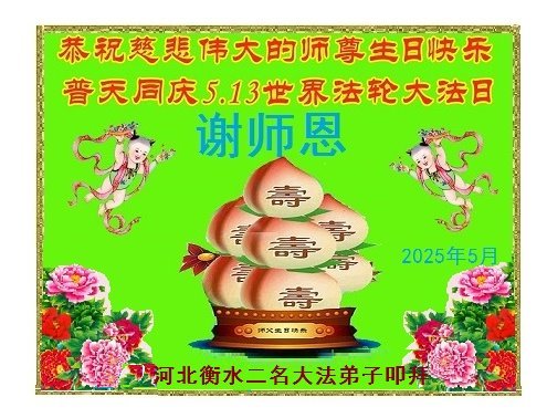 【明慧网二零二五年五月十日】(明慧网记者综合报道)在世界法轮大法日暨师尊华诞来临之际,中国大陆各行各业大法弟子们以最恭敬的心,叩谢师尊的恩典!弟子们与各界众生每时每刻都沐浴在师尊圣恩之中。师父教诲弟子按照真、善、忍为标准在各个行业中兢兢业业做好人,稳步走在返本归真的大道上。