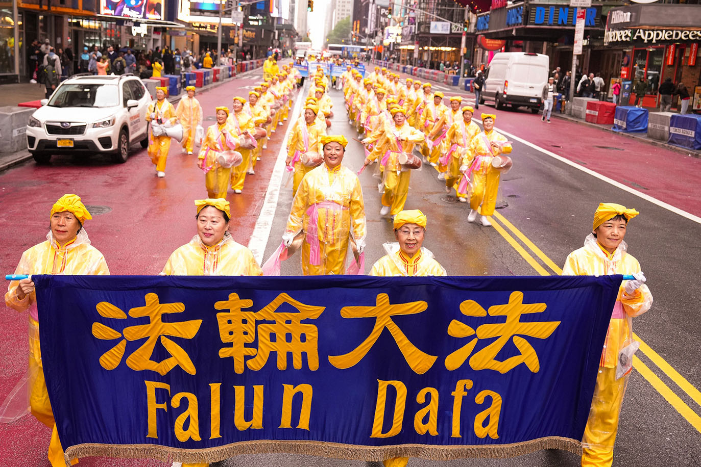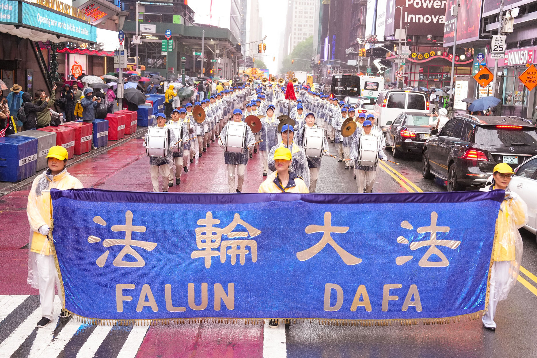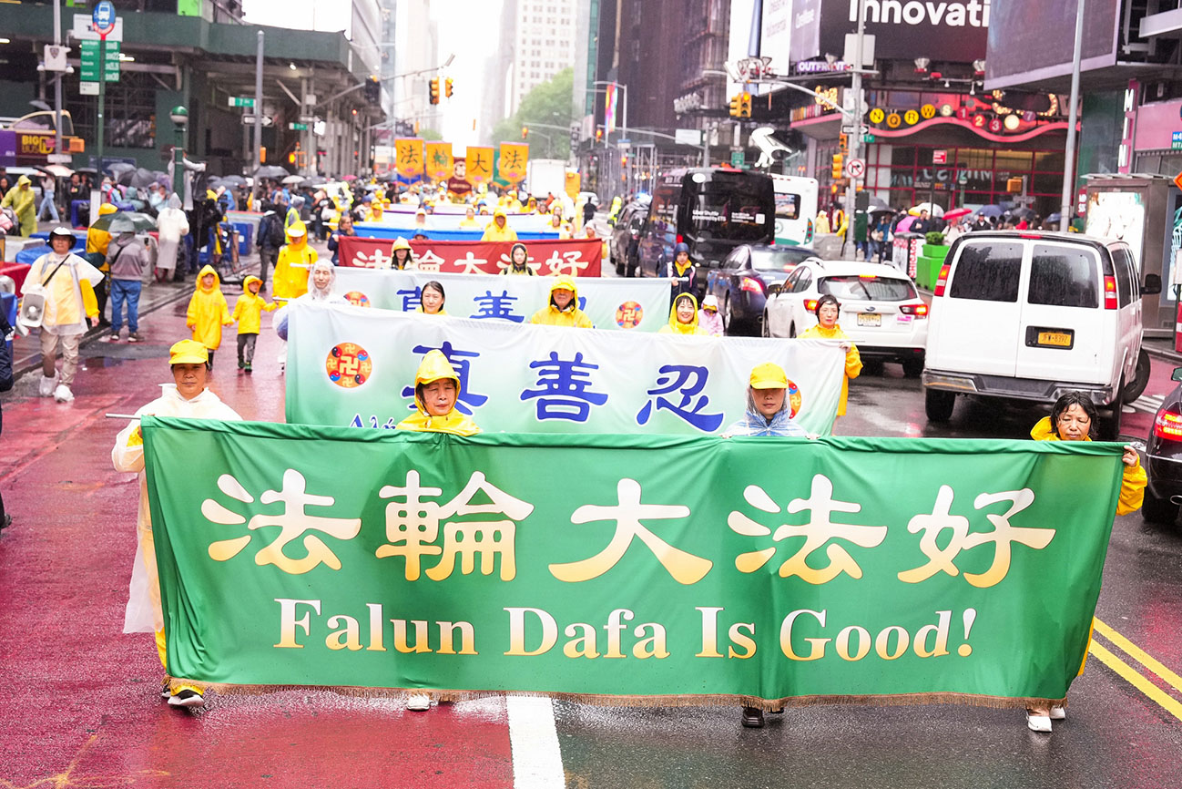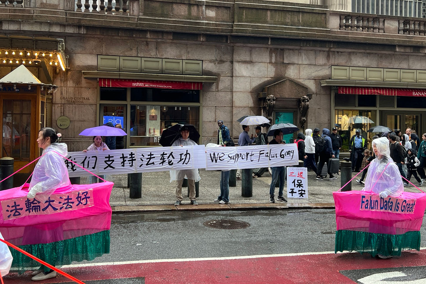 法轮功学员风雨无阻每年坚持来到曼哈顿游行,很多纽约客因多年观看心生敬佩。