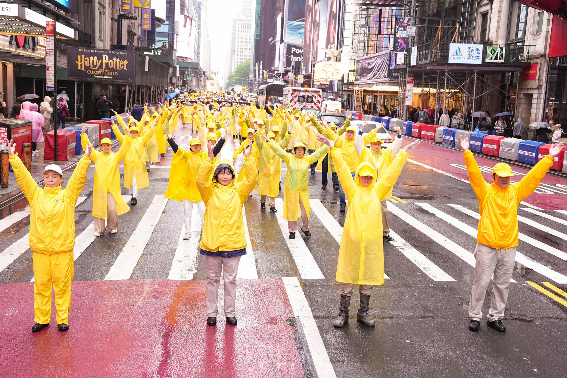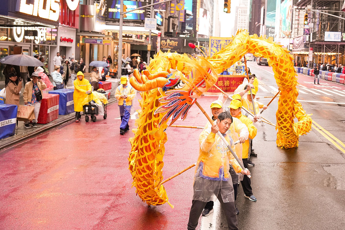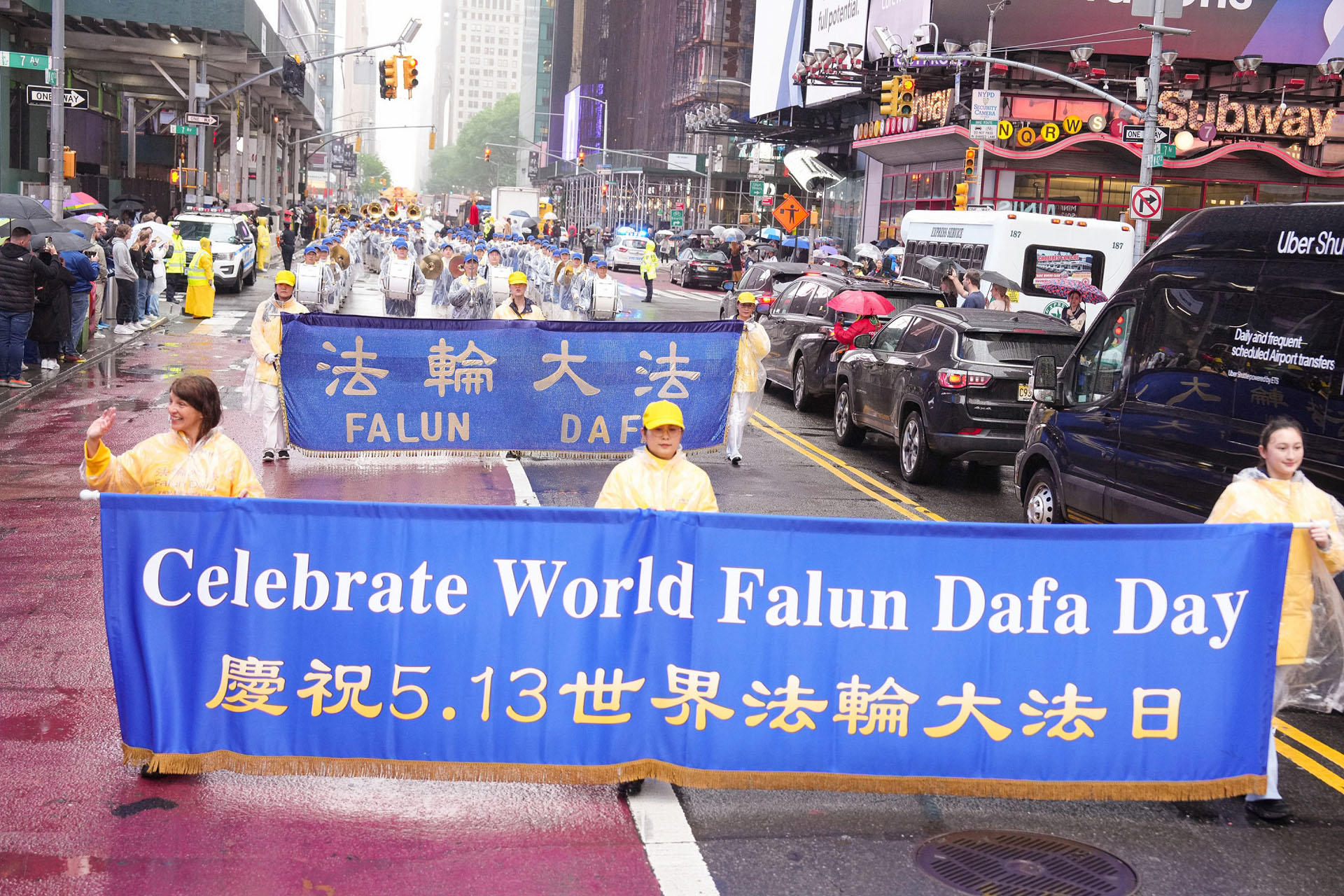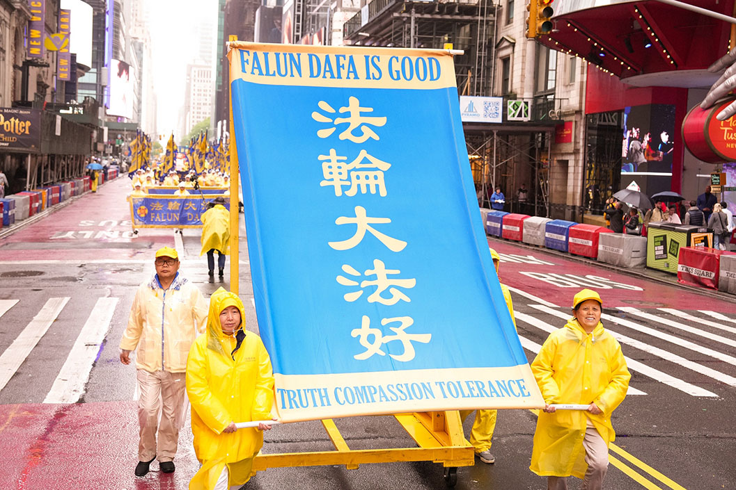 法轮功学员风雨无阻每年坚持来到曼哈顿游行,很多纽约客因多年观看心生敬佩。