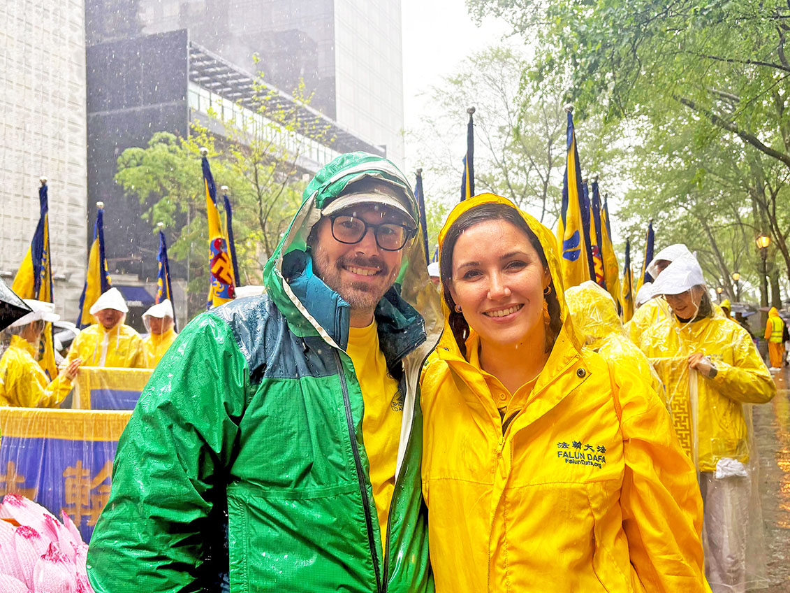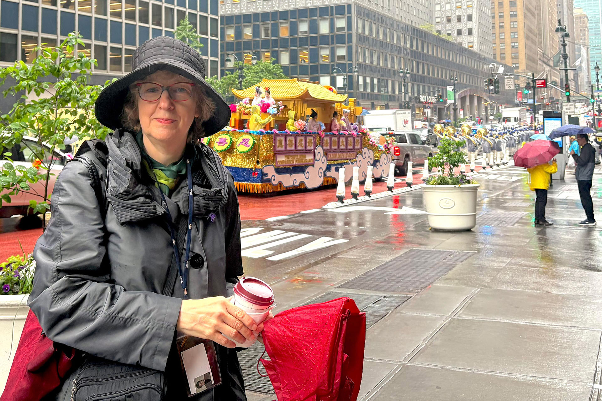 纽约居民萨曼莎(Samantha)在大学工作,多年来都能观看到法轮功学员的游行,她感叹游行队伍非常壮观,她说:“我总是会对游行队伍的人数之多感到惊叹!特别是今天下这么大雨,有这么多人仍然热忱地参与这个活动,实在令人感动。”