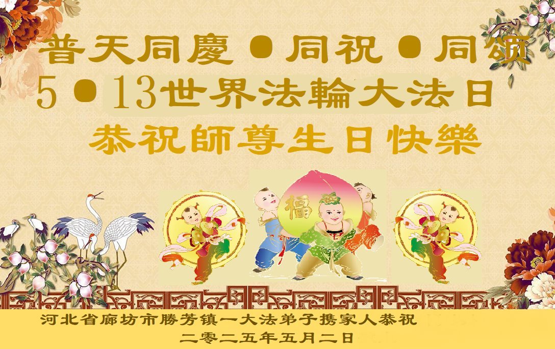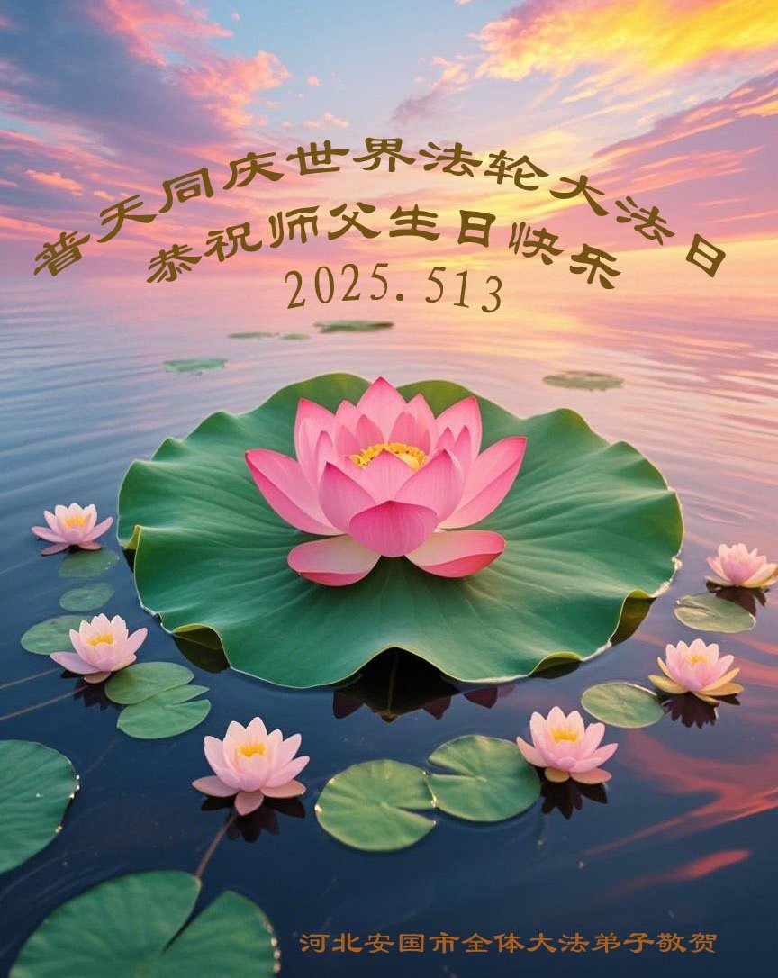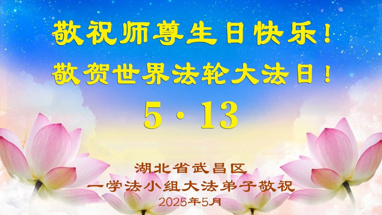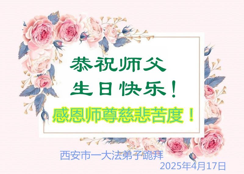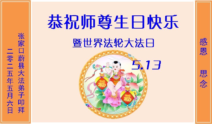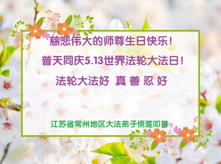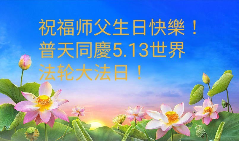恭祝慈悲伟大的师尊生日快乐!普天同庆“五一三”世界法轮大法日!弟子感恩师尊慈悲救度。无量洪恩!感激无尽言!师恩难报,弟子唯有精進实修,做好三件事,多救人,以谢师恩!