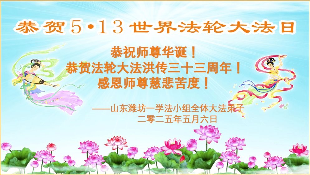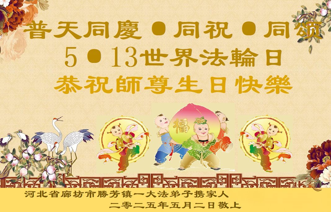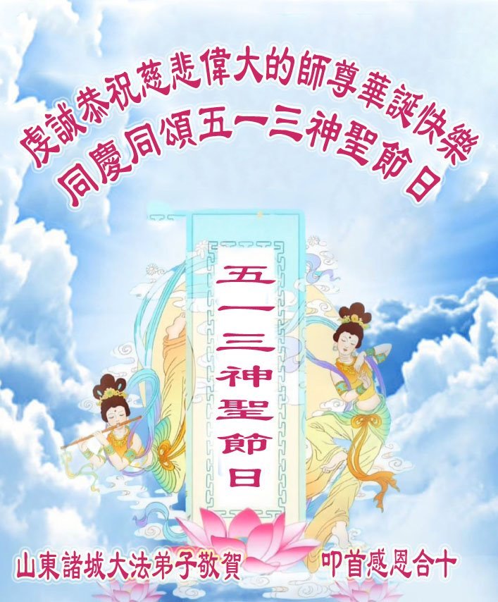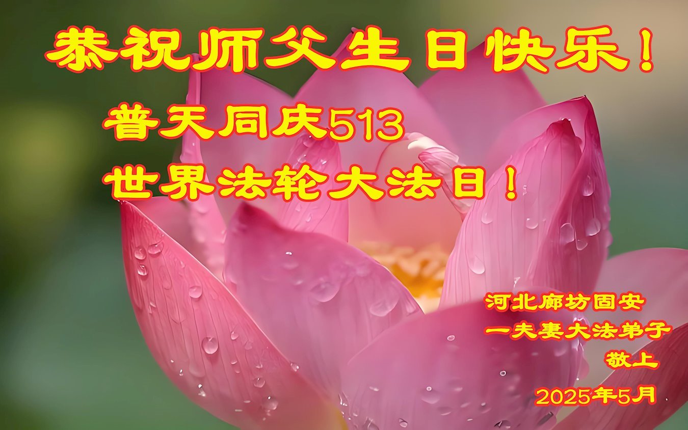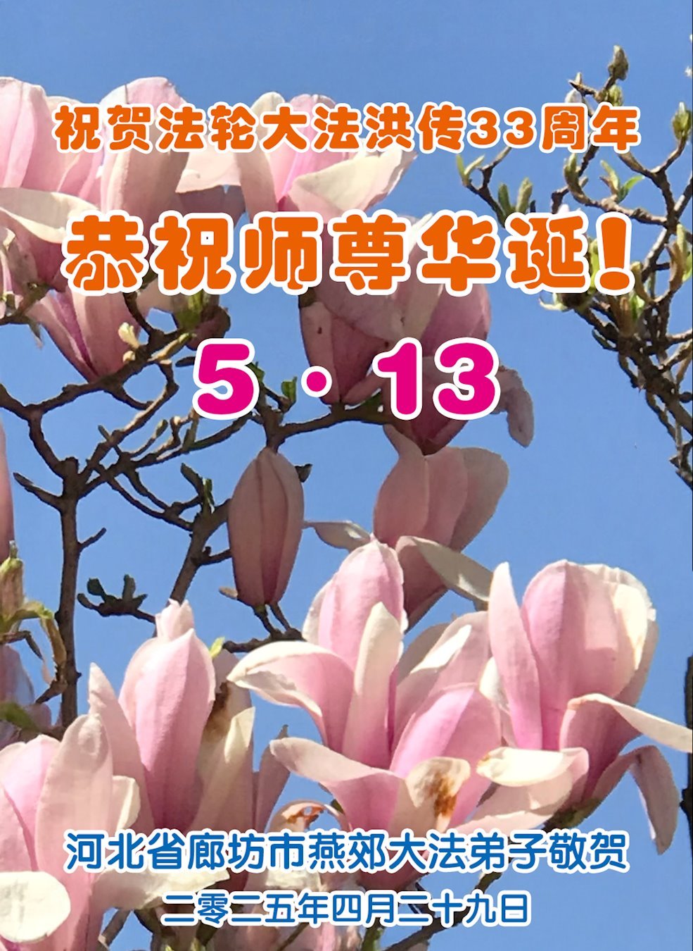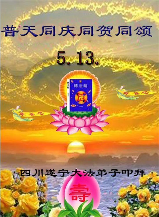 恭祝慈悲伟大的师尊生日快乐!普天同庆“五一三”世界法轮大法日!弟子感恩师尊慈悲救度。无量洪恩!感激无尽言!师恩难报,弟子唯有精進实修,做好三件事,多救人,以谢师恩!