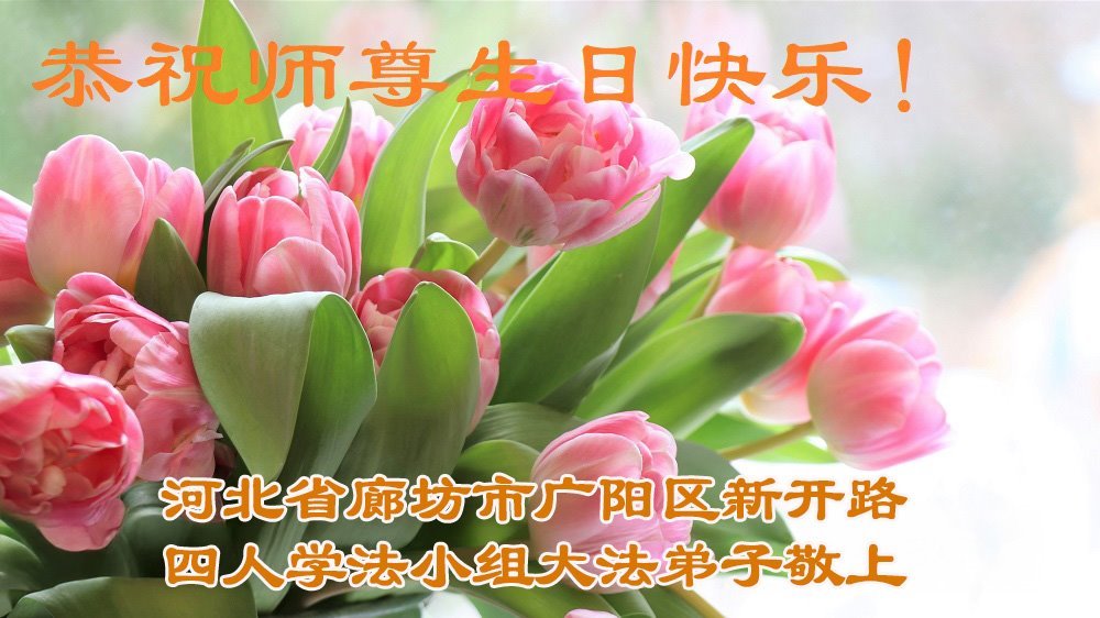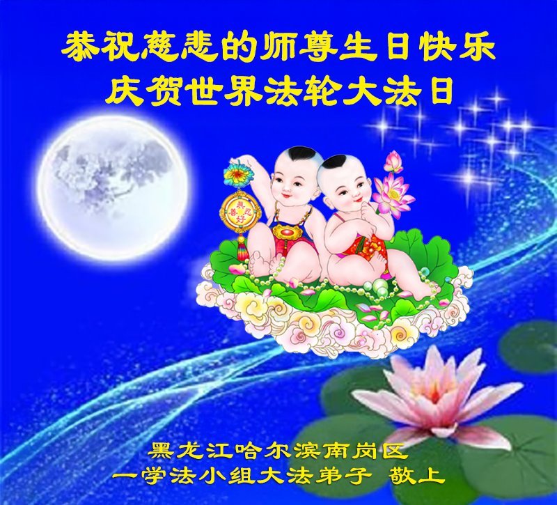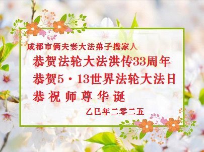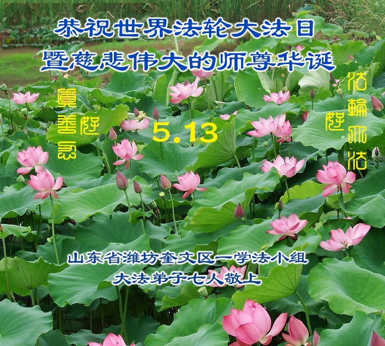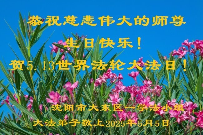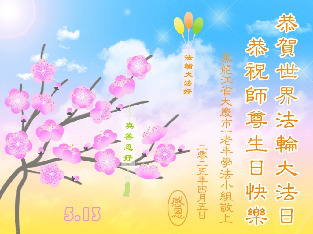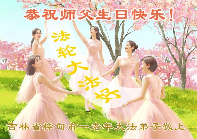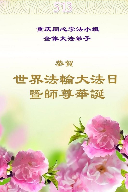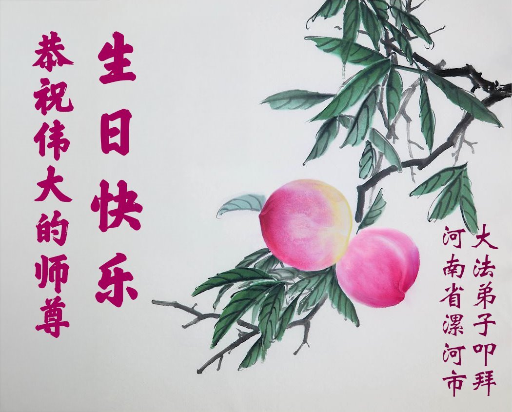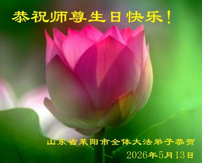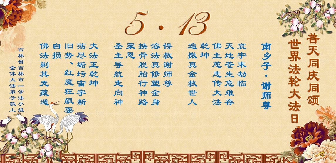 我们是九九年七二零之前得法的老弟子,历经种种风雨魔难,更加坚信大法,精進实修,以报师恩。在五一三世界法轮大法日来临之际,恭祝师尊生日快乐!我们想念师尊,盼望师尊早日回国,荣归故里。弟子敬拜师尊!谨以以下小诗敬献师尊。