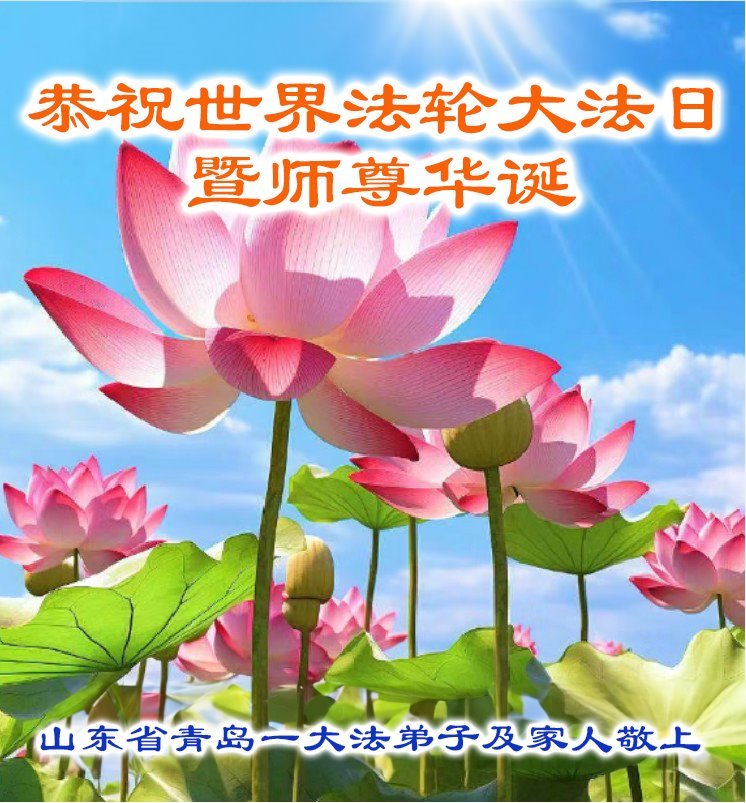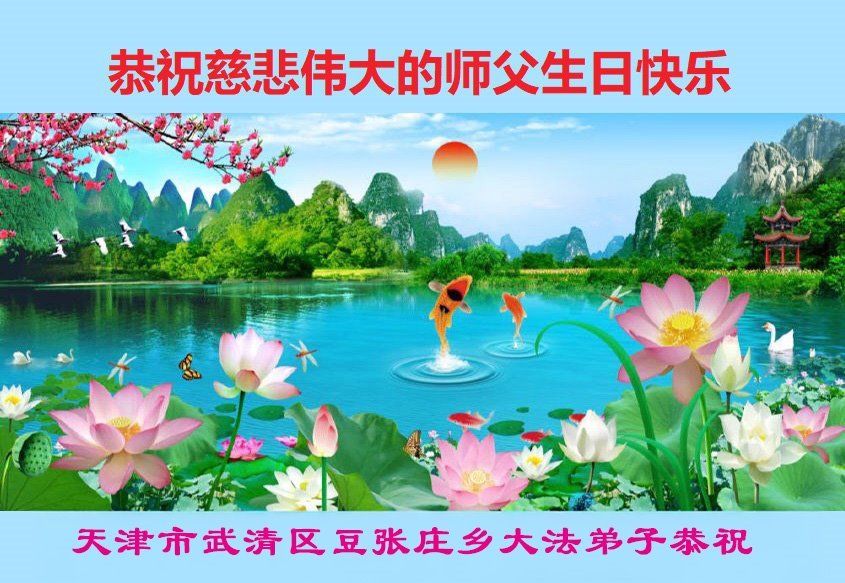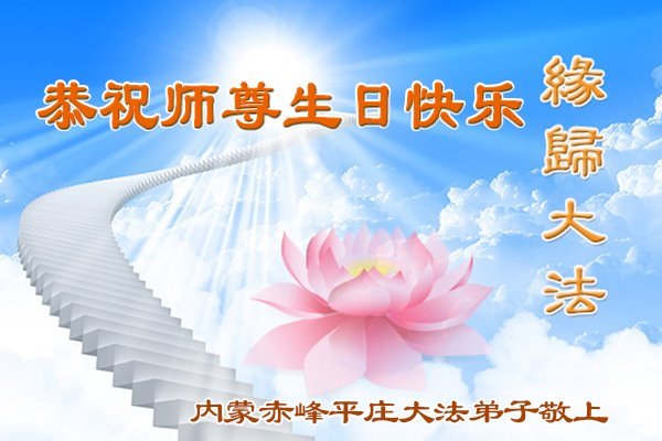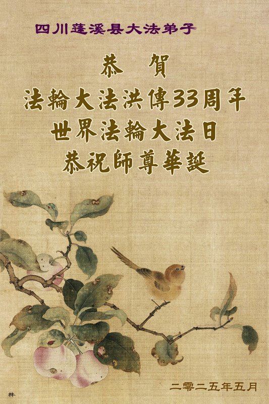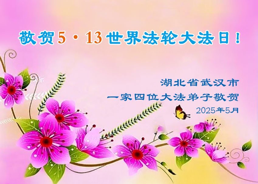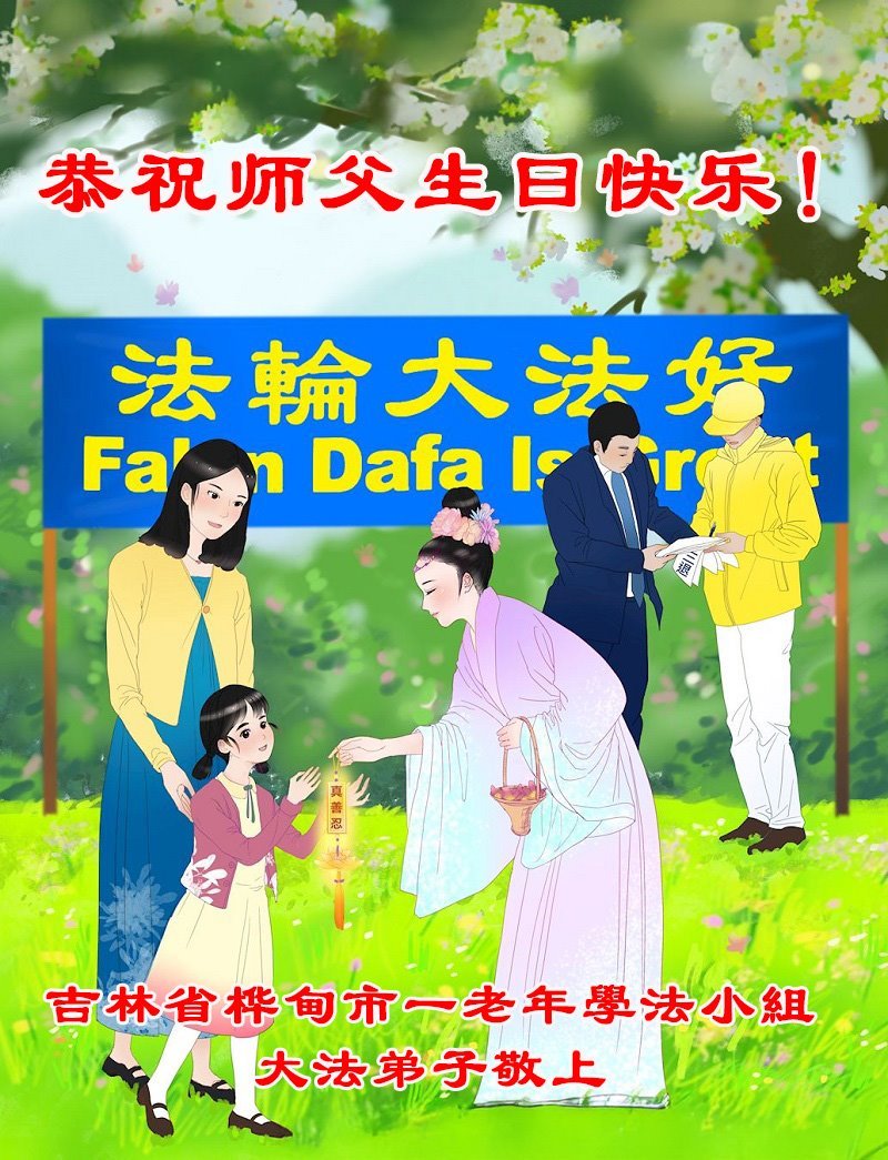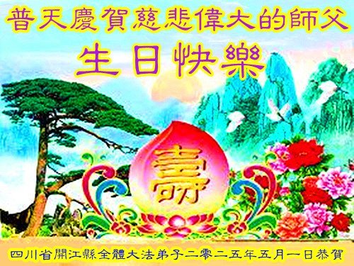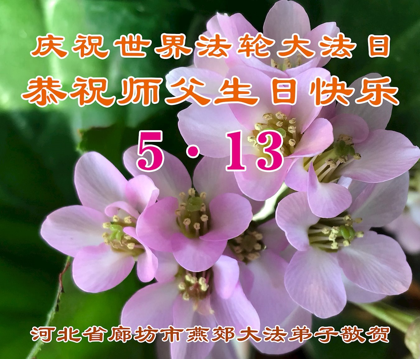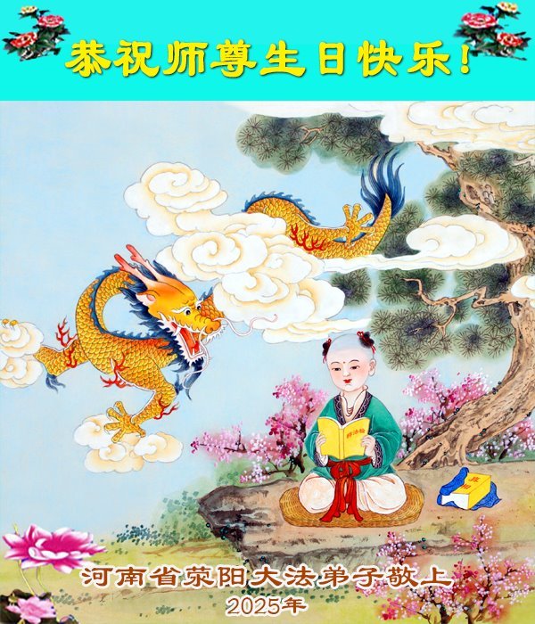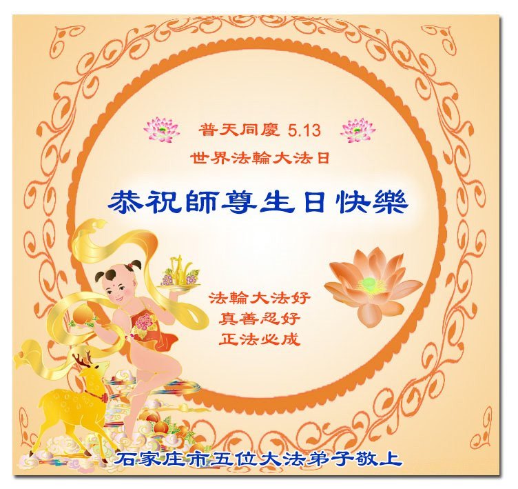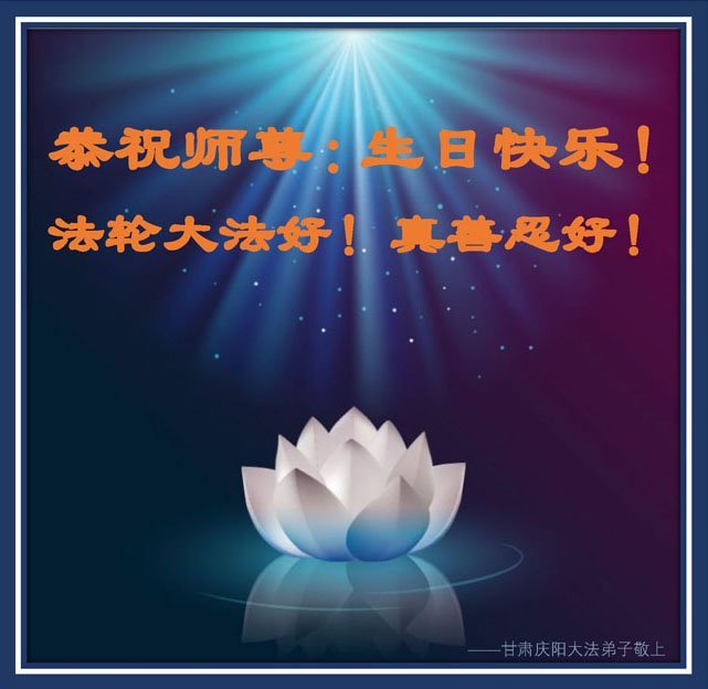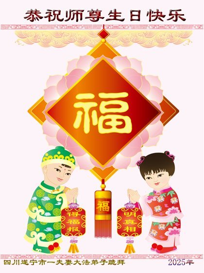 我们是九九年七二零之前得法的老弟子,历经种种风雨魔难,更加坚信大法,精進实修,以报师恩。在五一三世界法轮大法日来临之际,恭祝师尊生日快乐!我们想念师尊,盼望师尊早日回国,荣归故里。弟子敬拜师尊!谨以以下小诗敬献师尊。