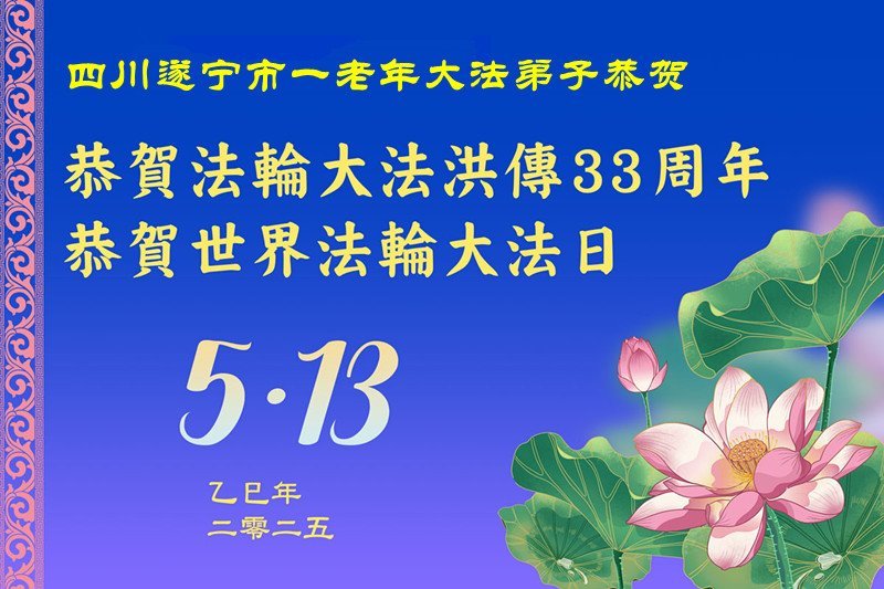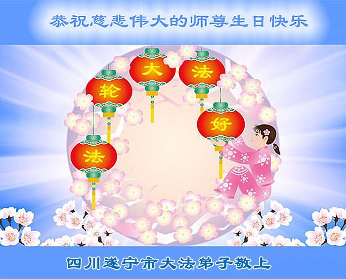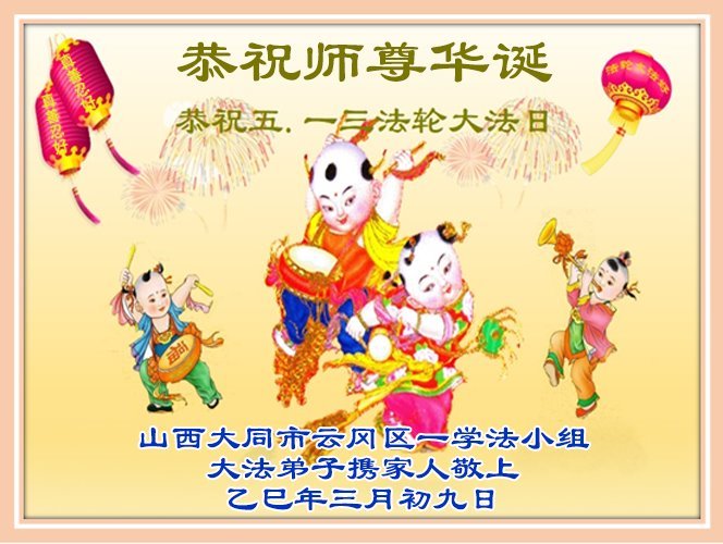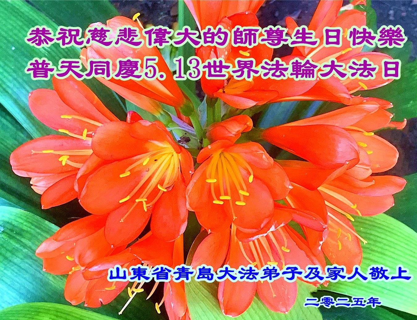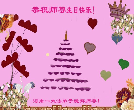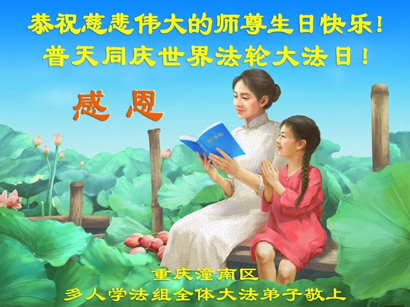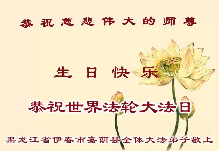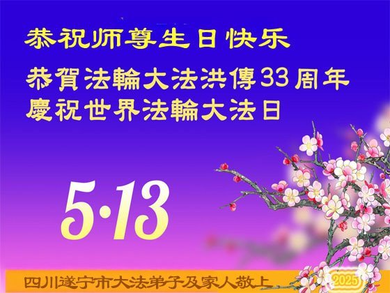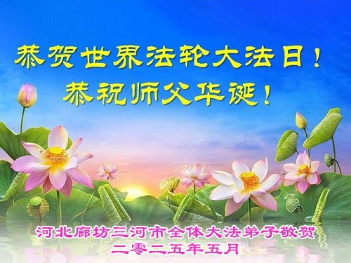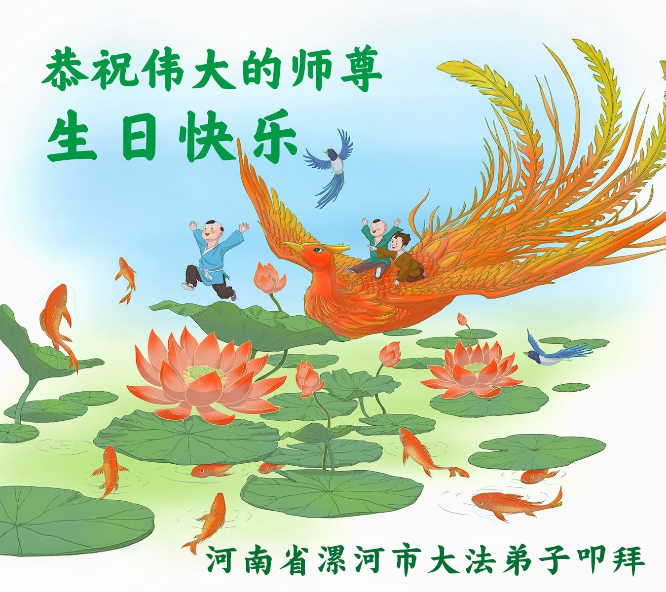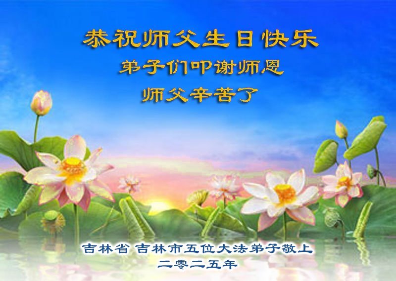 我们是九九年七二零之前得法的老弟子,历经种种风雨魔难,更加坚信大法,精進实修,以报师恩。在五一三世界法轮大法日来临之际,恭祝师尊生日快乐!我们想念师尊,盼望师尊早日回国,荣归故里。弟子敬拜师尊!谨以以下小诗敬献师尊。