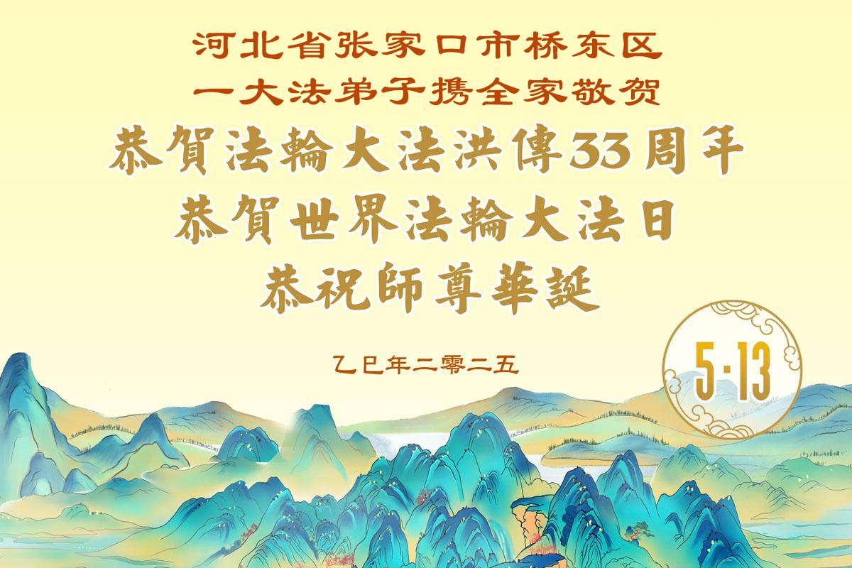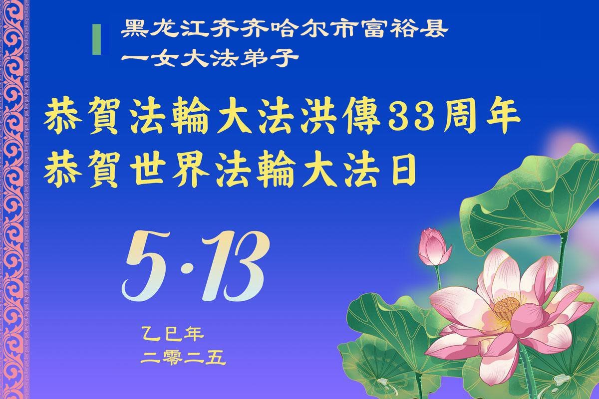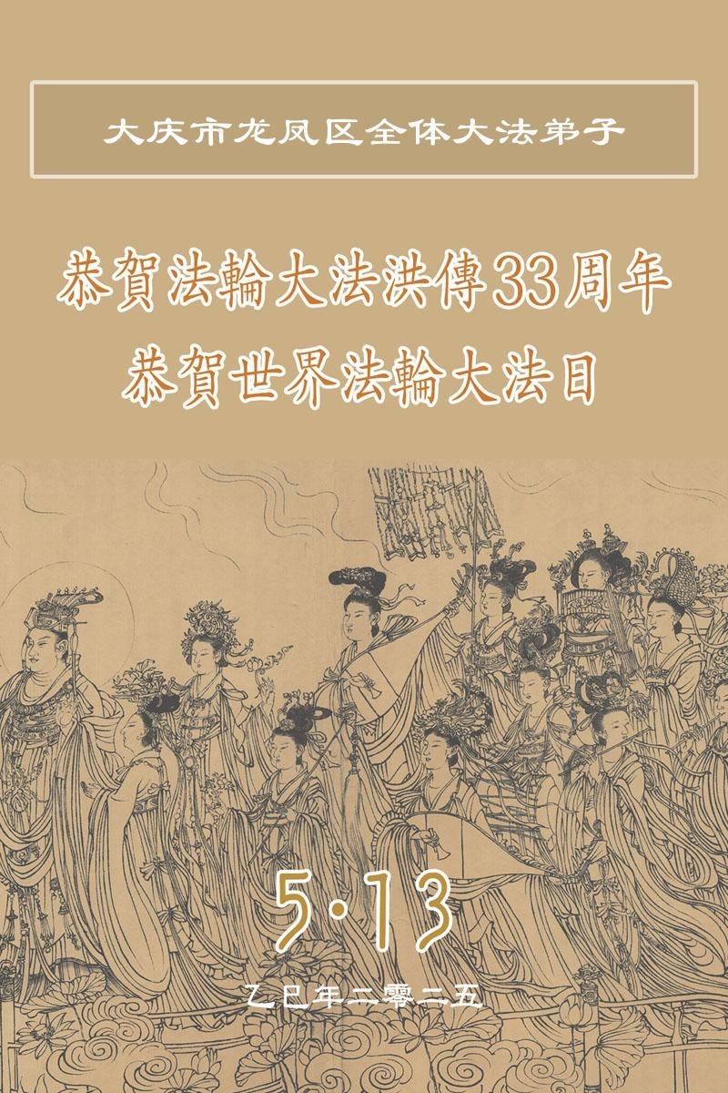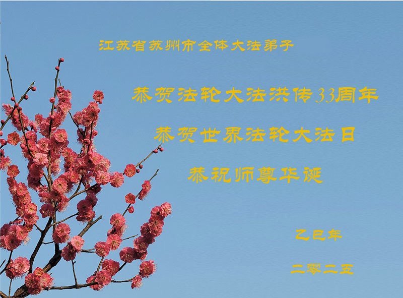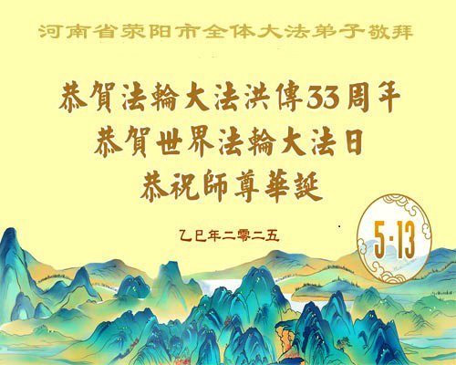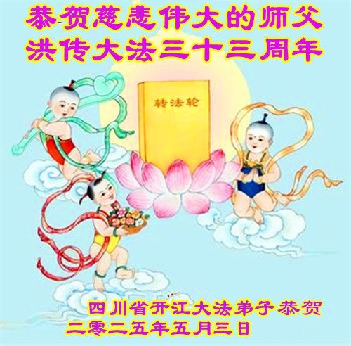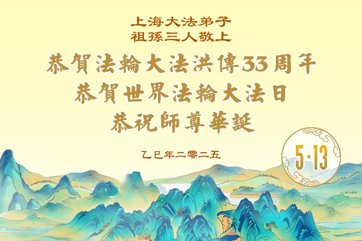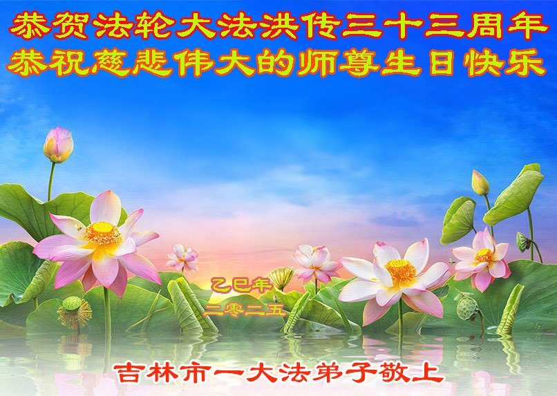 值此法轮大法开传三十三周年纪念日、第二十六届世界法轮大法日,伟大师尊七十四岁华诞喜庆之际,弟子恭祝师尊华诞!同庆世界法轮大法日!