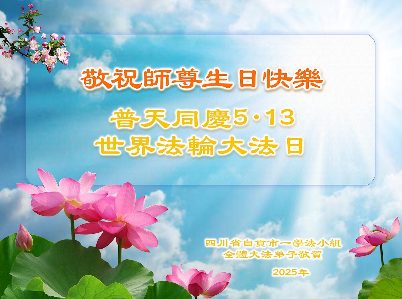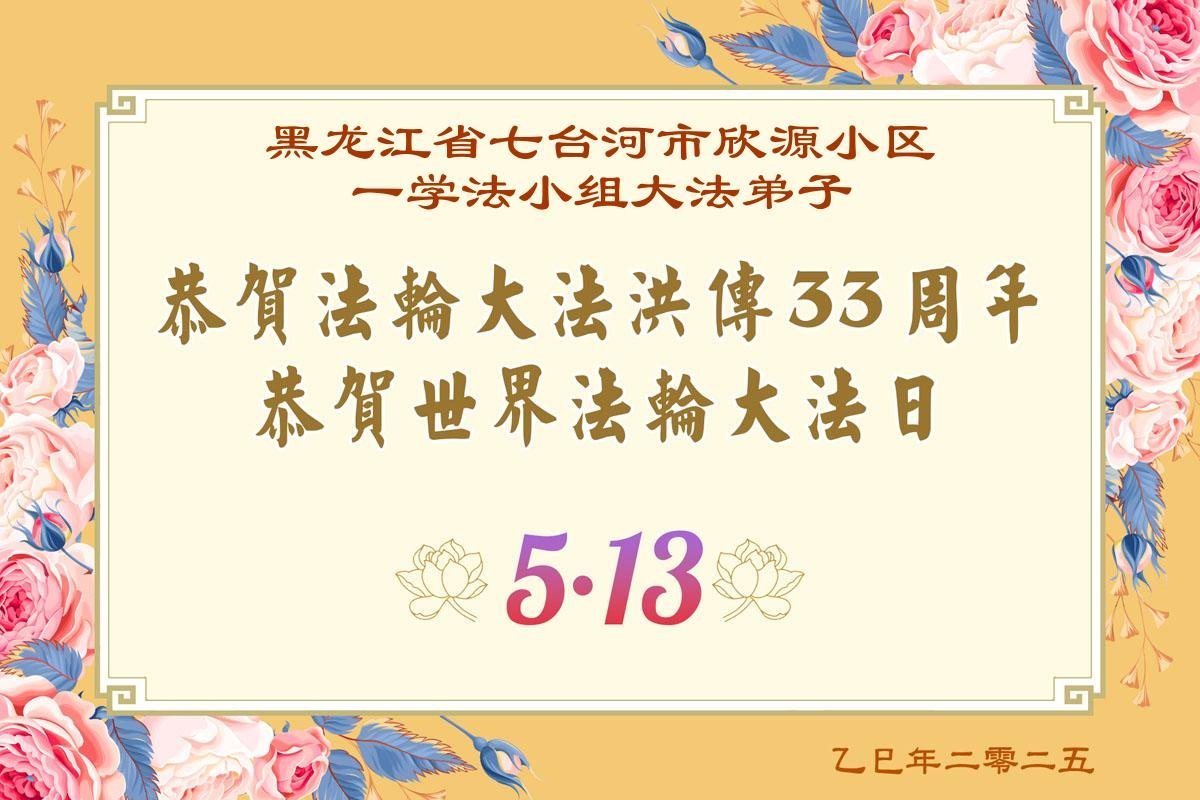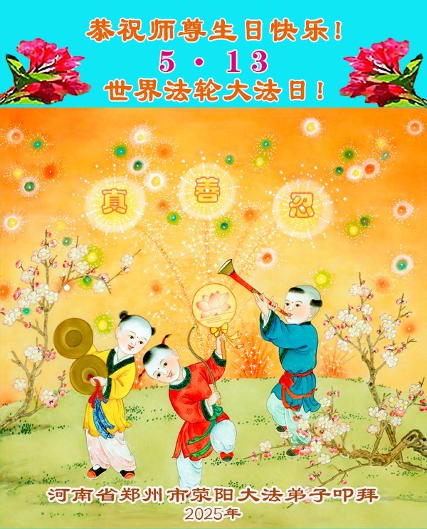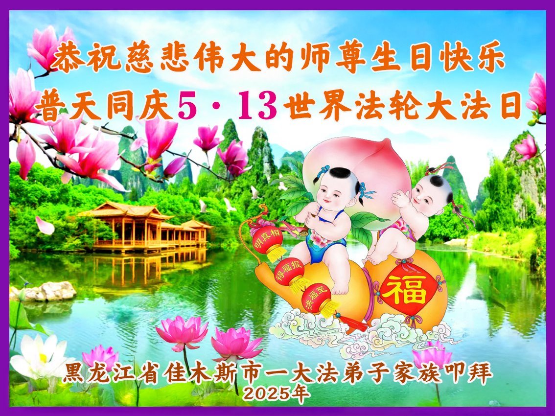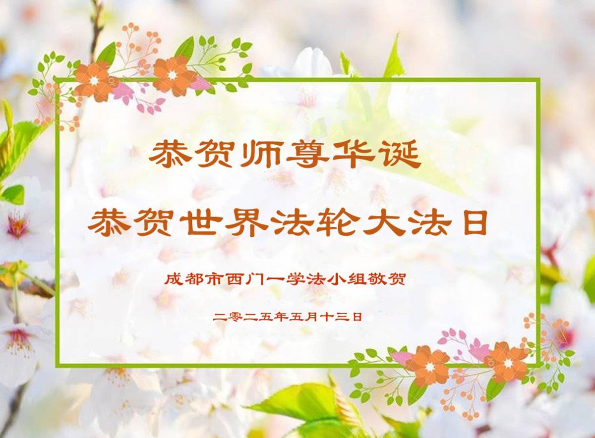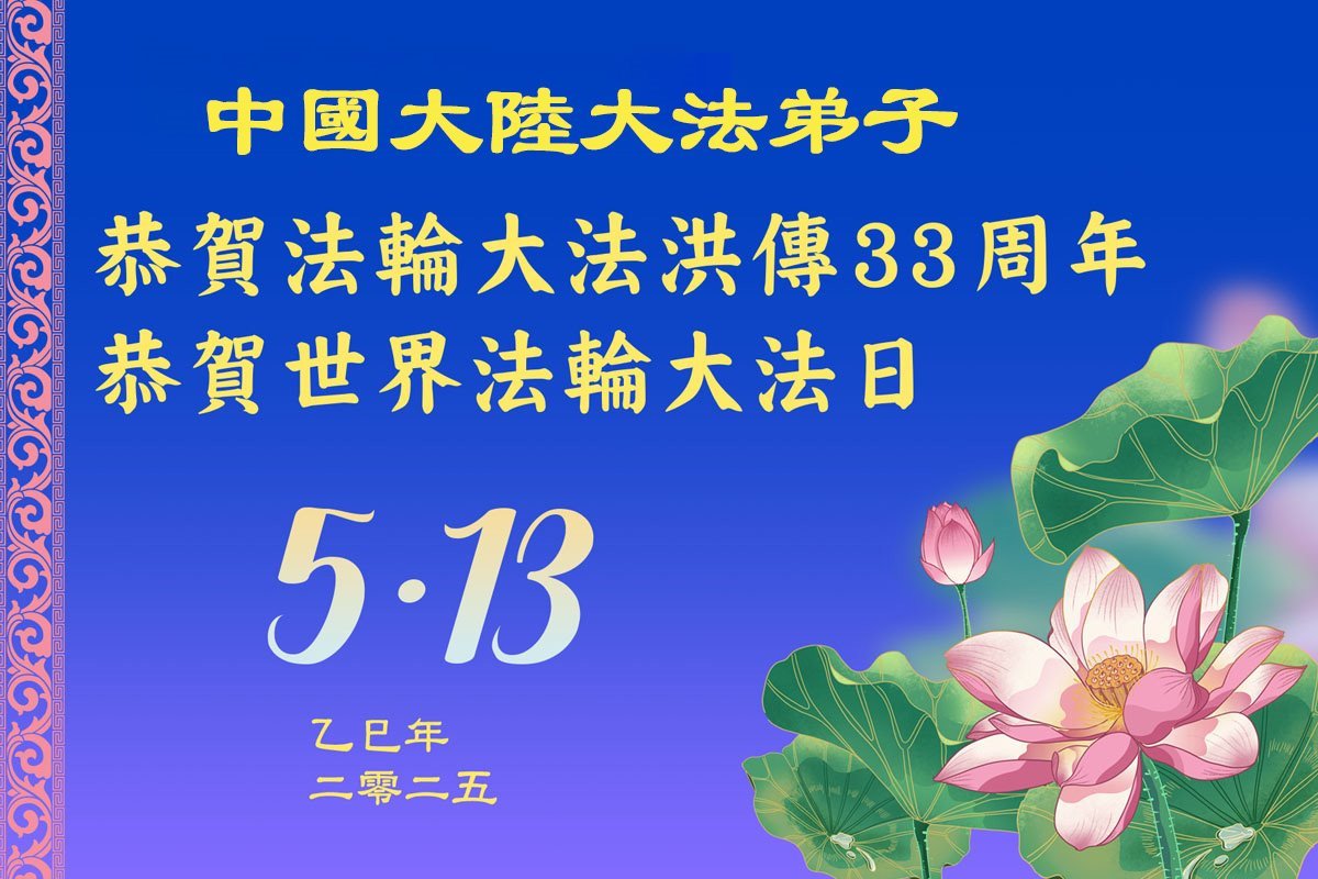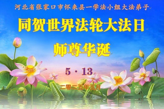 【明慧网二零二五年五月十一日】(明慧网记者综合报道)历经中共残酷迫害法轮功的二十六年,大法弟子们凭着对师尊的正信一路走过来了。中国各省各地都有学法小组,大法弟子开创环境每天静心学法炼功,按照真善忍实修自己,历经种种风雨魔难,依靠大法的指引不迷航。五月十三日,世界法轮大法日到来之际,中国各地学法小组的大法弟子们同庆同祝这神圣的日子,深深感念师尊的慈悲救度,恭贺师尊华诞。