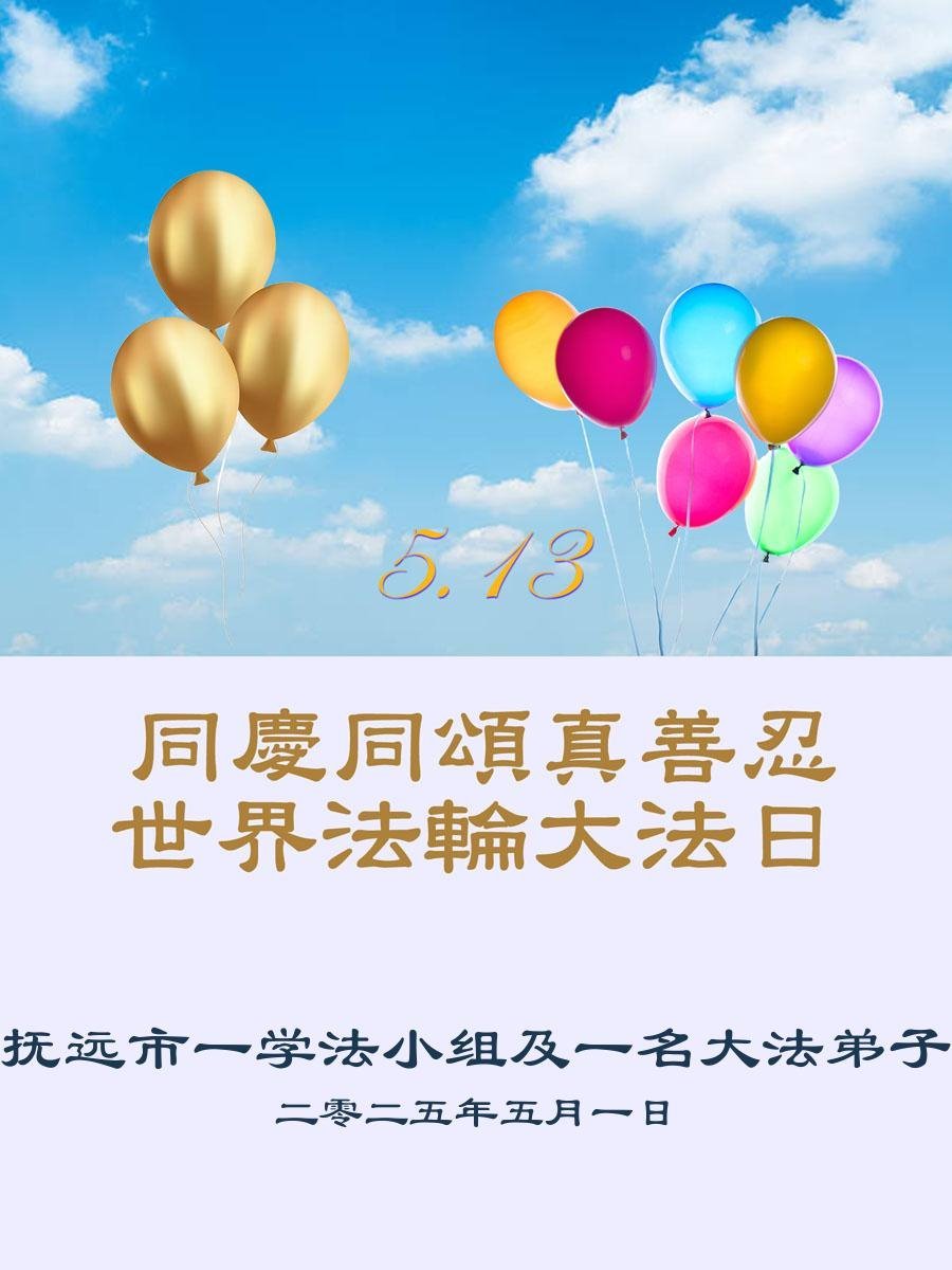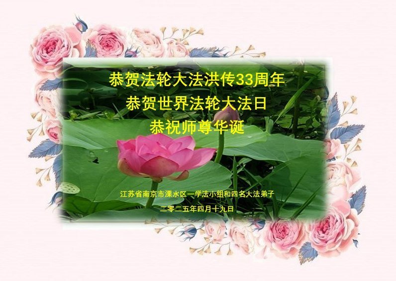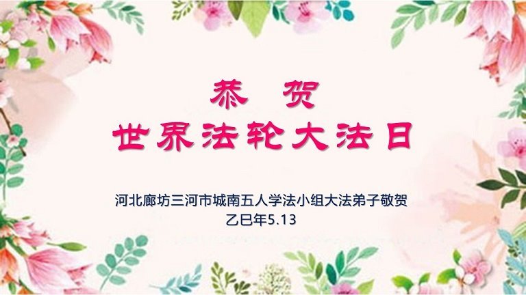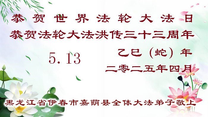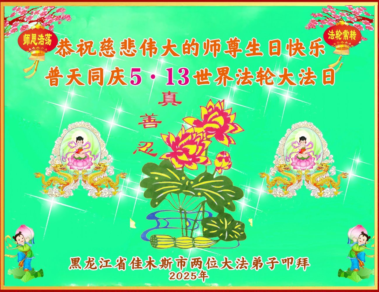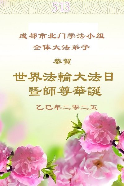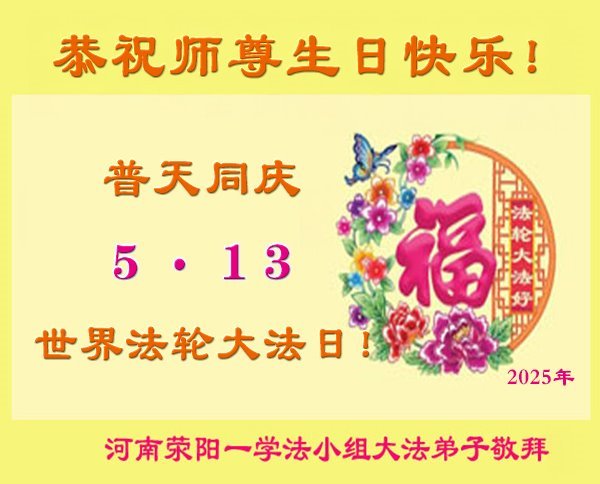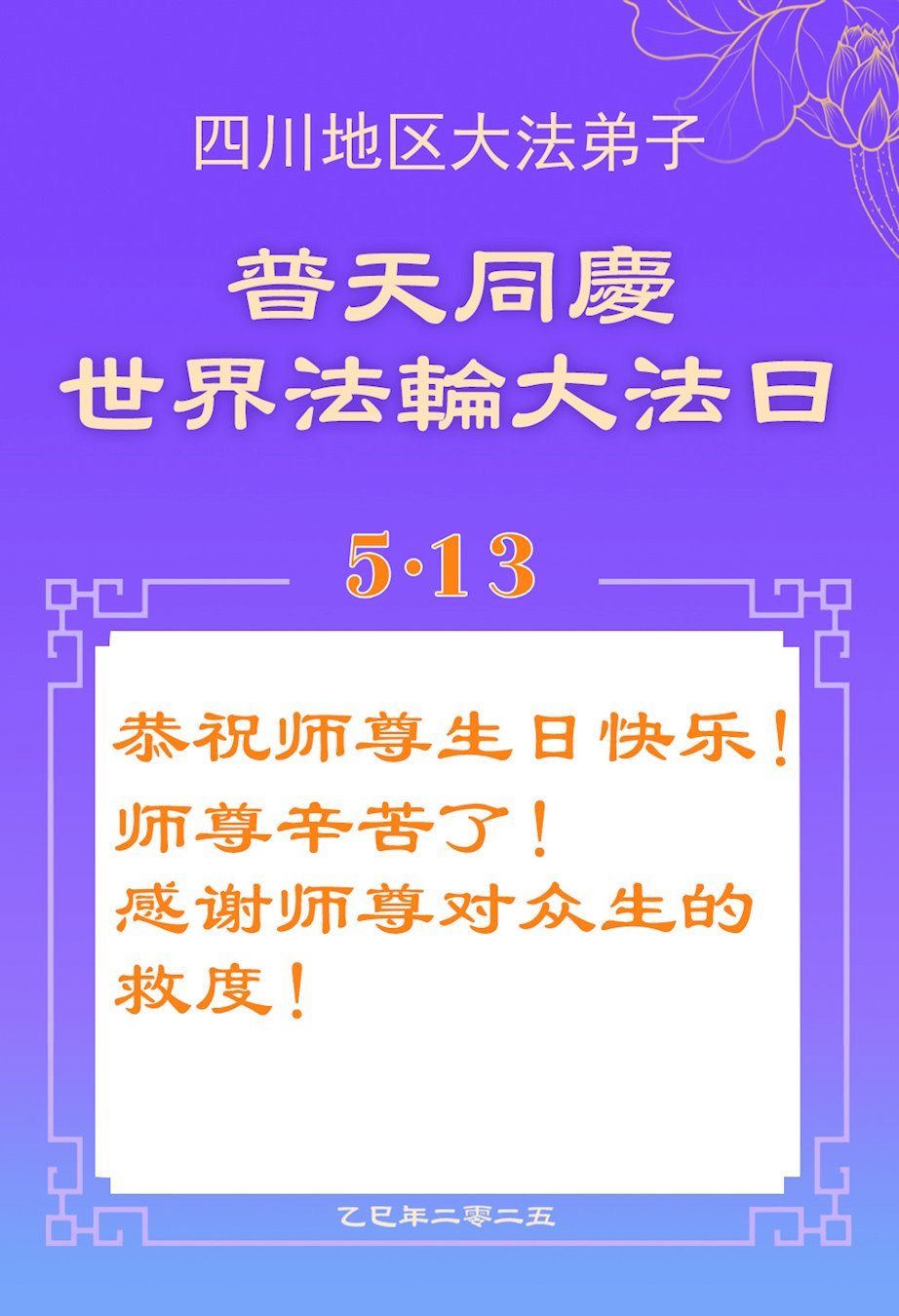 【明慧网二零二五年五月十一日】(明慧网记者综合报道)历经中共残酷迫害法轮功的二十六年,大法弟子们凭着对师尊的正信一路走过来了。中国各省各地都有学法小组,大法弟子开创环境每天静心学法炼功,按照真善忍实修自己,历经种种风雨魔难,依靠大法的指引不迷航。五月十三日,世界法轮大法日到来之际,中国各地学法小组的大法弟子们同庆同祝这神圣的日子,深深感念师尊的慈悲救度,恭贺师尊华诞。