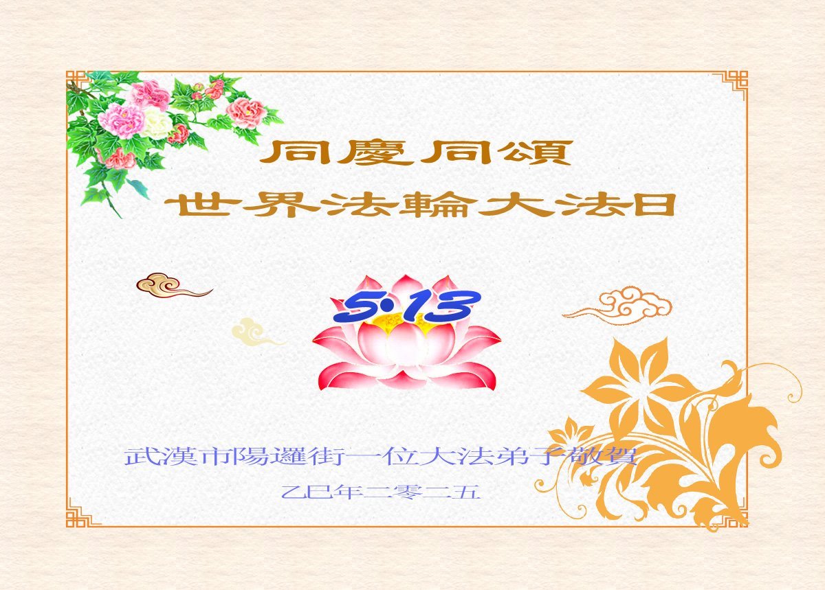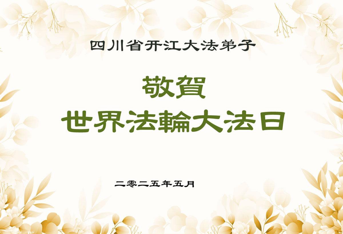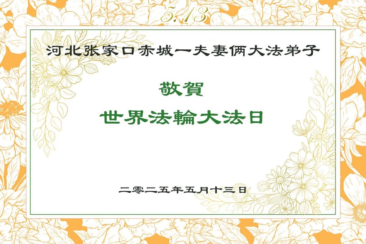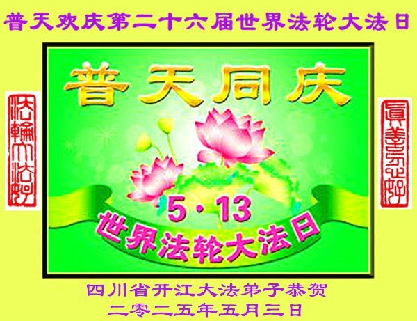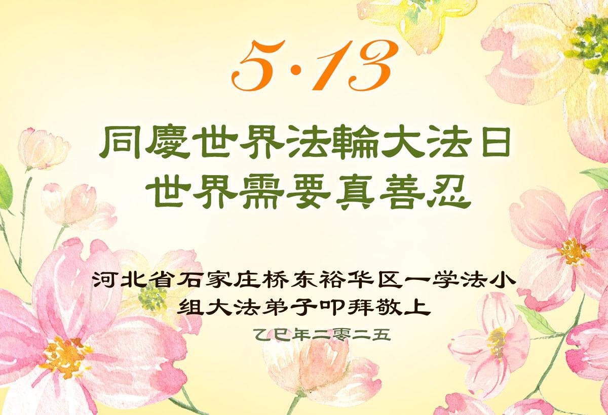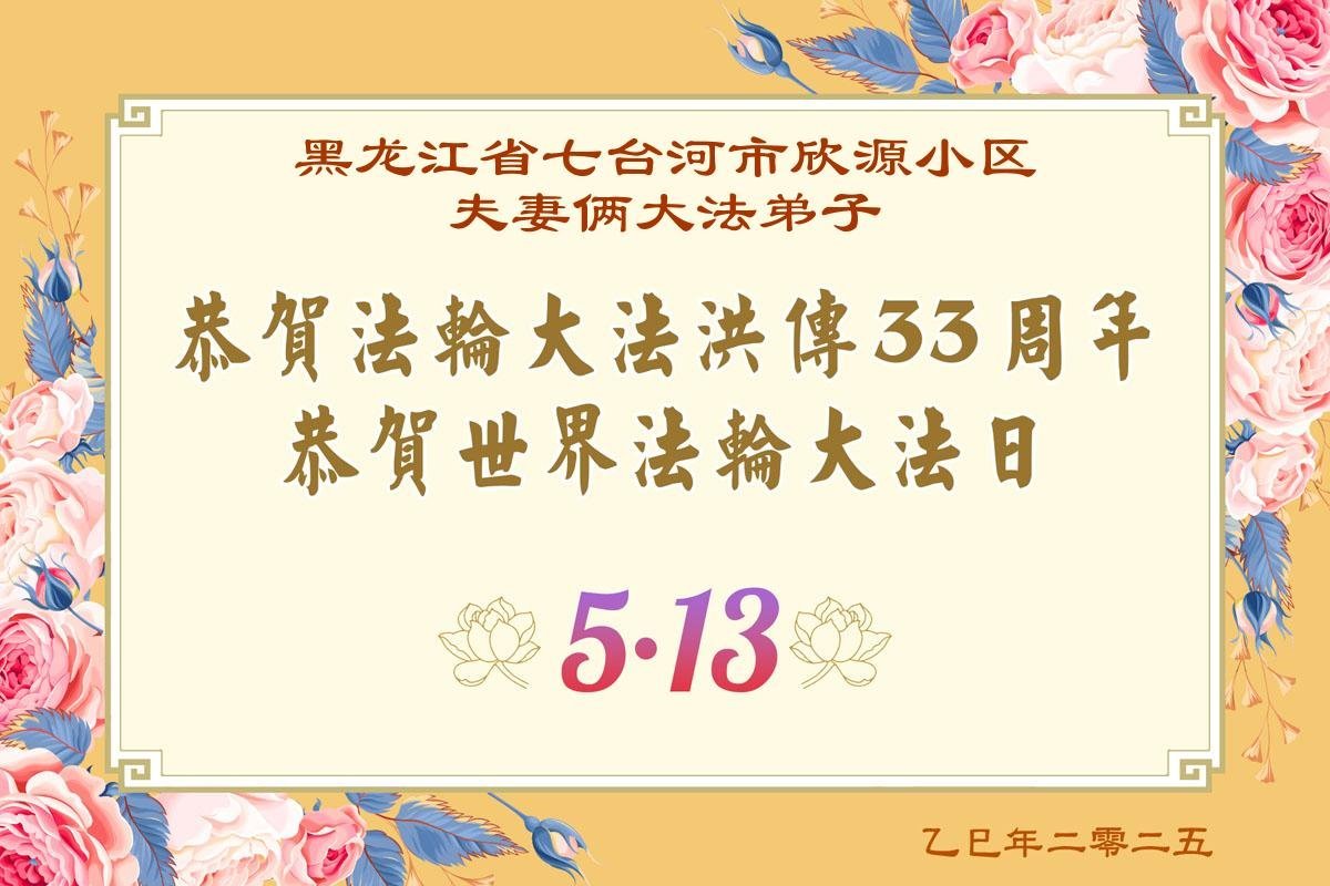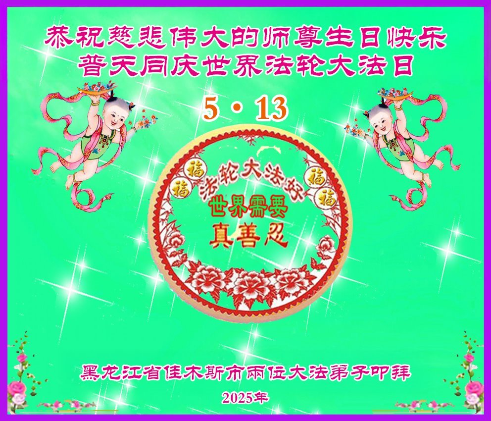 【明慧网二零二五年五月十一日】(明慧网记者综合报道)历经中共残酷迫害法轮功的二十六年,大法弟子们凭着对师尊的正信一路走过来了。中国各省各地都有学法小组,大法弟子开创环境每天静心学法炼功,按照真善忍实修自己,历经种种风雨魔难,依靠大法的指引不迷航。五月十三日,世界法轮大法日到来之际,中国各地学法小组的大法弟子们同庆同祝这神圣的日子,深深感念师尊的慈悲救度,恭贺师尊华诞。