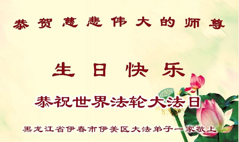 我修炼大法,我的家人都支持,因此我的家人都明白真相,受益多多。家人也让我替他们向师父问候。恭祝师父生日快乐!在新的一年里,我们学法小组会更加努力做好三件事,完成我们的历史使命,跟随师父正法到最后一刻。