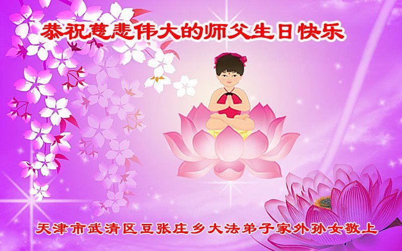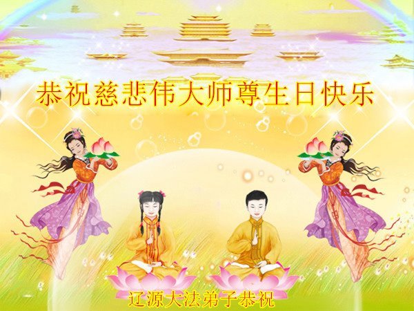 跪拜慈悲伟大的师尊,弟子向师尊问好,感恩师尊慈悲救度。恭祝师尊生日快乐!敬贺世界法轮大法日!