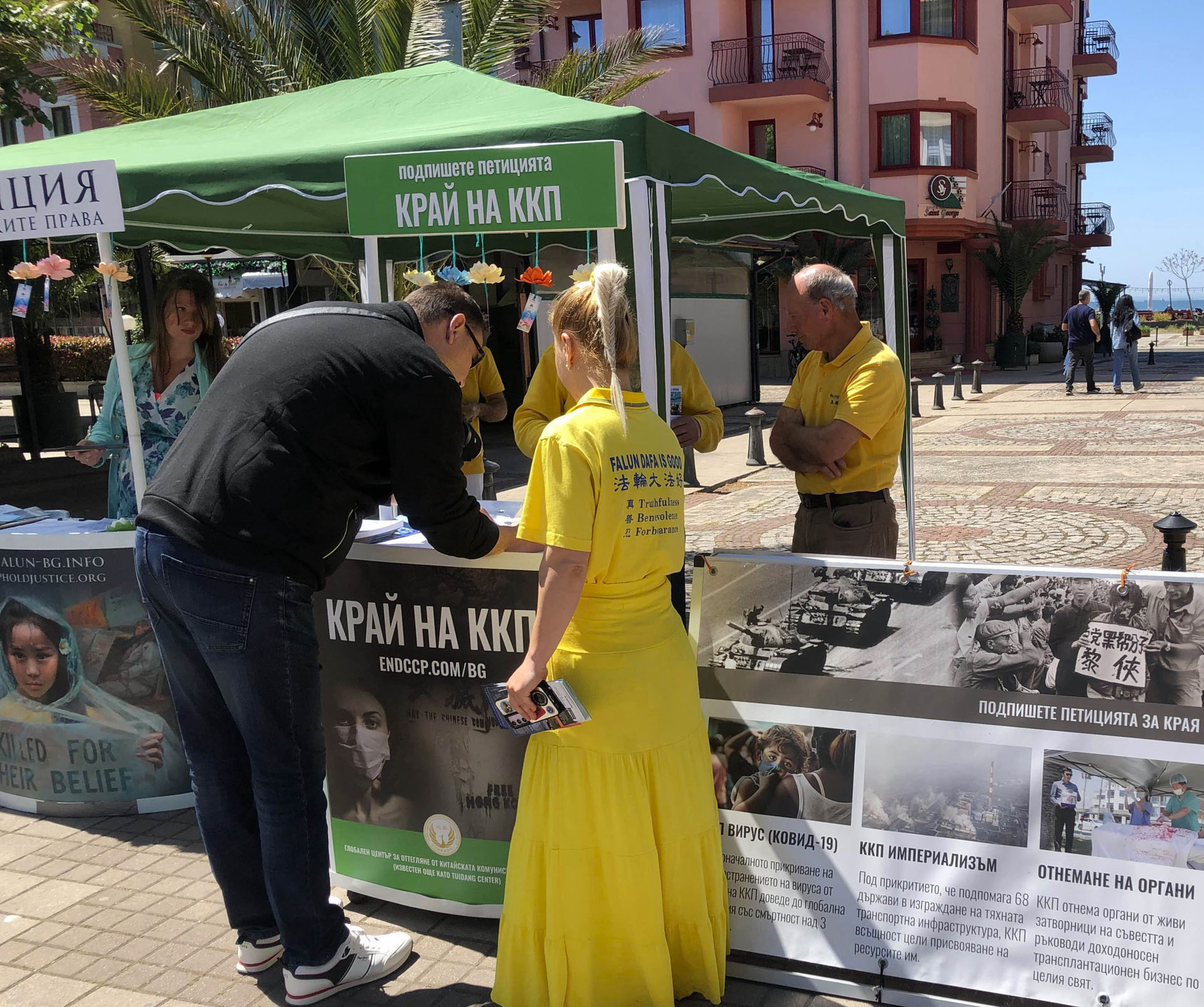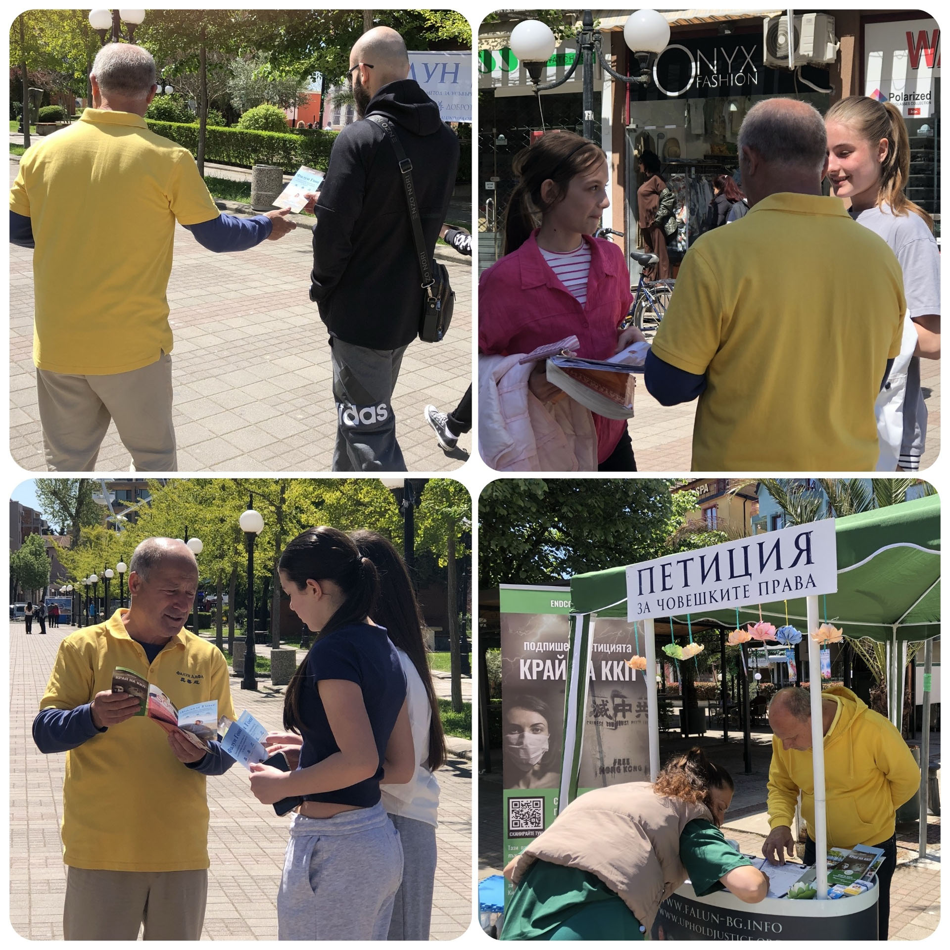 当天,法轮功学员在主要步行街上设立真相展位,同时展示法轮功五套功法,并在两份请愿书上征集签名,一份请愿书谴责中共对人权的侵犯和对法轮功的迫害;另一份请愿书呼吁保加利亚政府阻止保加利亚公民(在不知情的情况下)参与中共活摘器官的罪恶行为。许多路人纷纷表示支持,他们还鼓励法轮功学员采取行动反对迫害,勇敢追求信仰自由的权利。