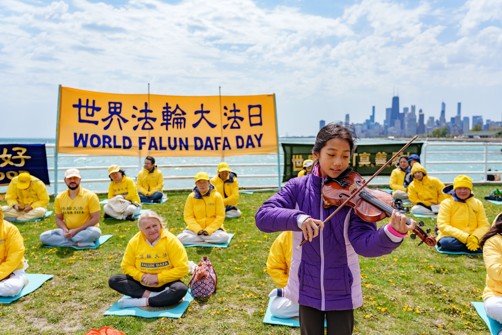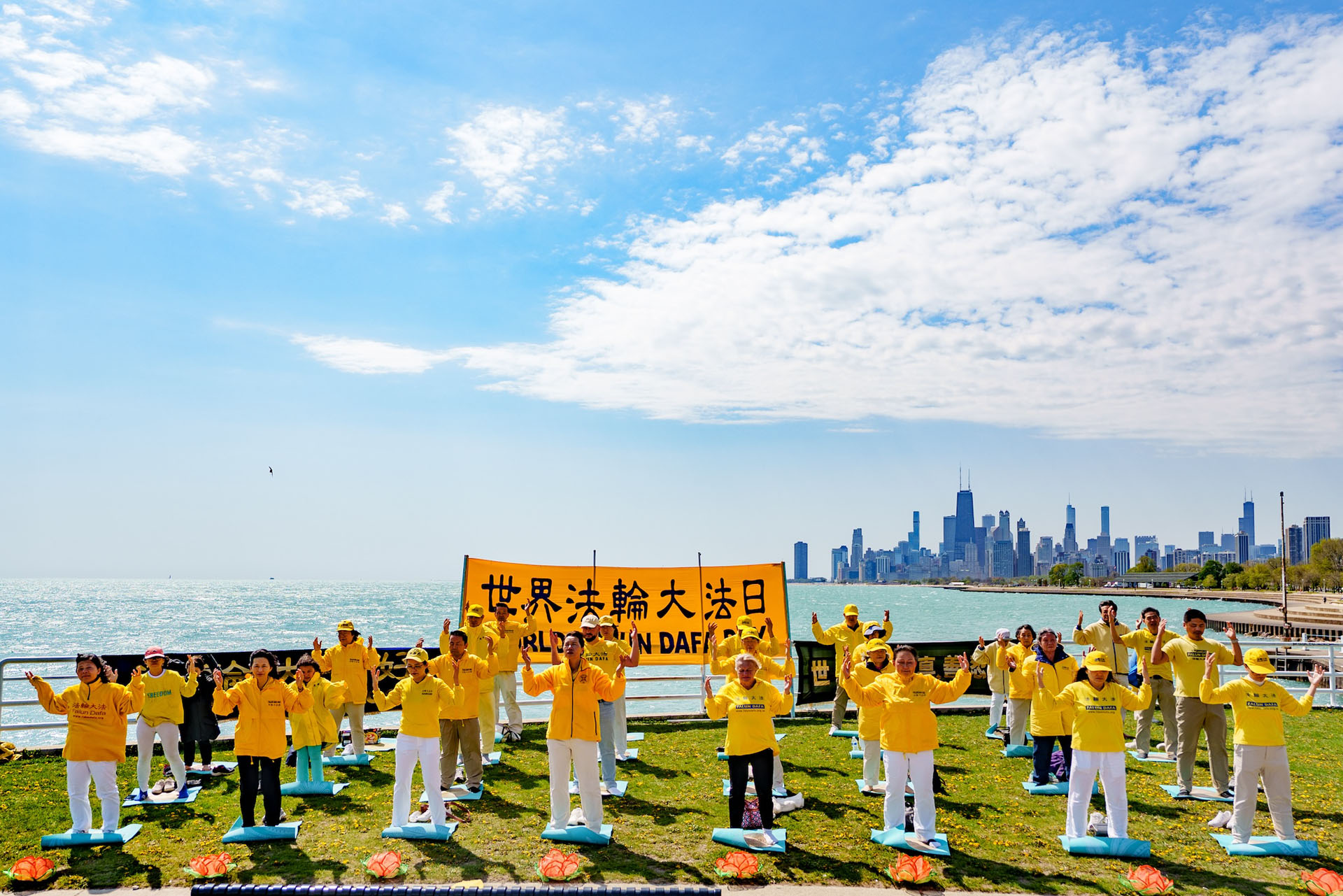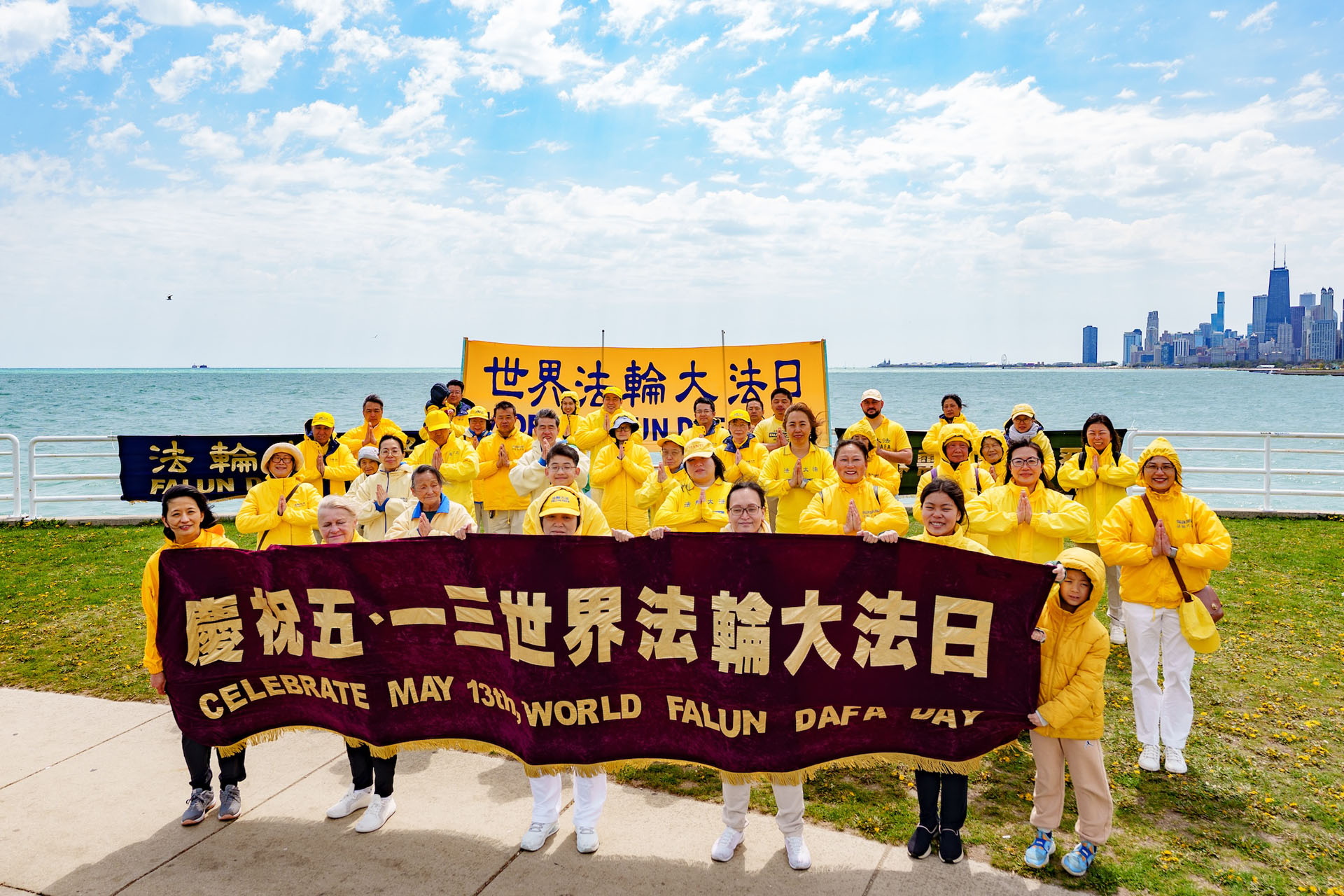![]() 图1~3:二零二五年五月十日,大芝加哥地区部分法轮功学员在芝加哥密西根湖畔集体炼功、表演节目,庆祝世界法轮大法日,恭贺师父华诞。 |
