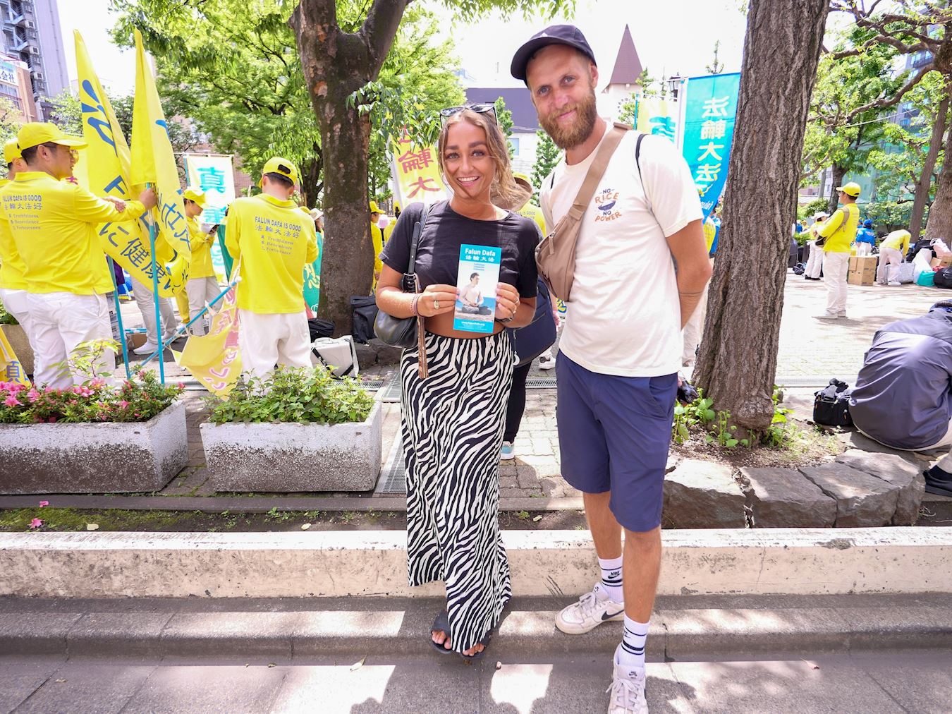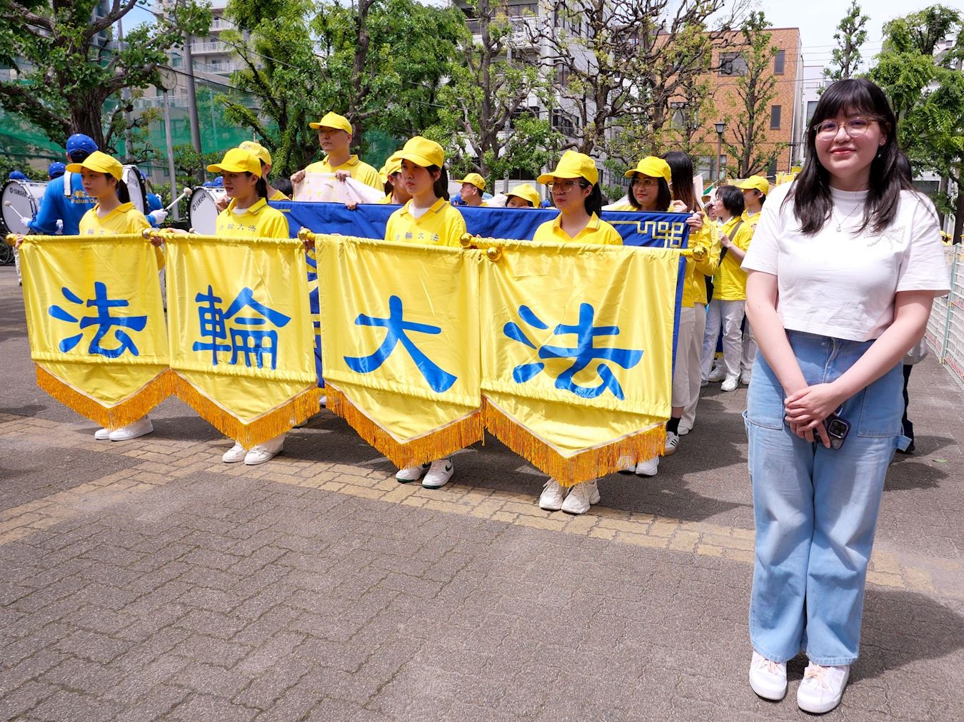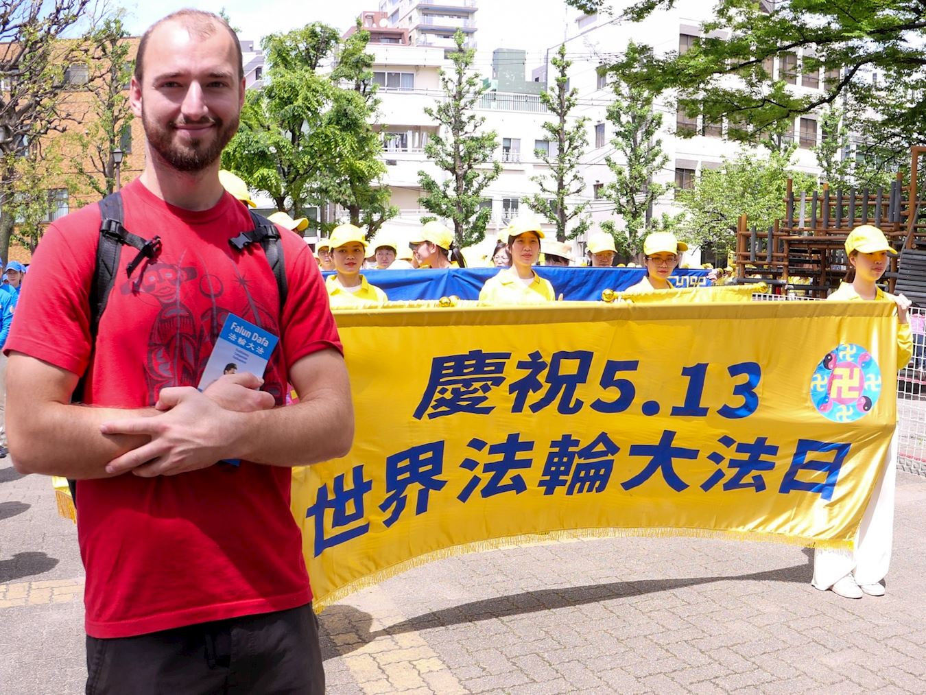 在日本居住了九年的中国人俊先生(化名)是第一次看到法轮功的游行。他对天国乐团的演奏等活动感到惊讶。他表示小时候在中国以为法轮功是×教,长大后通过看油管等了解了真相。来日本后对法轮功的看法转变为纯粹为健康而进行的活动。