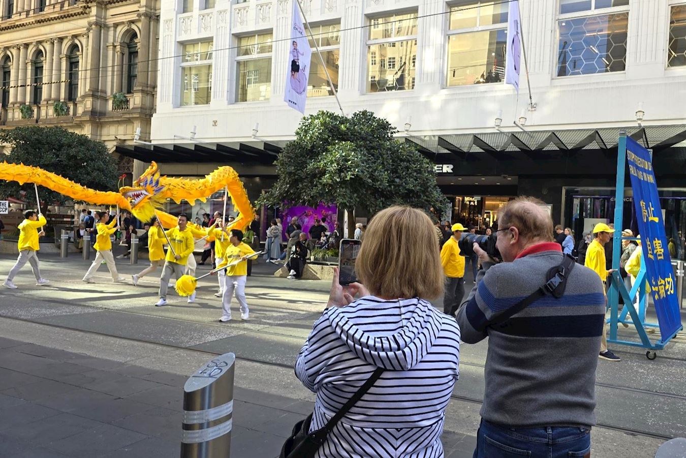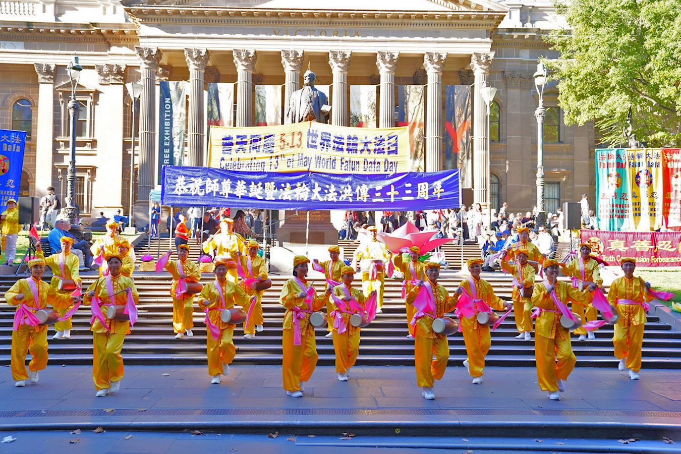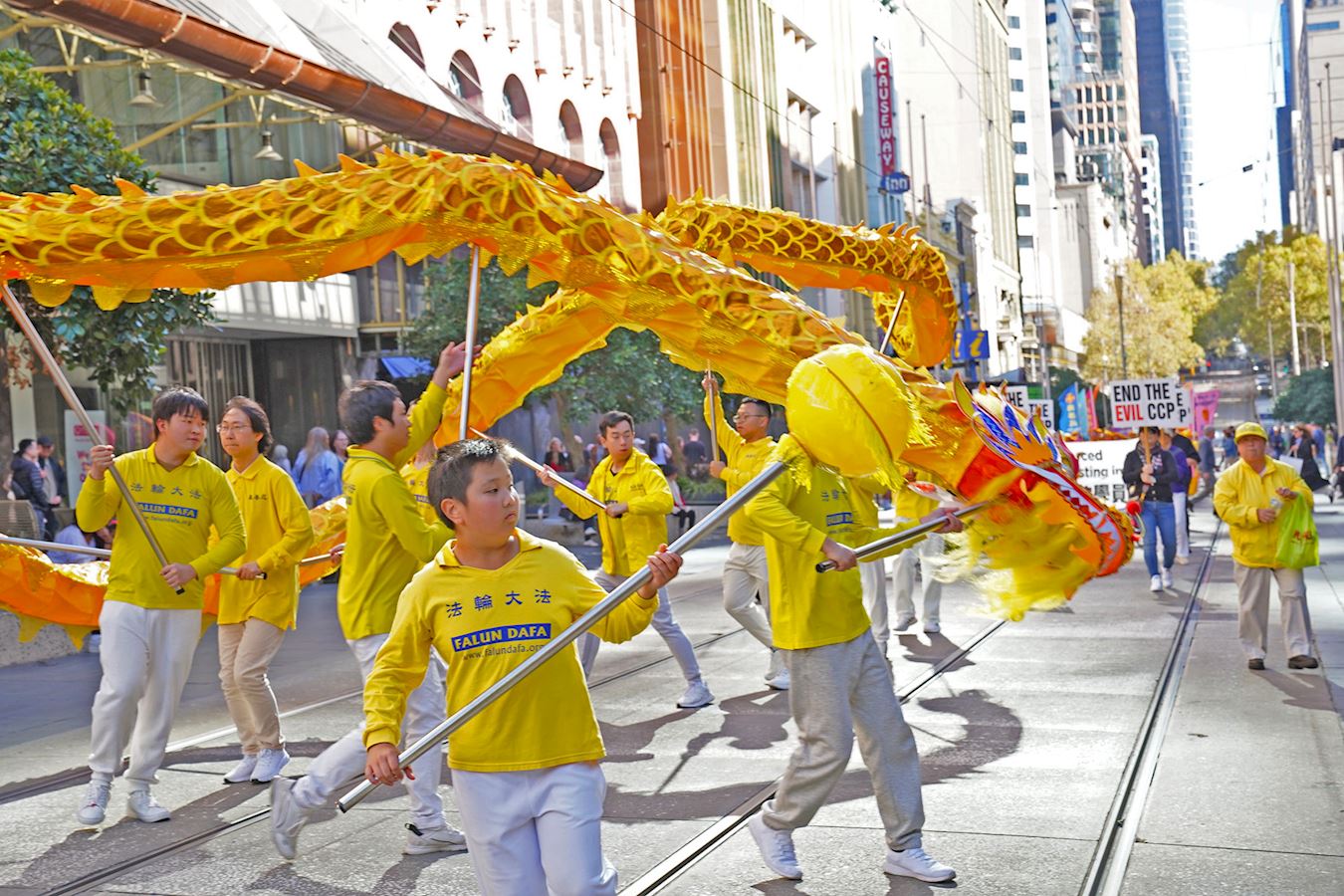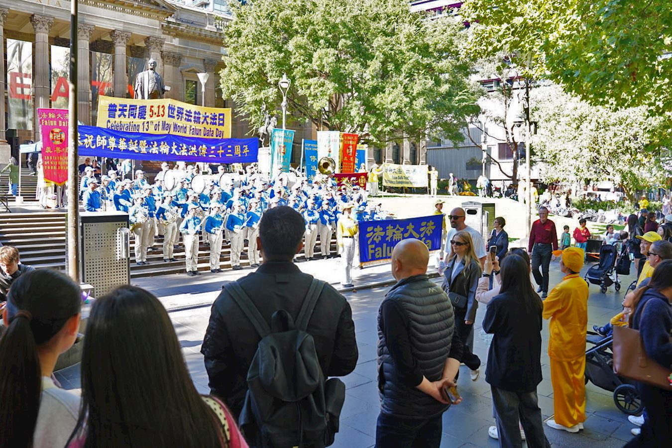 当天南半球的文化之都阳光灿烂、秋高气爽,逾百人的游行队伍从维多利亚女王花园(Queen Victoria Gardens)出发,途经唐人街等最繁华商业区,喜庆祥和,吸引众多市民和游客驻足观看、拍照摄影。游行队伍抵达终点维州州立图书馆(State Library of Victoria)后,举行了庆祝集会。