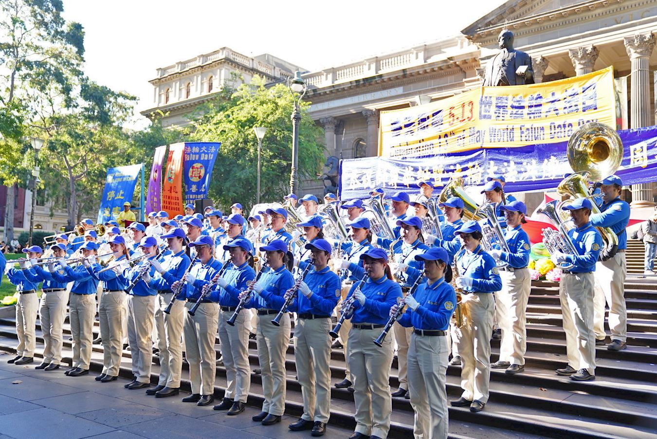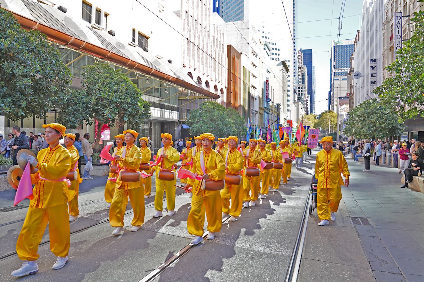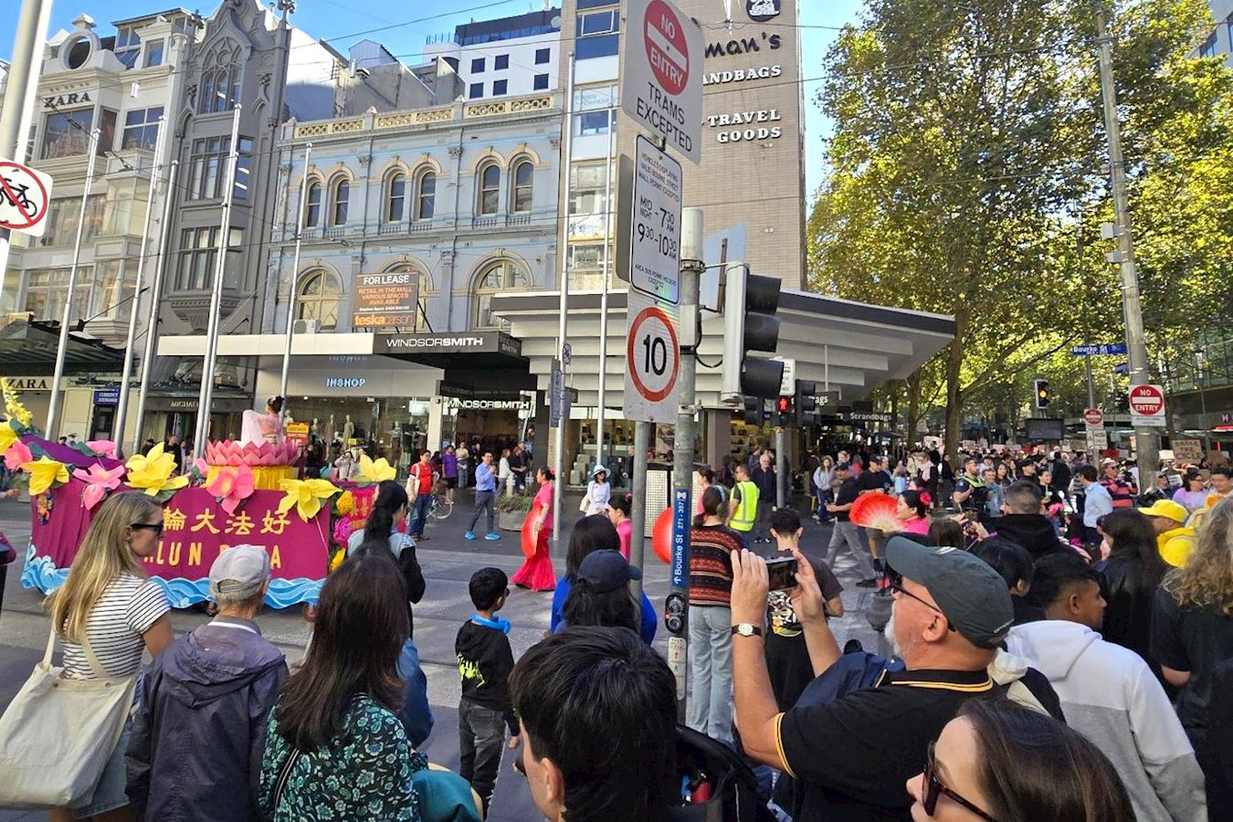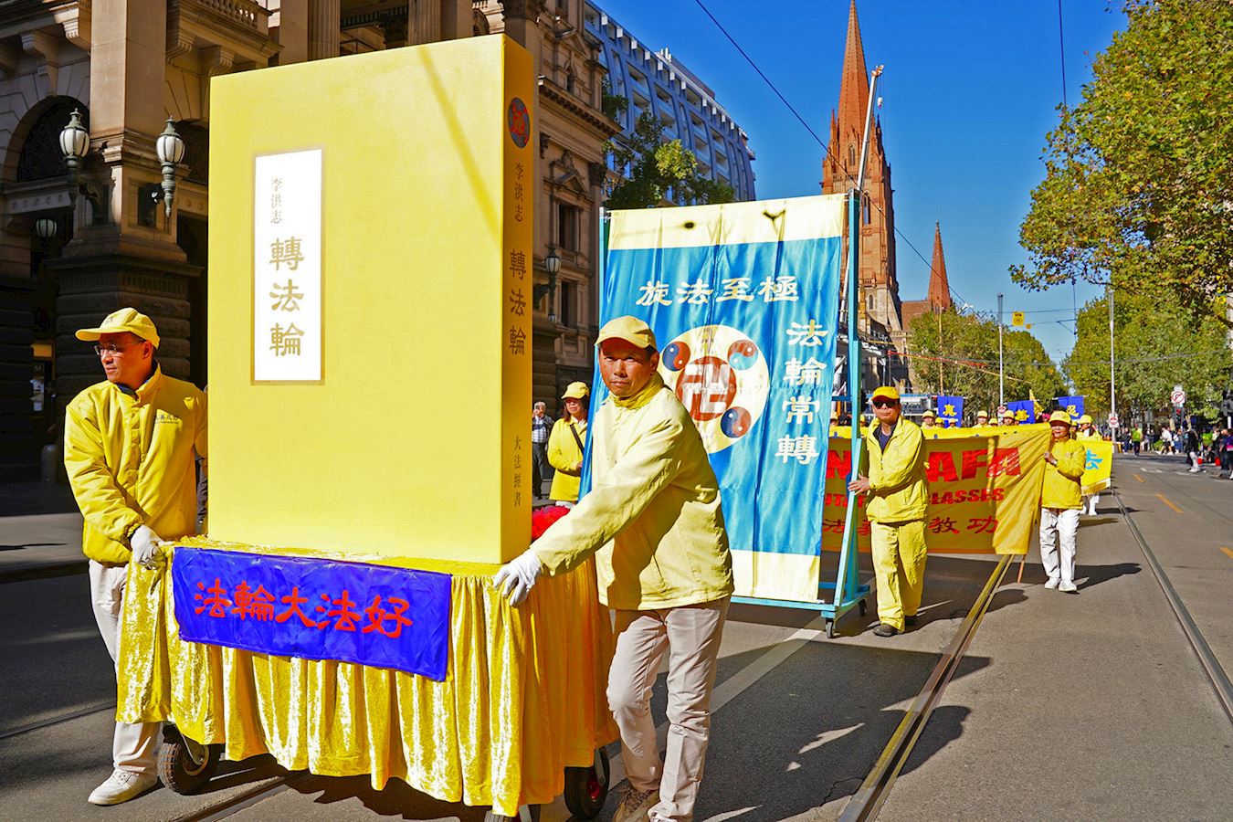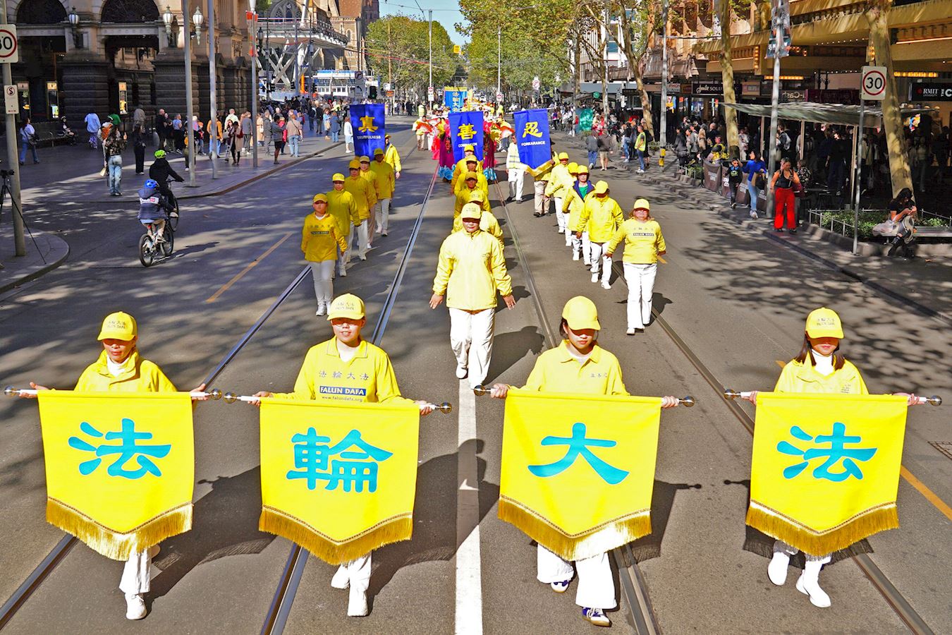 当天南半球的文化之都阳光灿烂、秋高气爽,逾百人的游行队伍从维多利亚女王花园(Queen Victoria Gardens)出发,途经唐人街等最繁华商业区,喜庆祥和,吸引众多市民和游客驻足观看、拍照摄影。游行队伍抵达终点维州州立图书馆(State Library of Victoria)后,举行了庆祝集会。