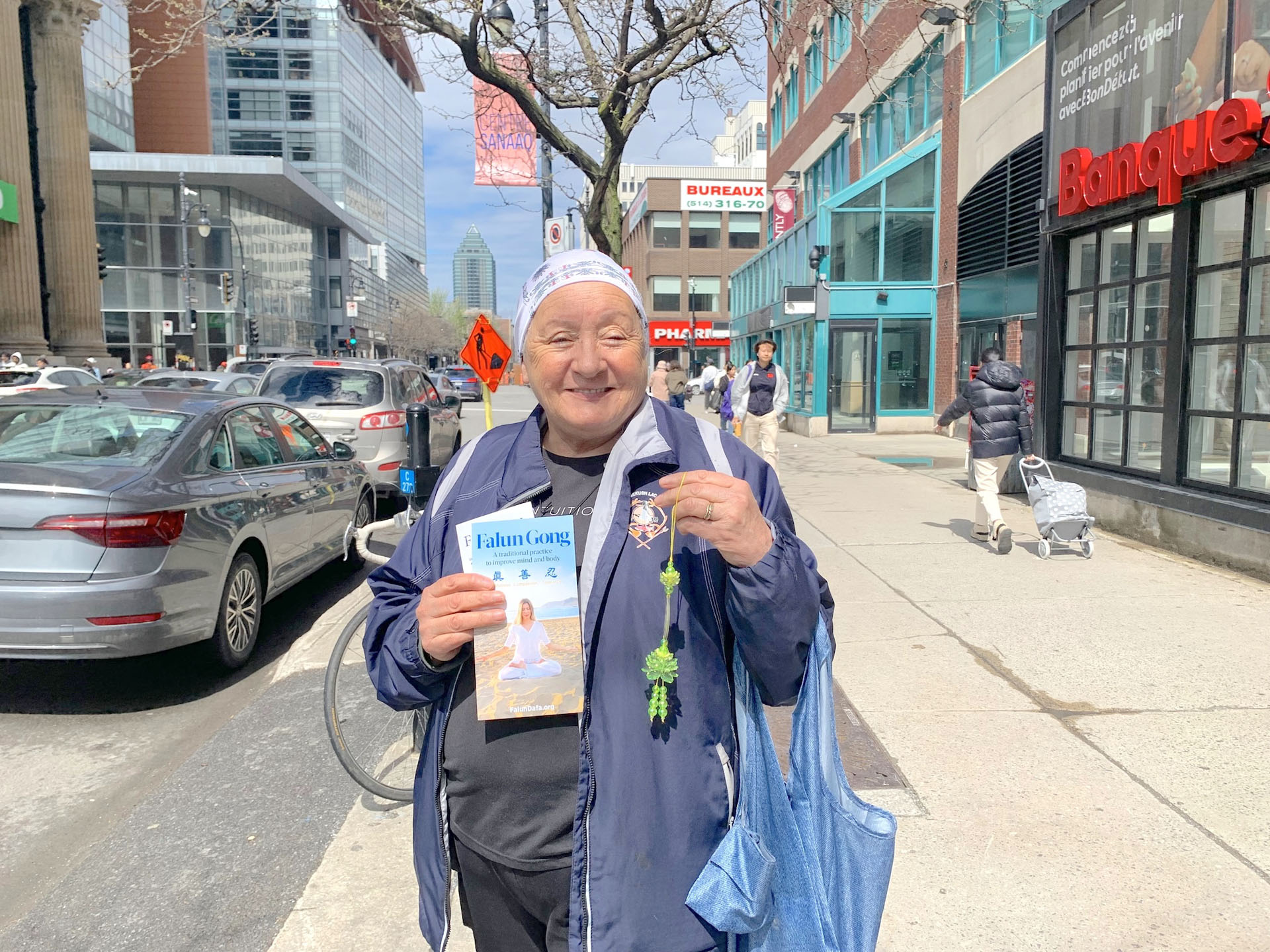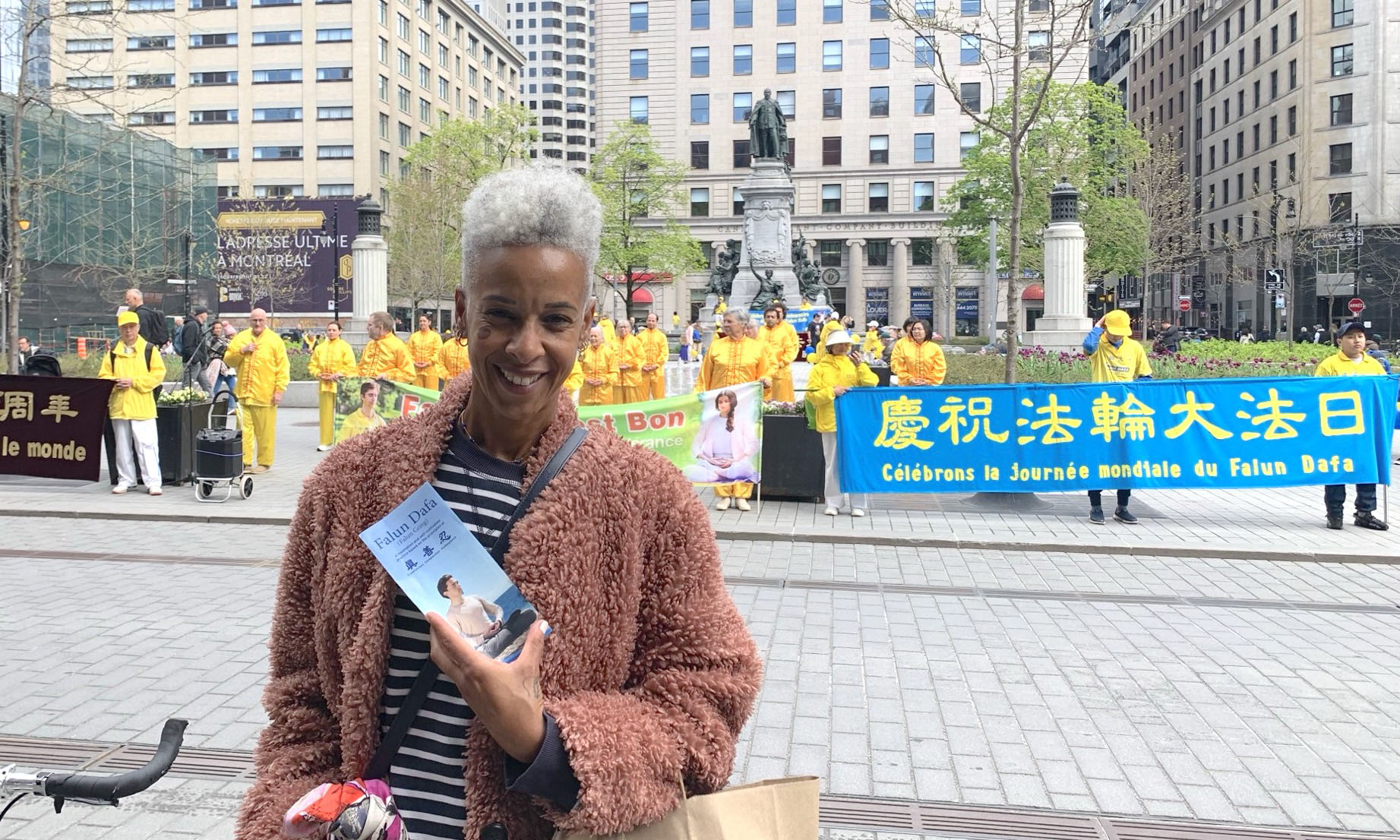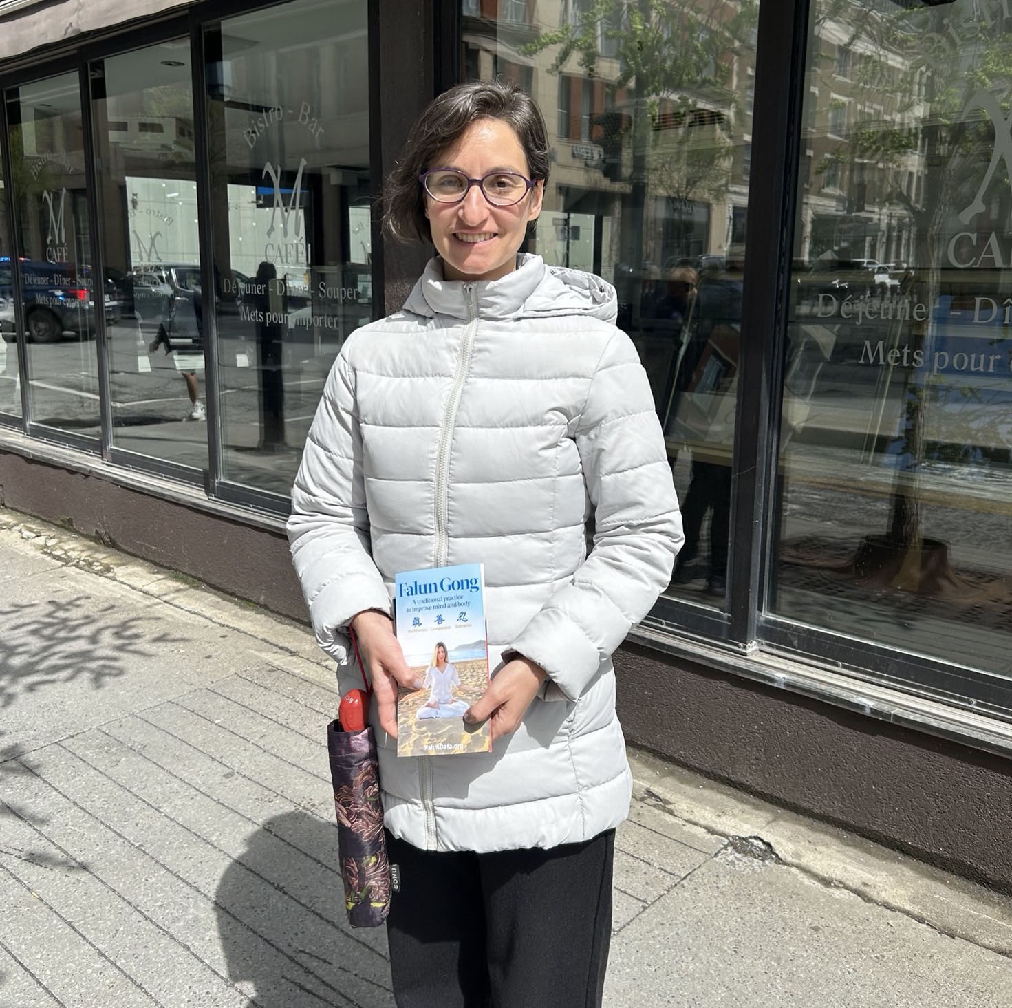 瑜伽教练史蒂芬妮(Stephanie)被广场上法轮功学员集体炼功的场景所吸引,她说:“我感受到这个功法的健康、幸福与平和,这正是当今世界所需要的。能在蒙特利尔市中心看到这些真是太美好了,这让我感到快乐,内心平静。我回去后会上网查询更多信息。”