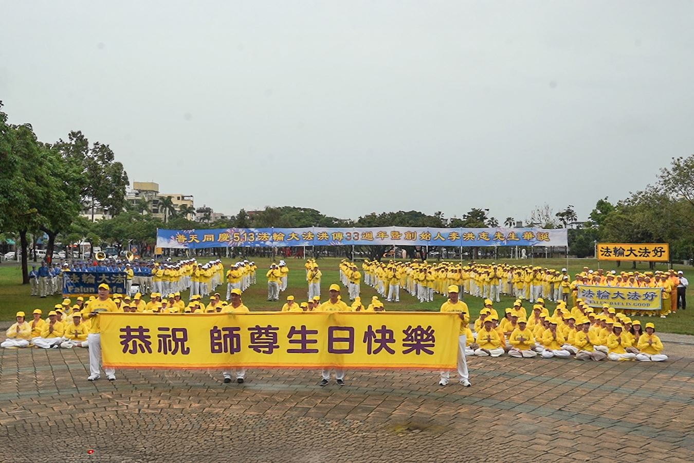 ![]() 图1~2:恭祝法轮功创始人李洪志老师华诞暨5.13世界法轮大法日,高雄、屏东部份法轮功学员齐聚屏东市千禧公园,向师尊祝寿谢师恩。 |