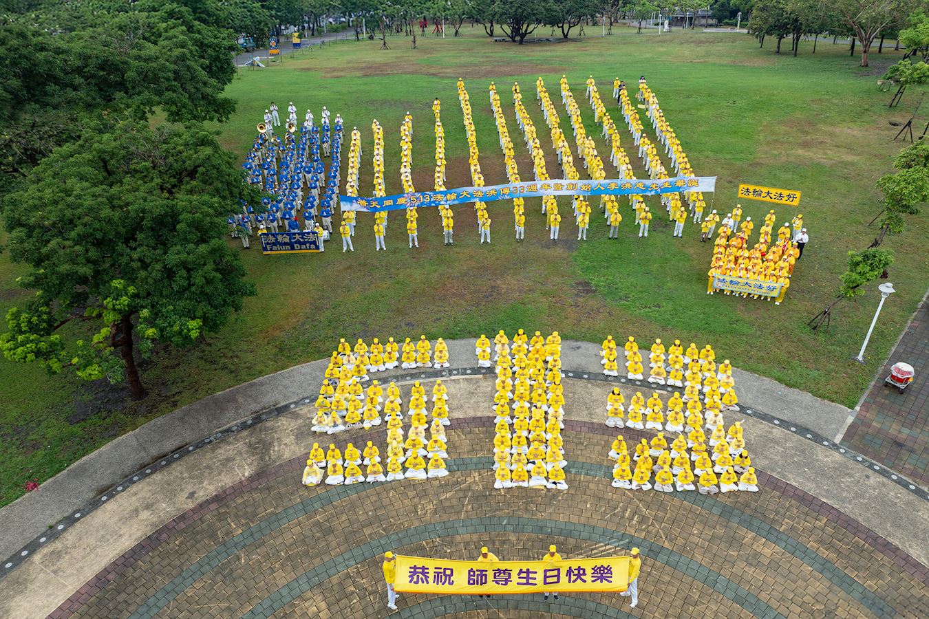 庆祝活动现场学员们排出“513”字形,感恩师父将高德大法弘传于世间,为弟子开启返本归真的回天路。