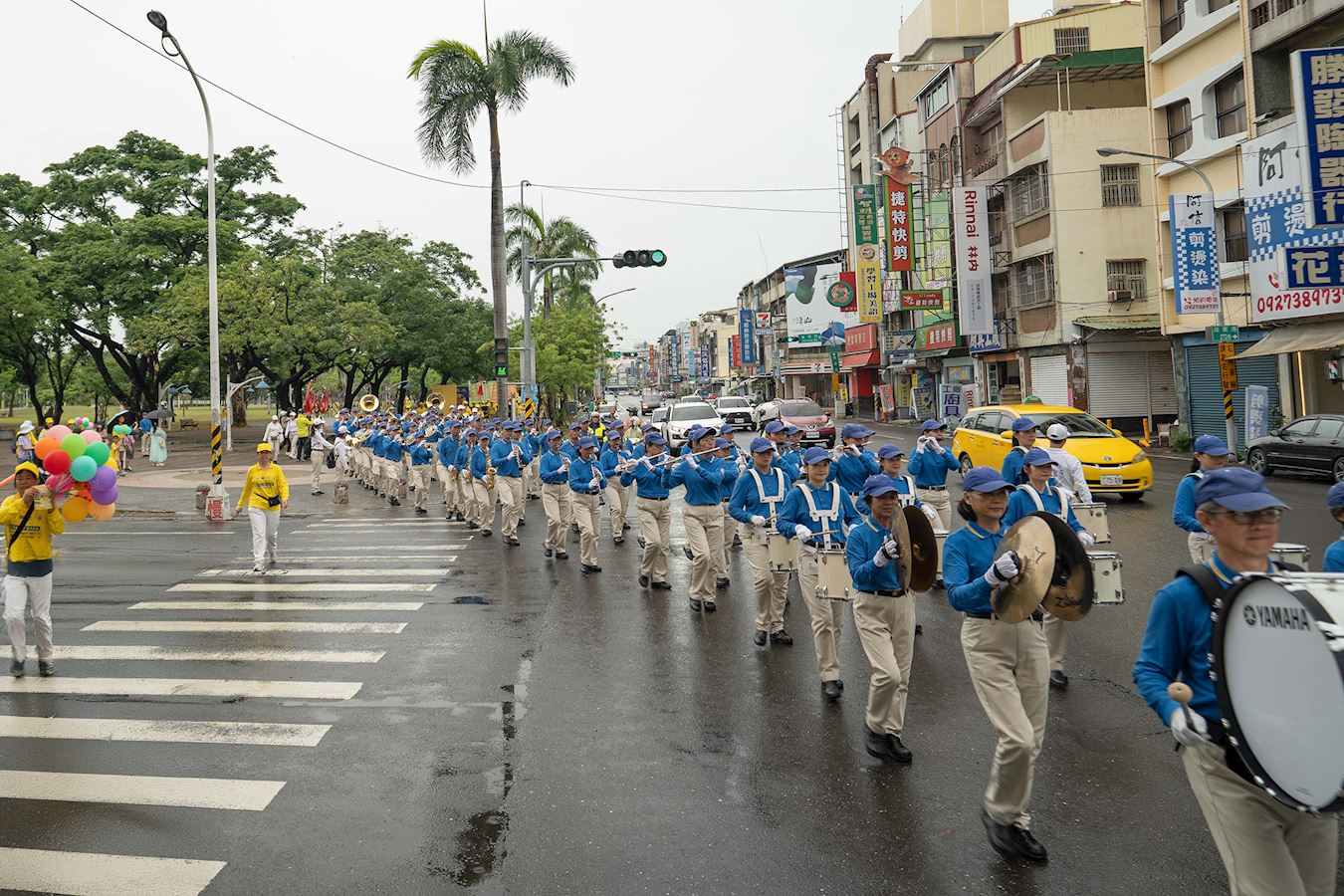 市民谢先生和吴先生被震撼人心响彻云霄的乐音吸引,好奇地驻足观看。谢先生说,第一次看到这么大阵仗的队伍,真是大开眼界!平常只见法轮功的人十来个在公园炼功打坐,没想到这么多人;他们个个看来精神抖擞、感觉很自律,很不错。