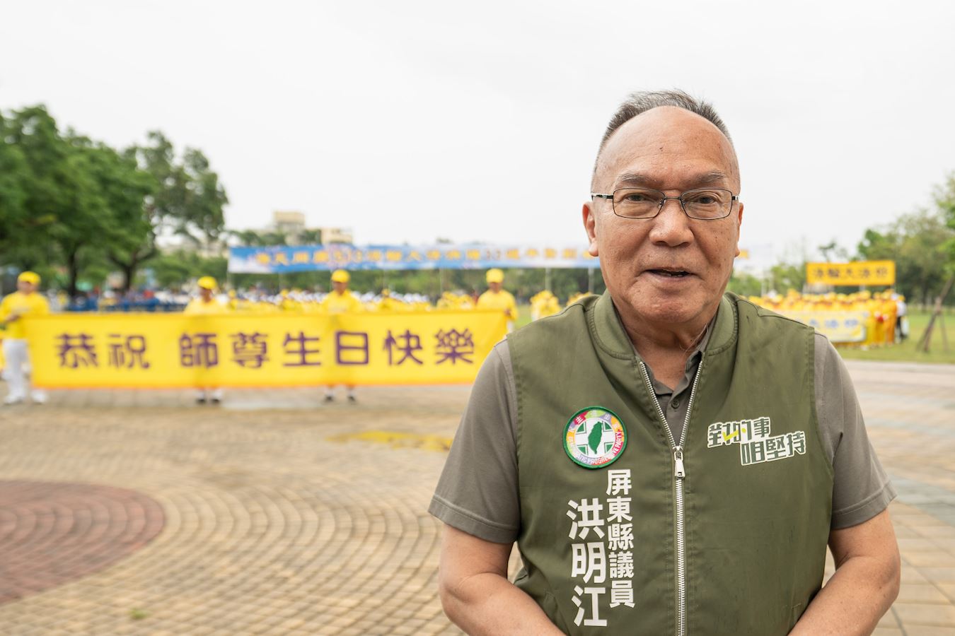 活动当天,屏东主流政要包括:立法委员钟佳滨、屏东县议员洪明江、财团法人非营利机构常务董事暨前县议员李清圣等也到场祝贺世界法轮大法日暨李洪志大师“生日快乐”!