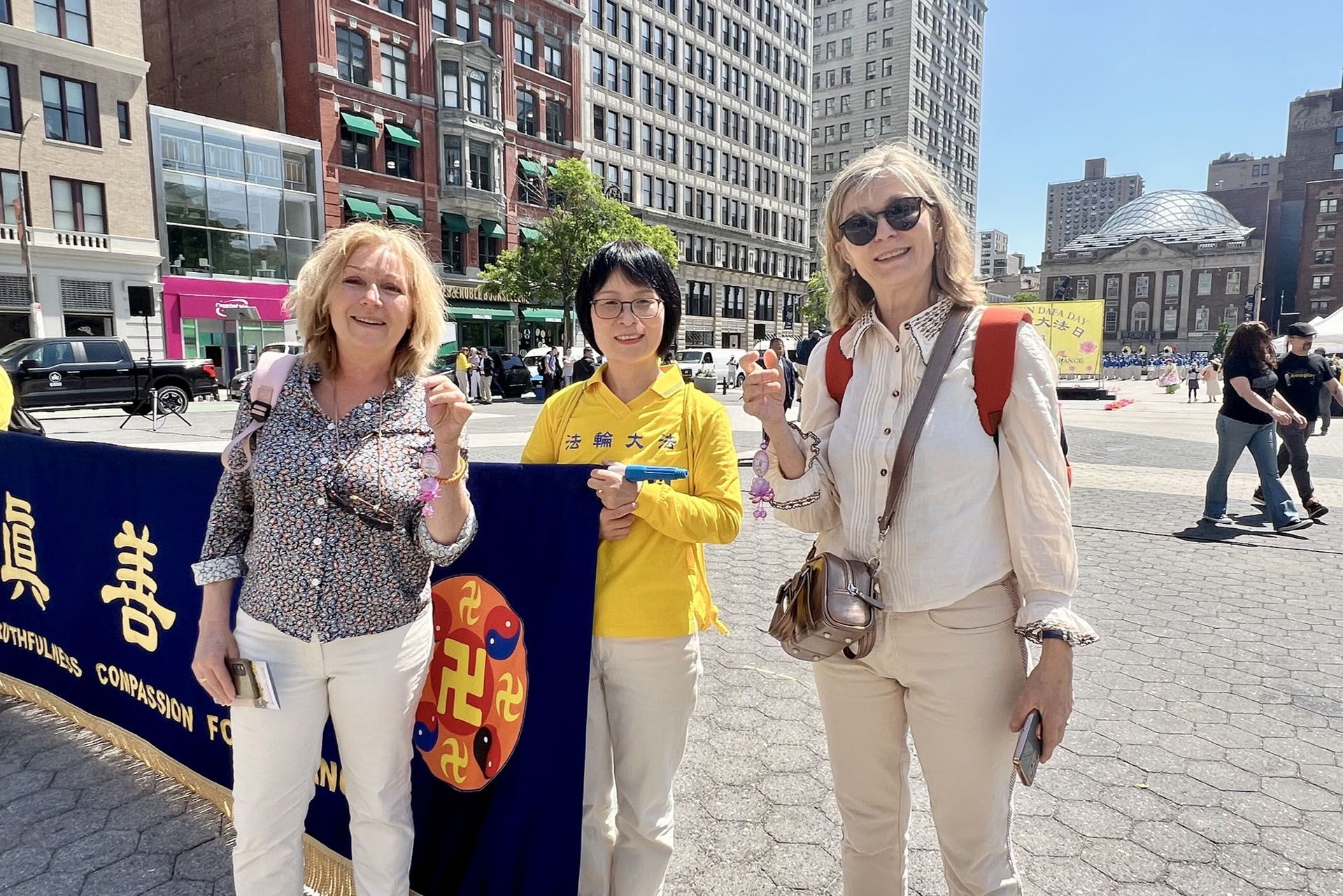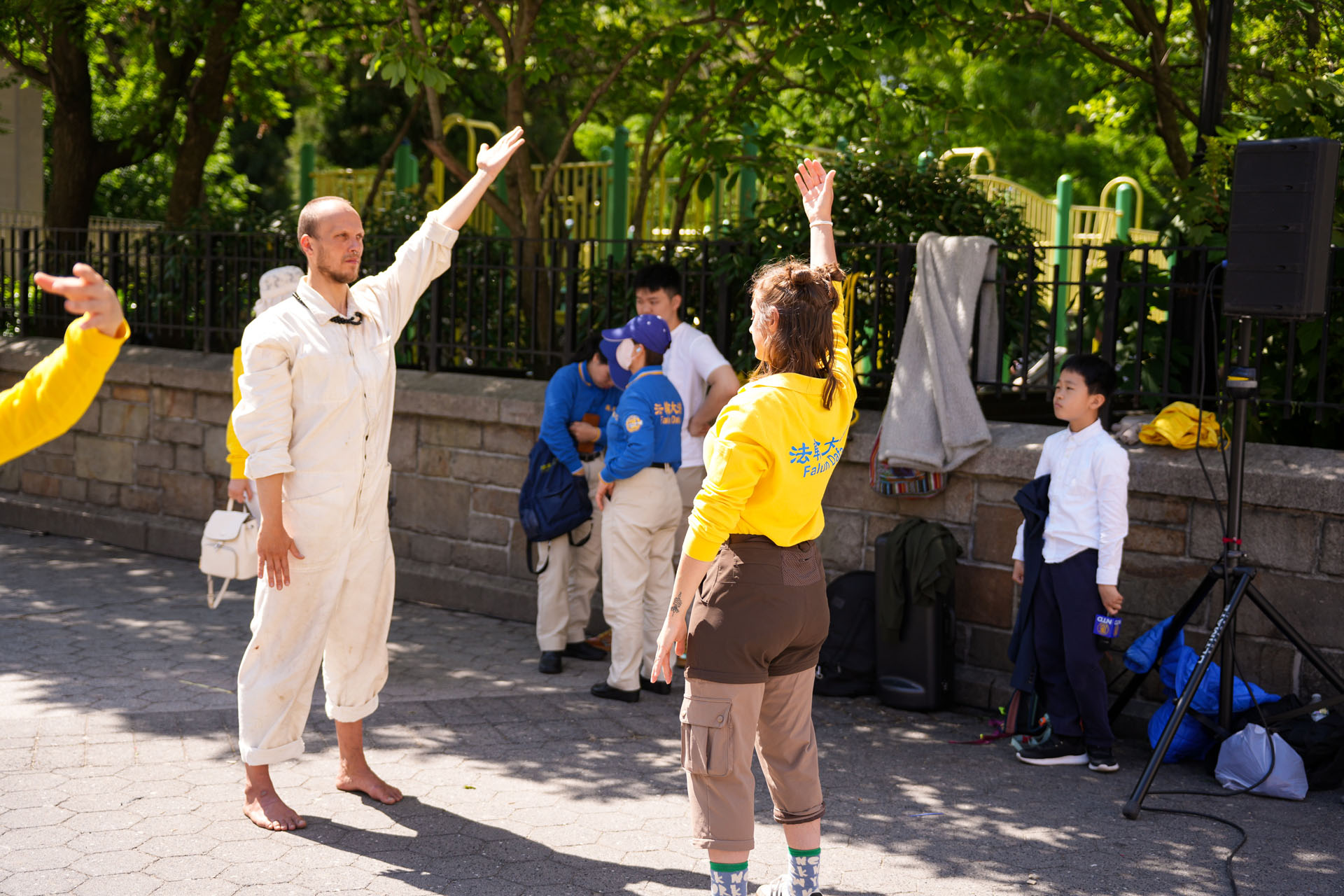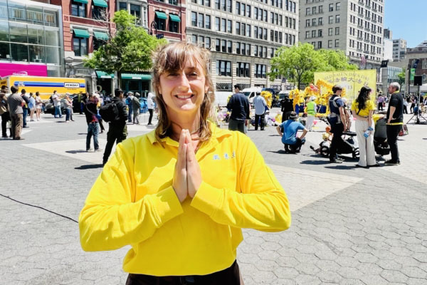 来自长岛的妮可·菲尼(Nicole Feeney)特意来到联合广场,向路人传递法轮大法的资料,并义务教有兴趣者学炼五套功法。她表示,是法轮大法当初使她从混乱与焦虑中走出,找回真正的自己。