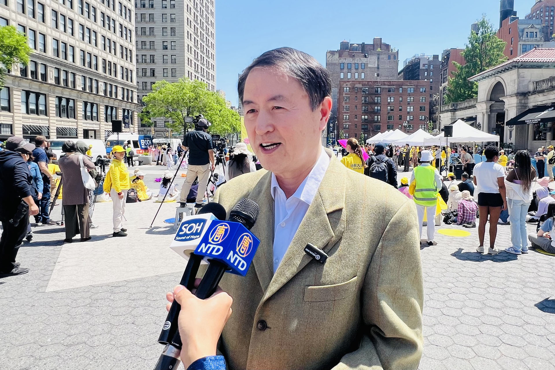 当天,住在王后区法拉盛的刑克滨一早就来到联合广场参加集体炼功,他分享道:“我找到了人生的终极真理。”邢克滨表示,阅读法轮大法的著作使他突然明白了人生的意义,“觉得以前好象就是白活了一样。”他在坚持自修三年后,开车前往纽约州米德尔顿参加了法轮功九天学习班,溶入到集体学法修炼当中。