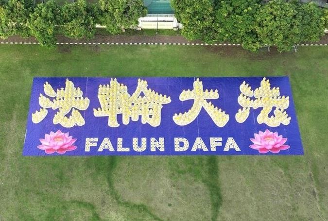 ![]() 图2:学员们排出“法轮大法”四个汉字 |