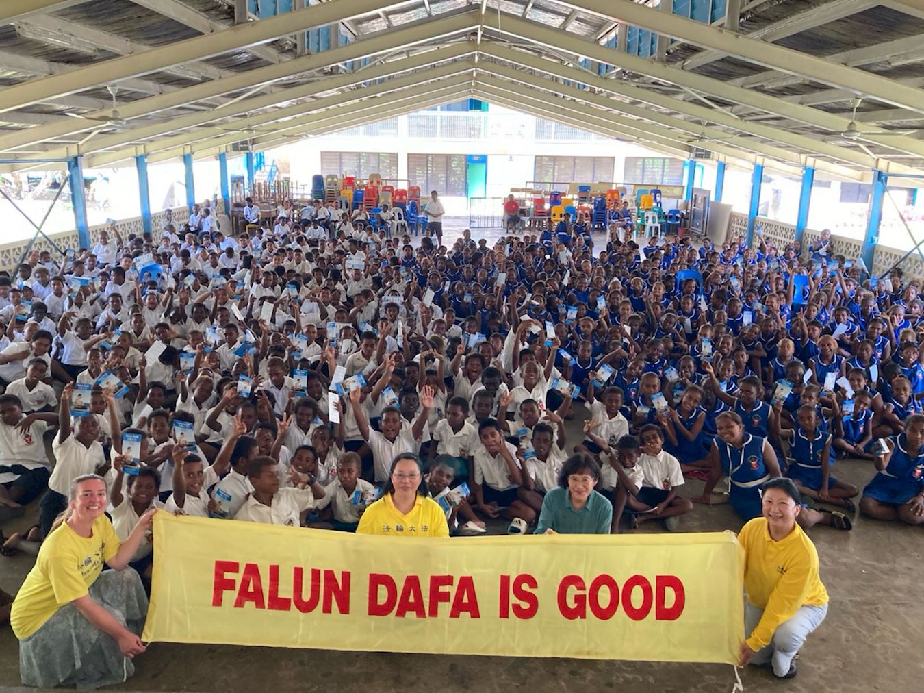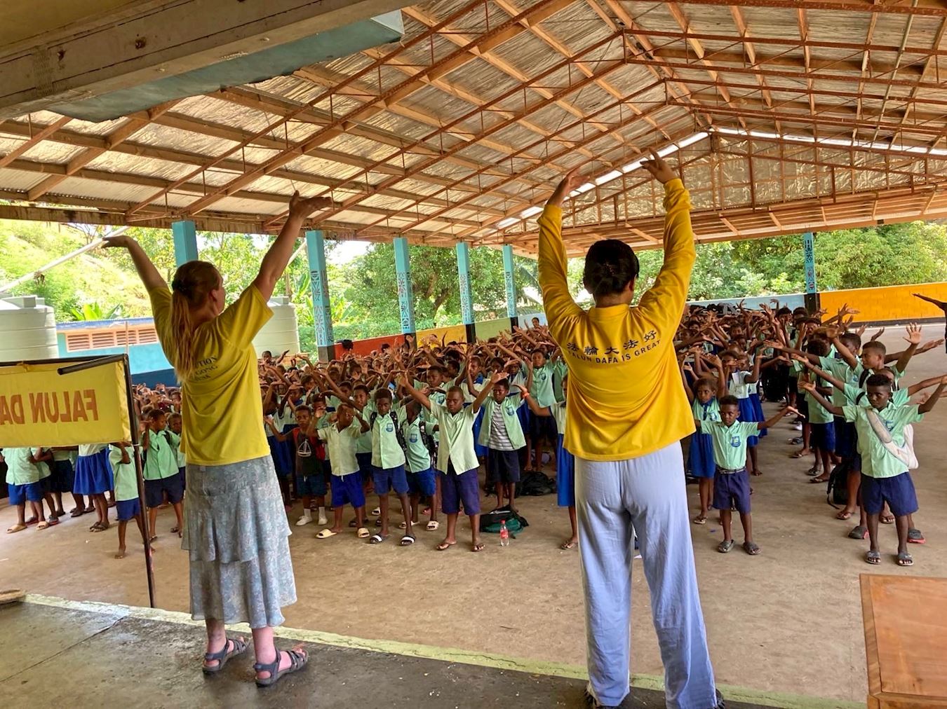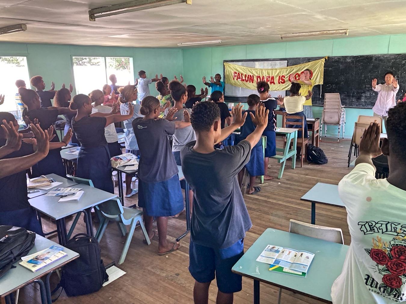 ![]() 图1:二零二五年四月三十日至五月七日,新西兰法轮功学员在所罗门群岛的学校教功。 |