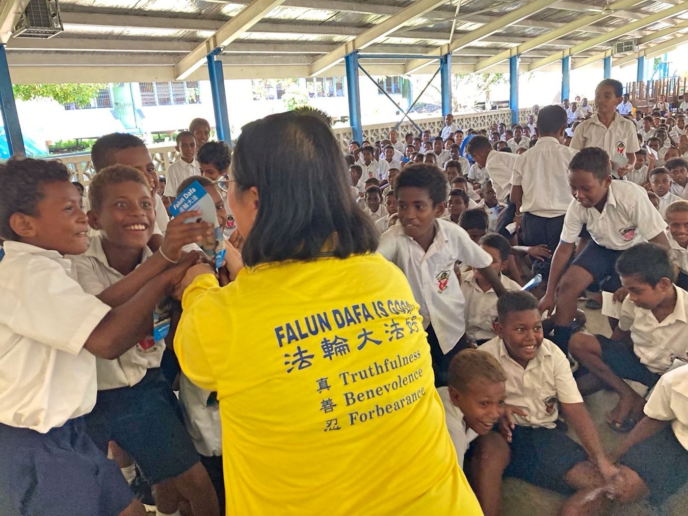 学员又接着说:“你们这边就有中国警察(中共在所罗门有几十个警察,名曰培训所罗门警察),所以你一定有机会接触到中国警察。你明白了真相,也可以分享给你认识的中国人。因为他们都被中共洗脑,或参与过迫害法轮功。请告诉他们美国众议院已经通过了《法轮功保护案》。”他听的非常认真,表示理解,周围聚集的人都同时在听。