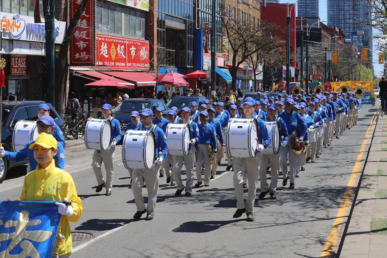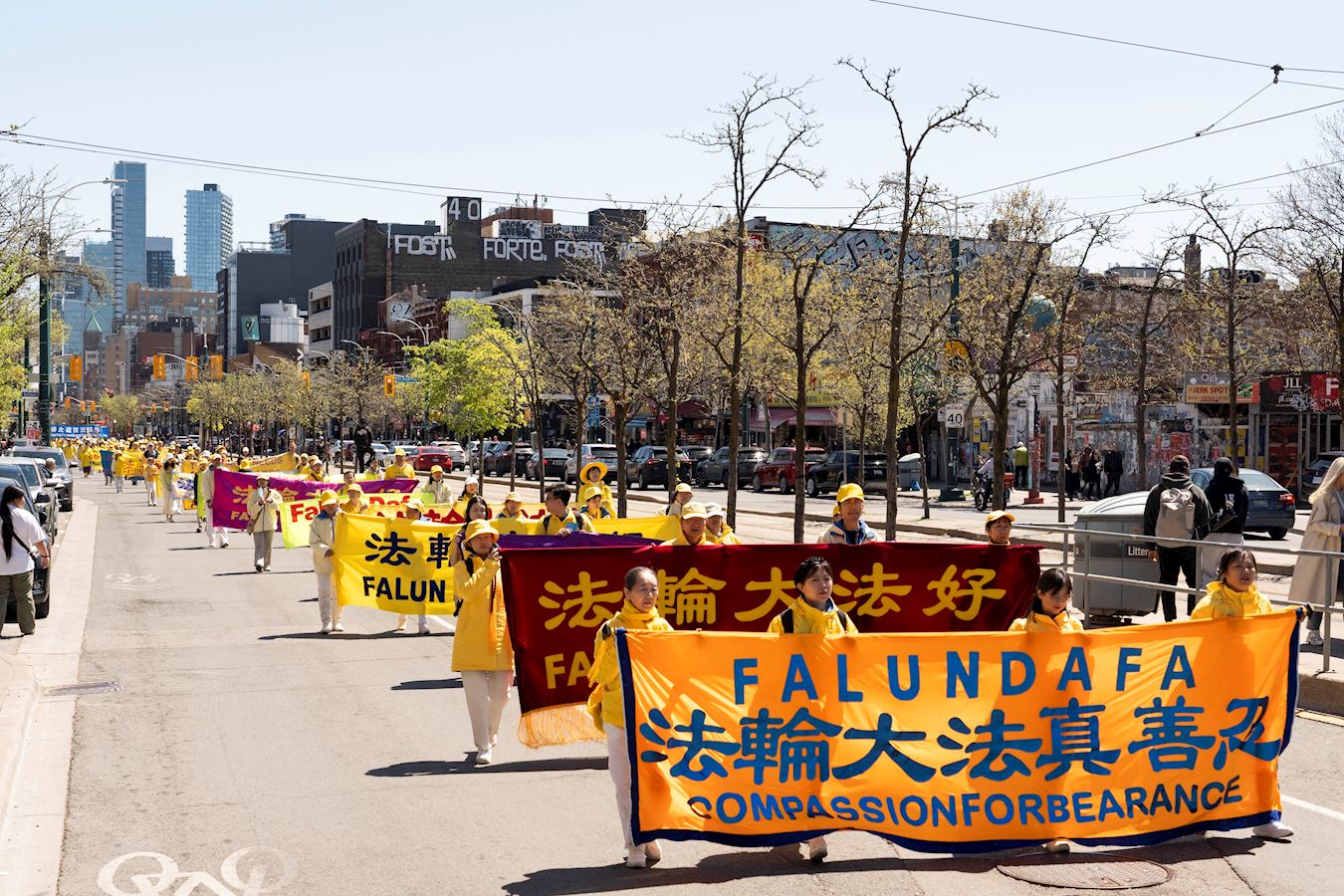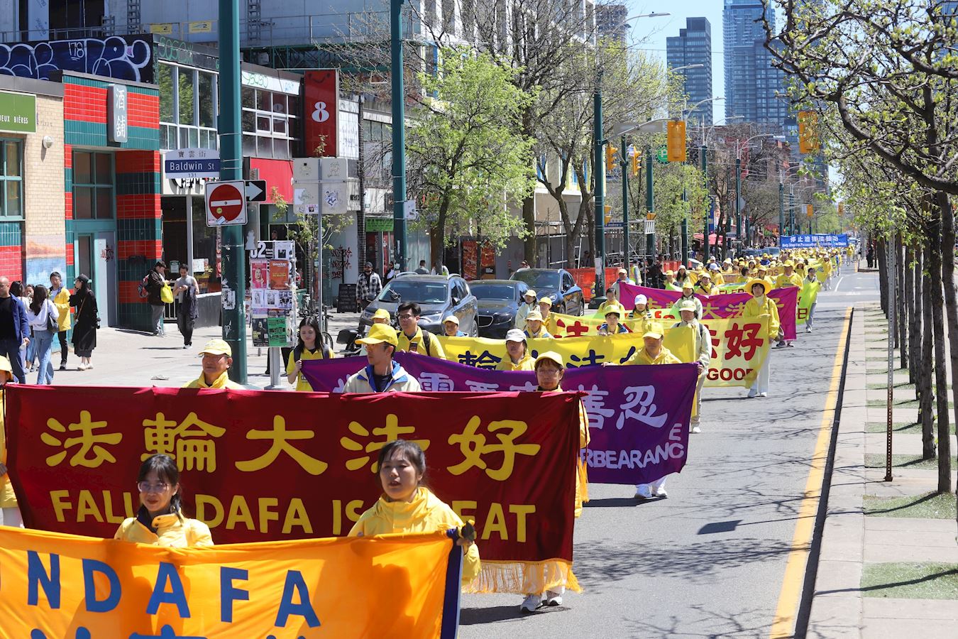 ![]() 图9:法轮功学员们的游行队伍经过多伦多市唐人街。 |