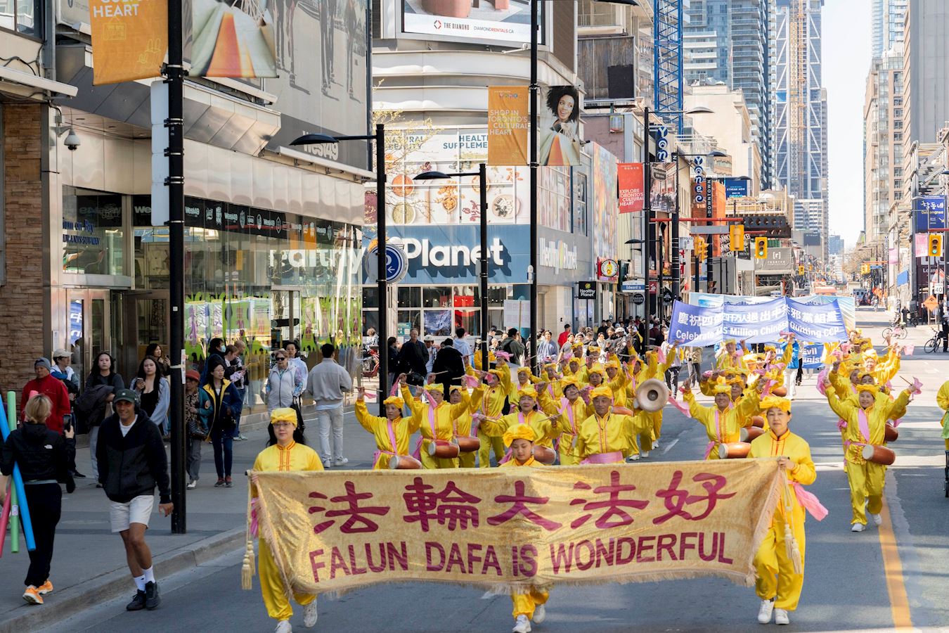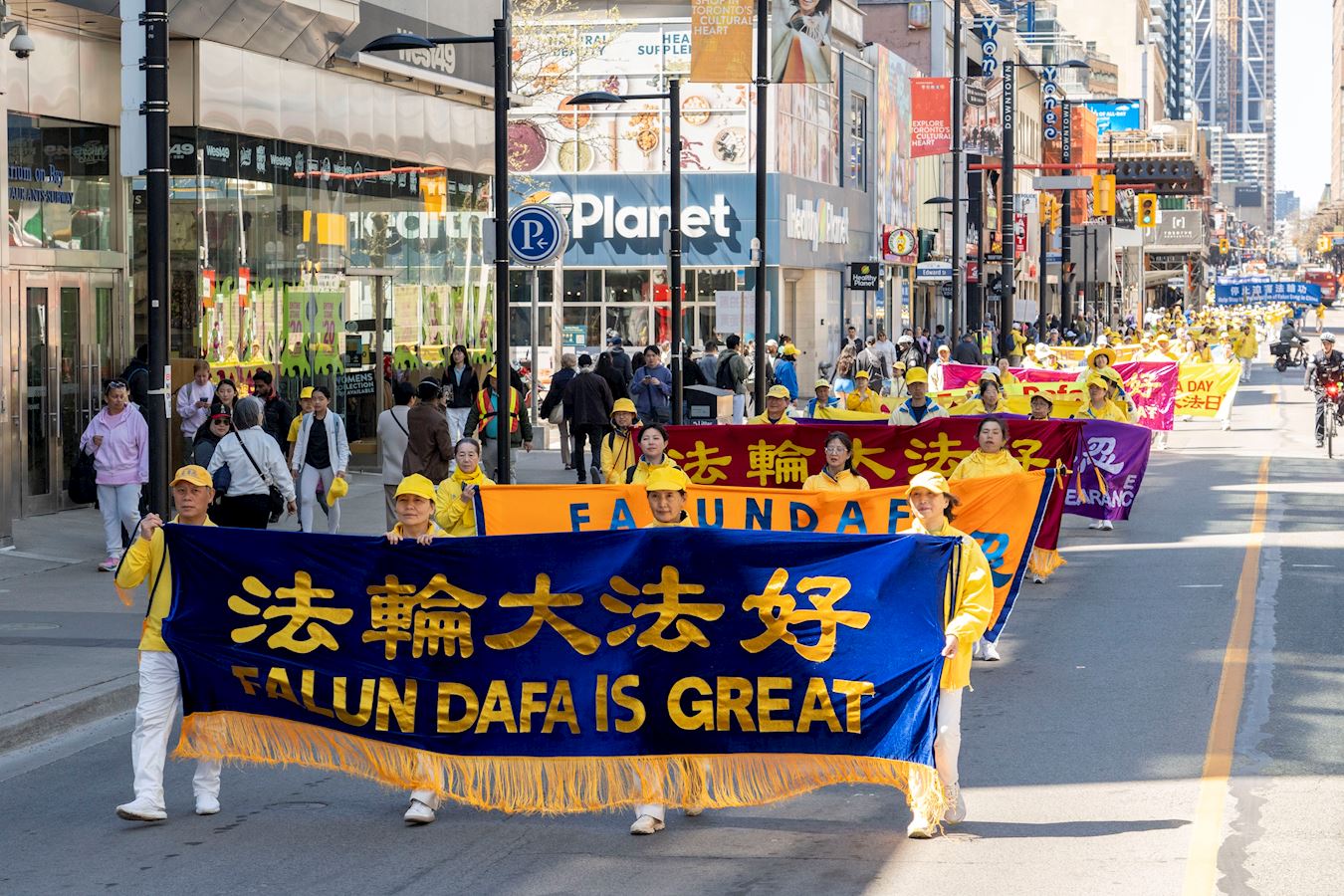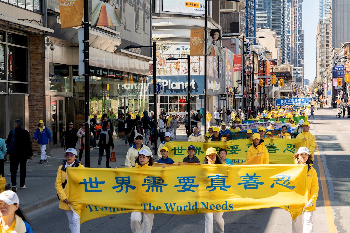 ![]() 图9:法轮功学员们的游行队伍经过多伦多市唐人街。 |