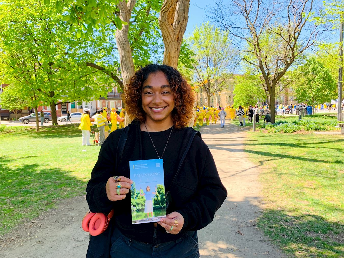 巴兰(Baran)是一名瑜伽师,她认为大法的游行队伍给人感觉很美好,令人非常着迷,所以自己便走来想了解更多。