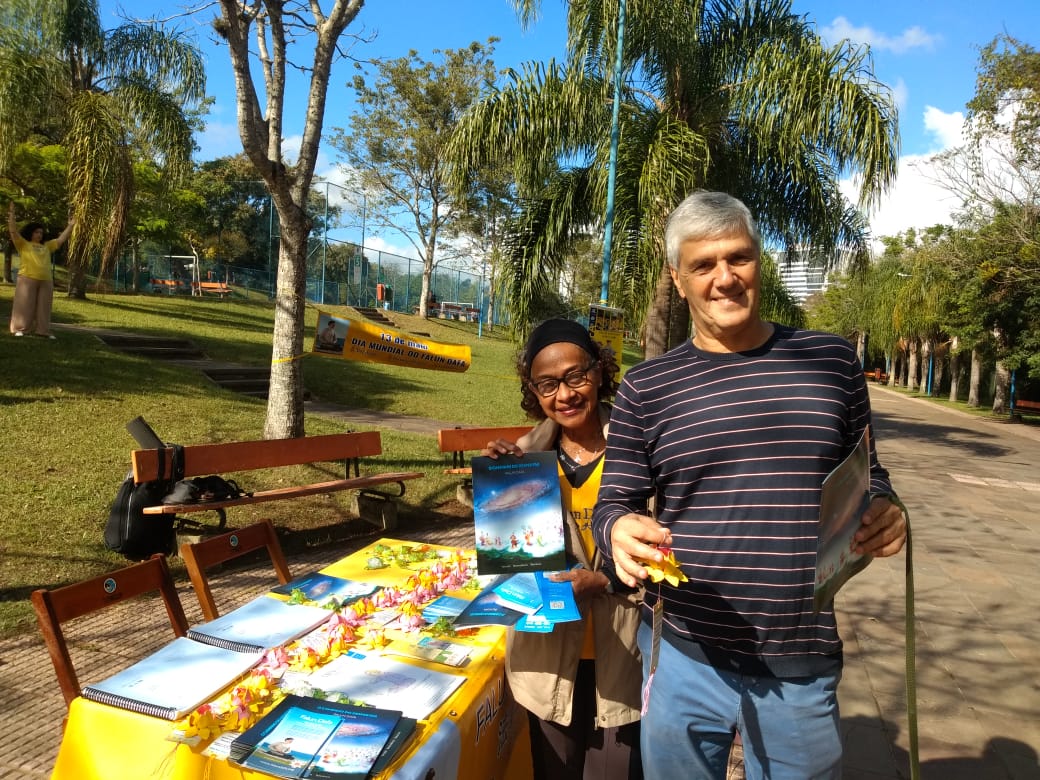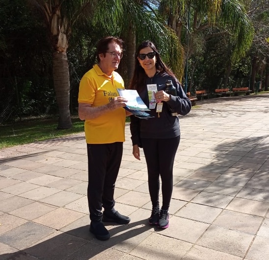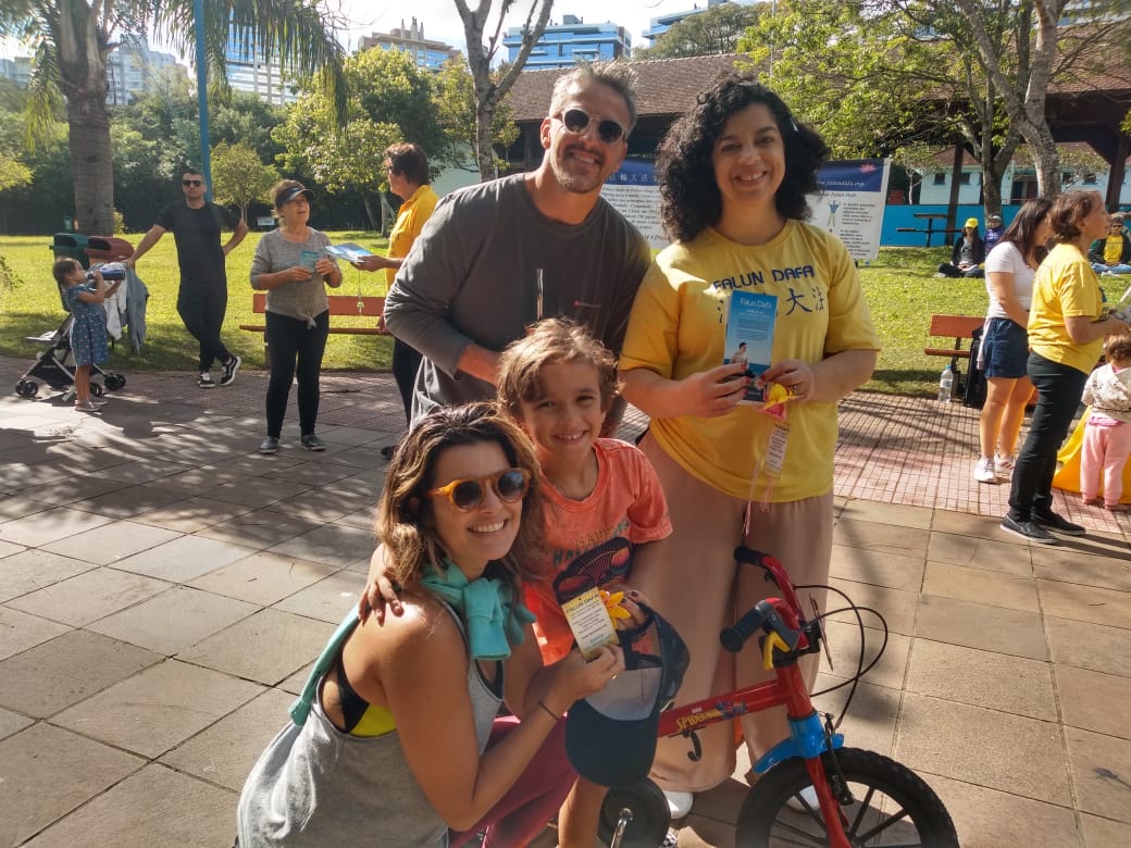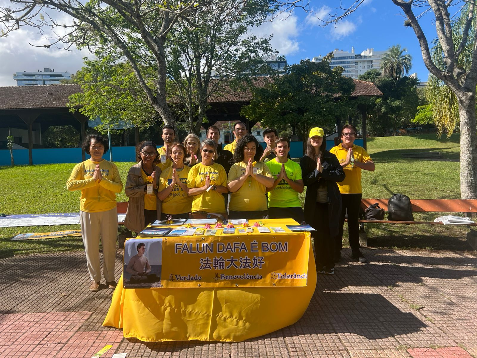 活动在市中心的德国公园 (Parque Germânia) 举行。当日蓝天晴朗,阳光灿烂,学员们在绿草中炼功及发真相资料和小莲花,与民众互动。