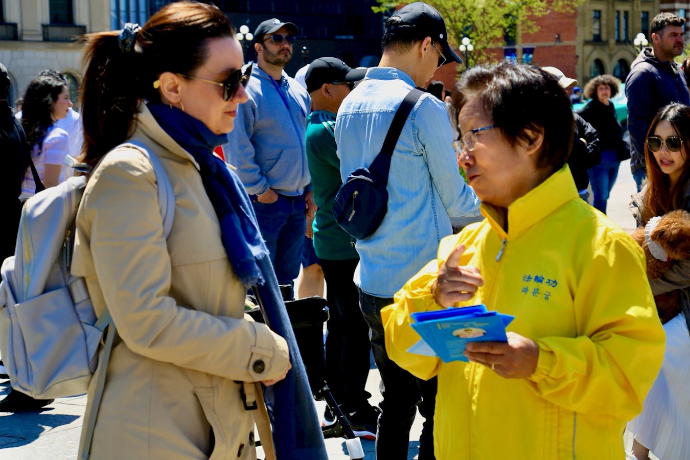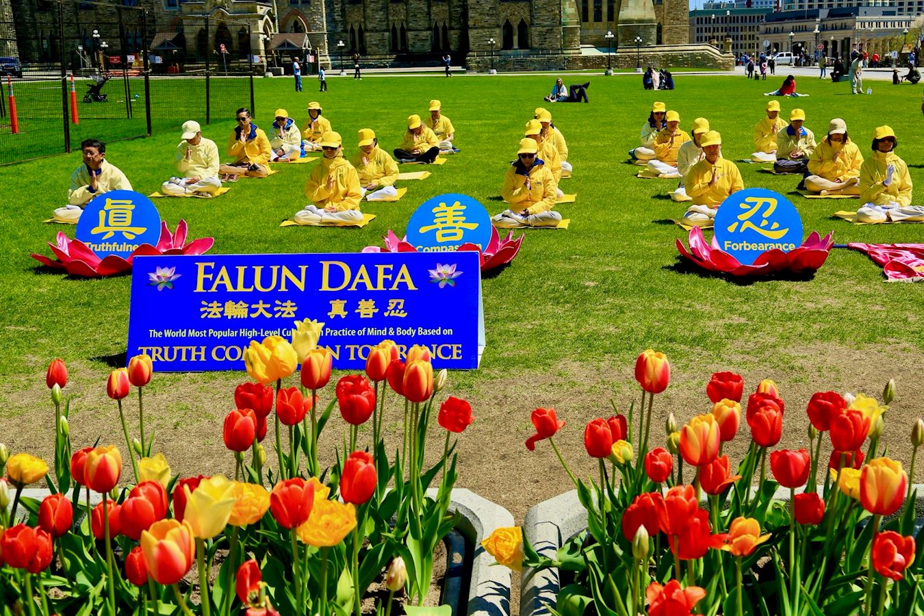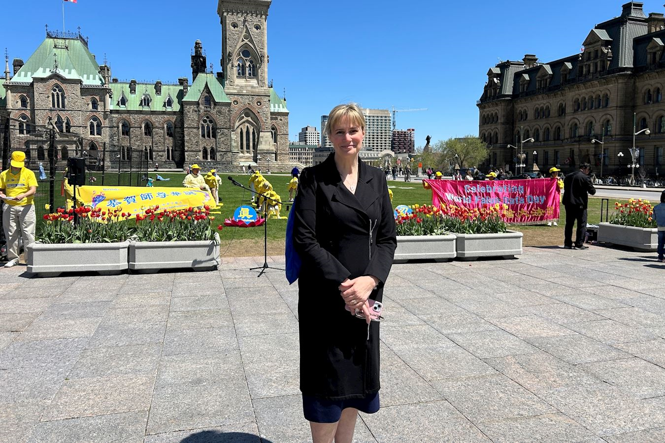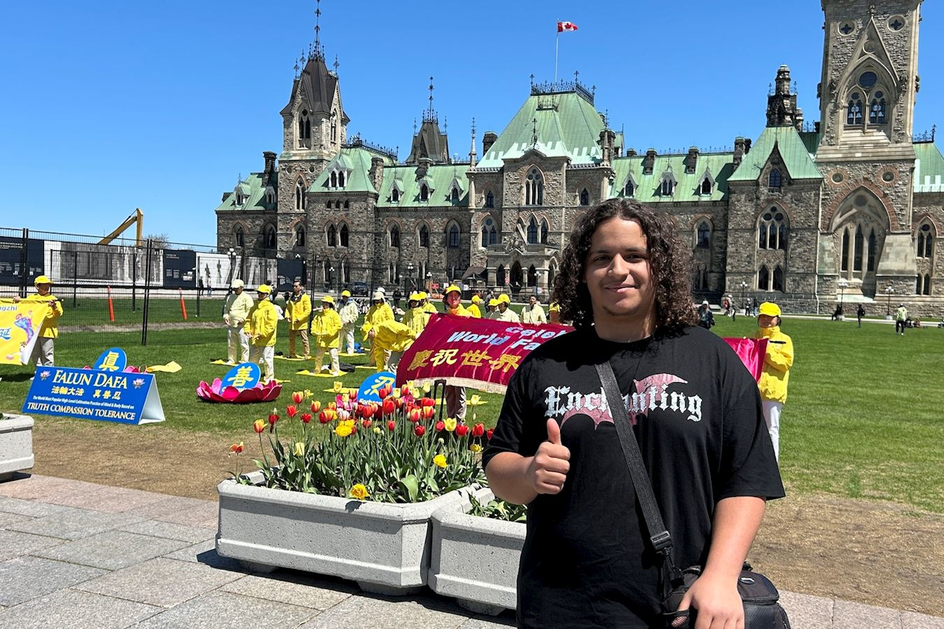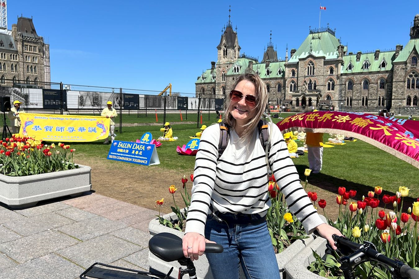 当天恰逢母亲节和渥太华郁金香节,法轮大法日的庆祝活动迎来大量渥太华本地居民和来自世界各地的游客,他们被法轮功学员祥和宁静的功法展示深深吸引,并想进一步了解法轮功。