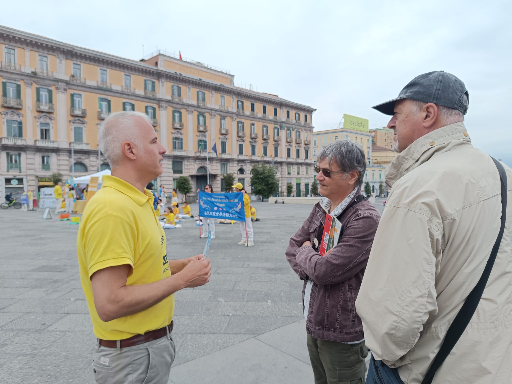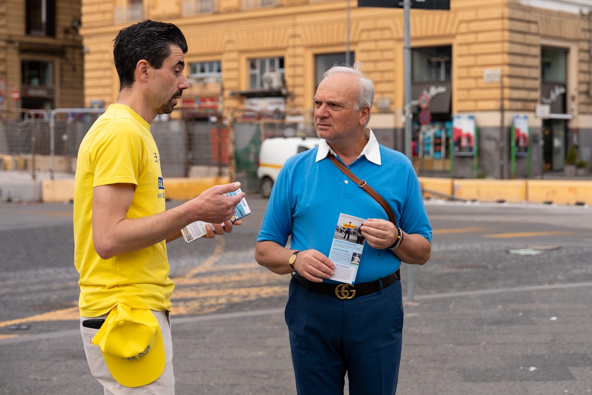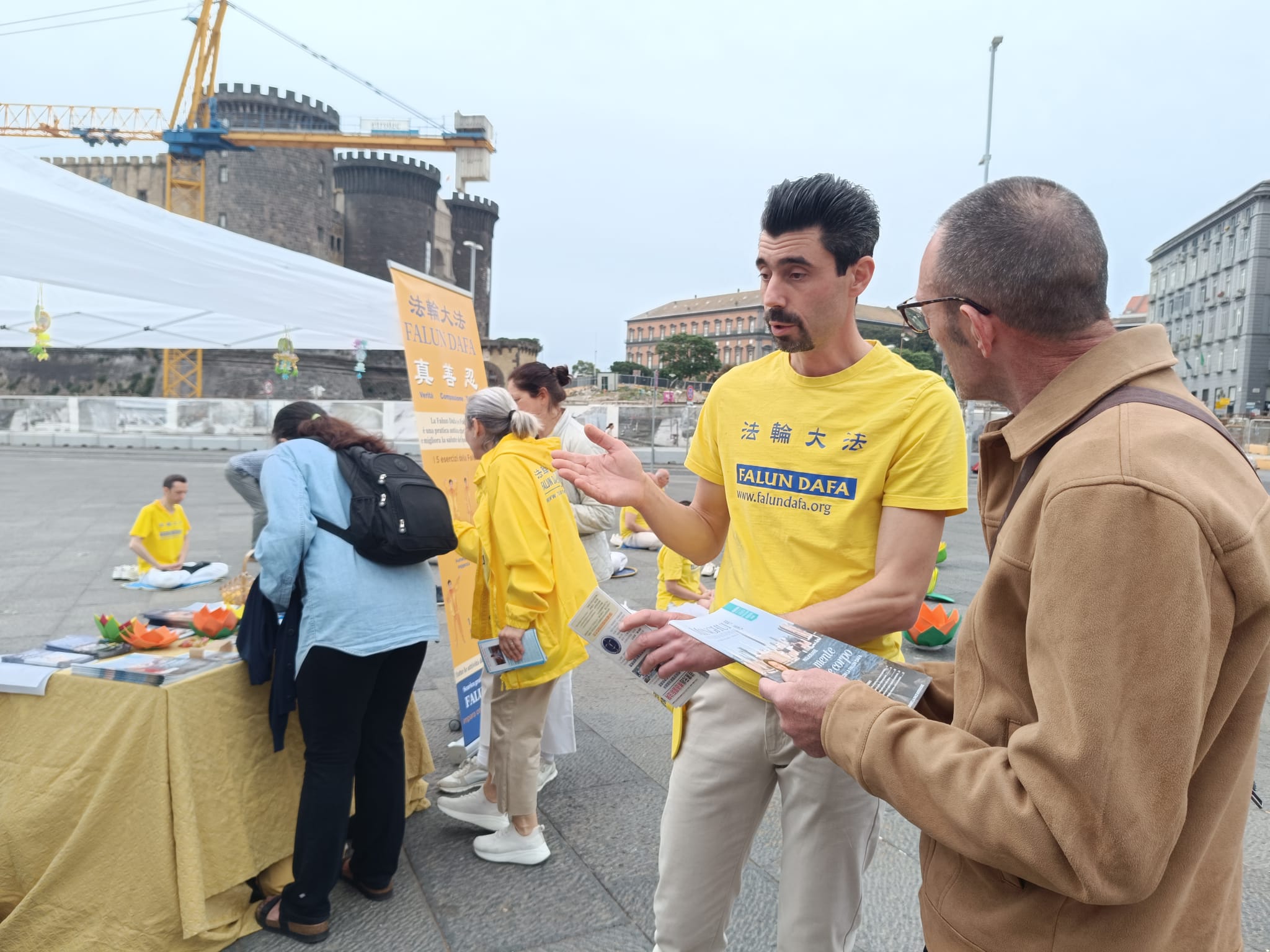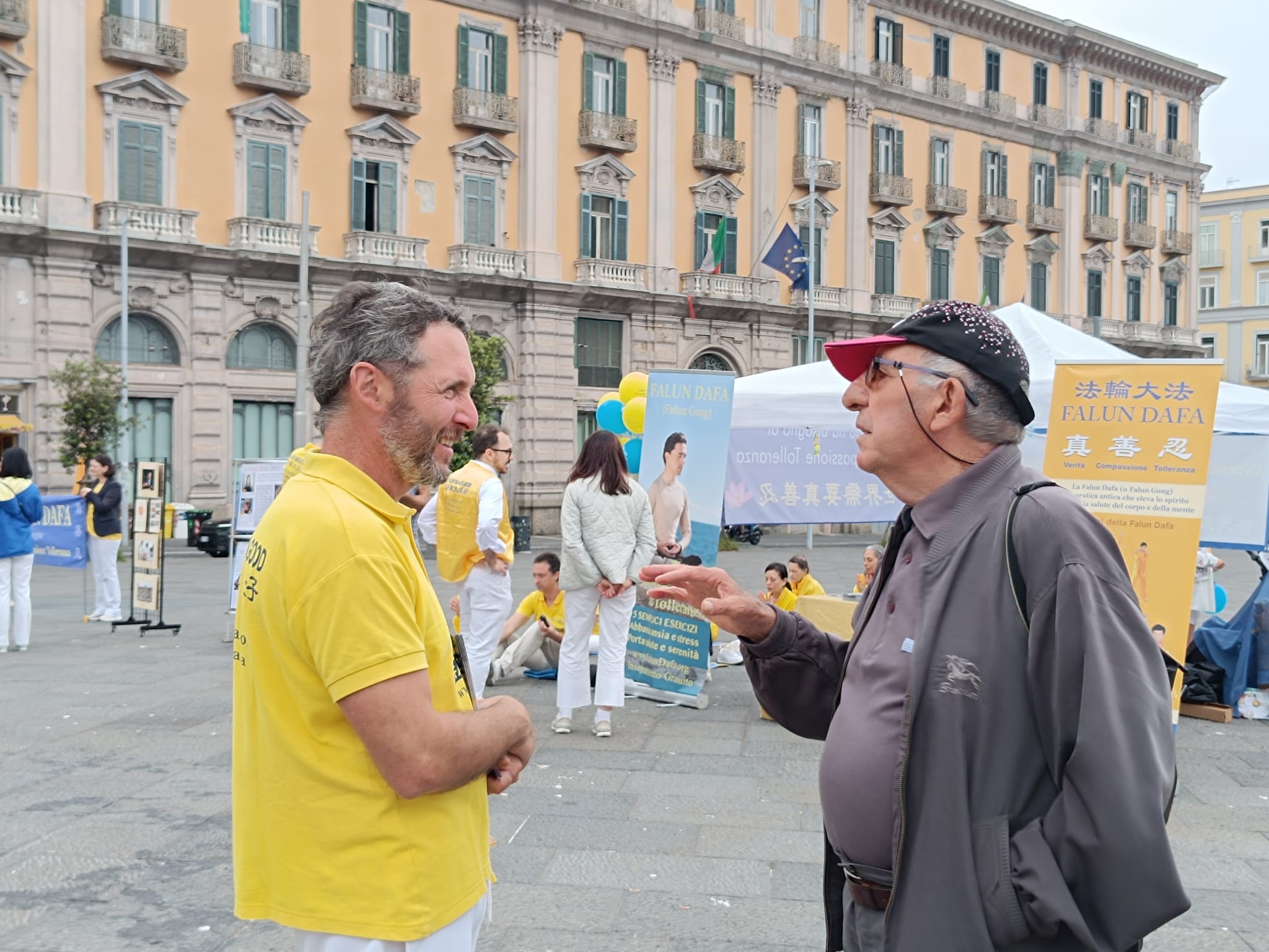 坎帕尼亚大区议员联盟议员塞维利诺·纳皮(Severino Nappi)受邀来到活动现场,表示对此次活动的支持和态度,在接受采访时他真诚地说道:“五月十三日这天,包括今天的庆祝活动真的很重要。因为在当今这个危机四伏的世界,法轮大法真、善、忍的理念,像一盏明灯,给处于乱世中的世人指明正确的道路!这真的是一个非常重要且正面的信息。”