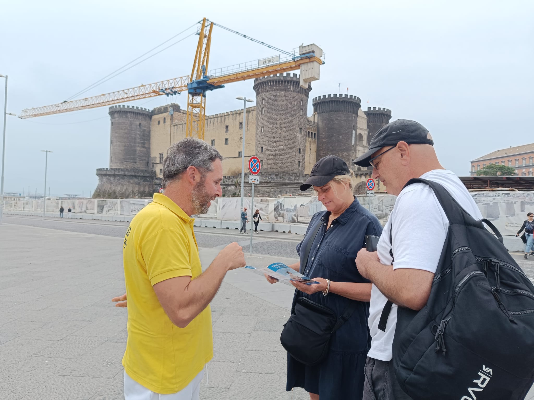 五月十一日从早上九点到晚上六点,活动在市中心的那波理(NAPOLI)市政府广场举办,市政府广场视野开阔,背靠丘陵上的国立考古博物馆,面朝那不勒斯(Naples)港,碧蓝的海面天际是举世闻名的卡布里岛和苏伦托海岸,雄伟的维苏威火山屹立于那不勒斯海湾,与市政府广场旁的那波理新城堡遥相呼应,广场链接着皇宫及欧洲最古老的圣·卡洛(Teatro San Carlo)歌剧院,这里每天都有世界各地的大量游客及当地人来此观光游览。