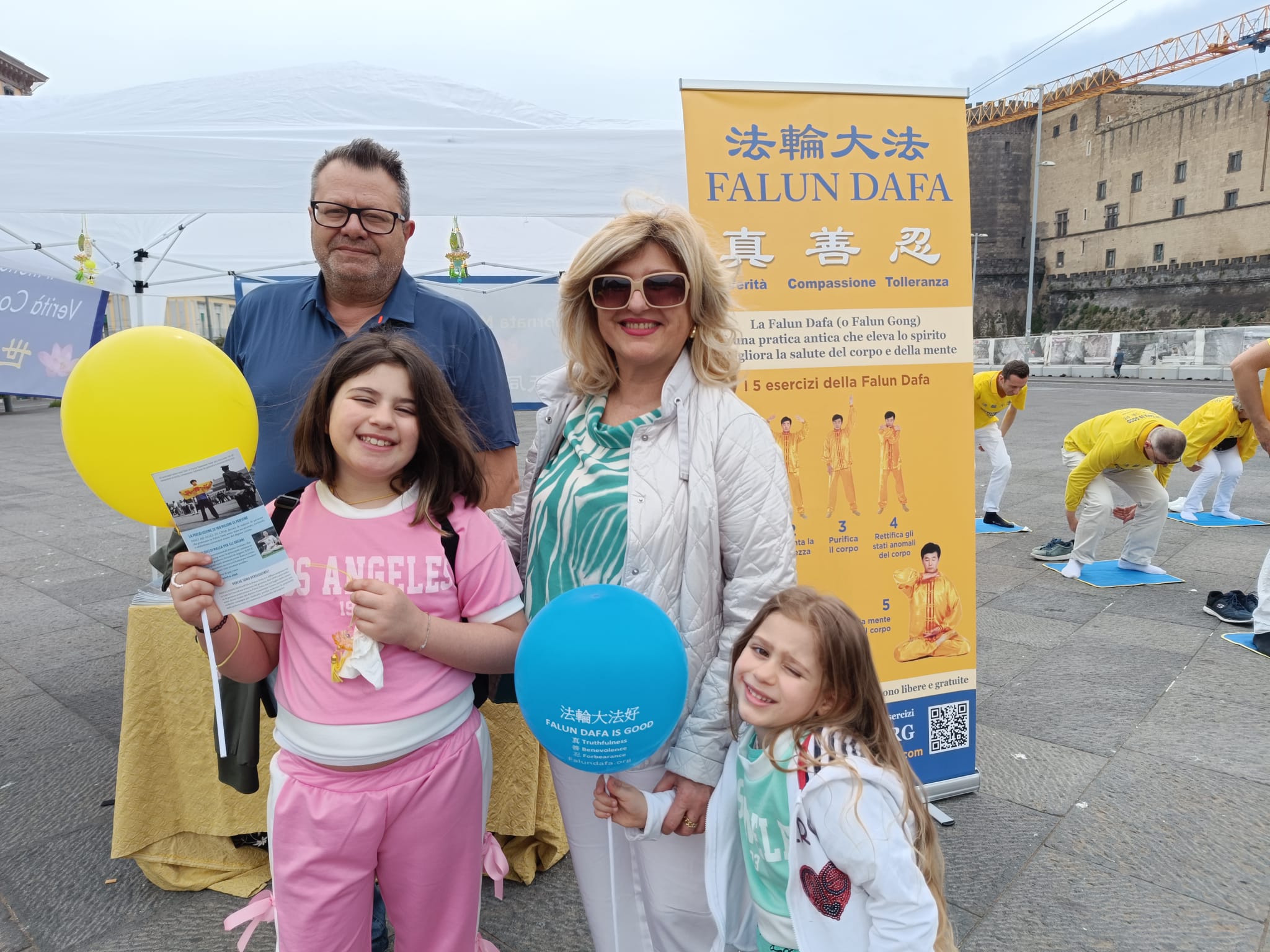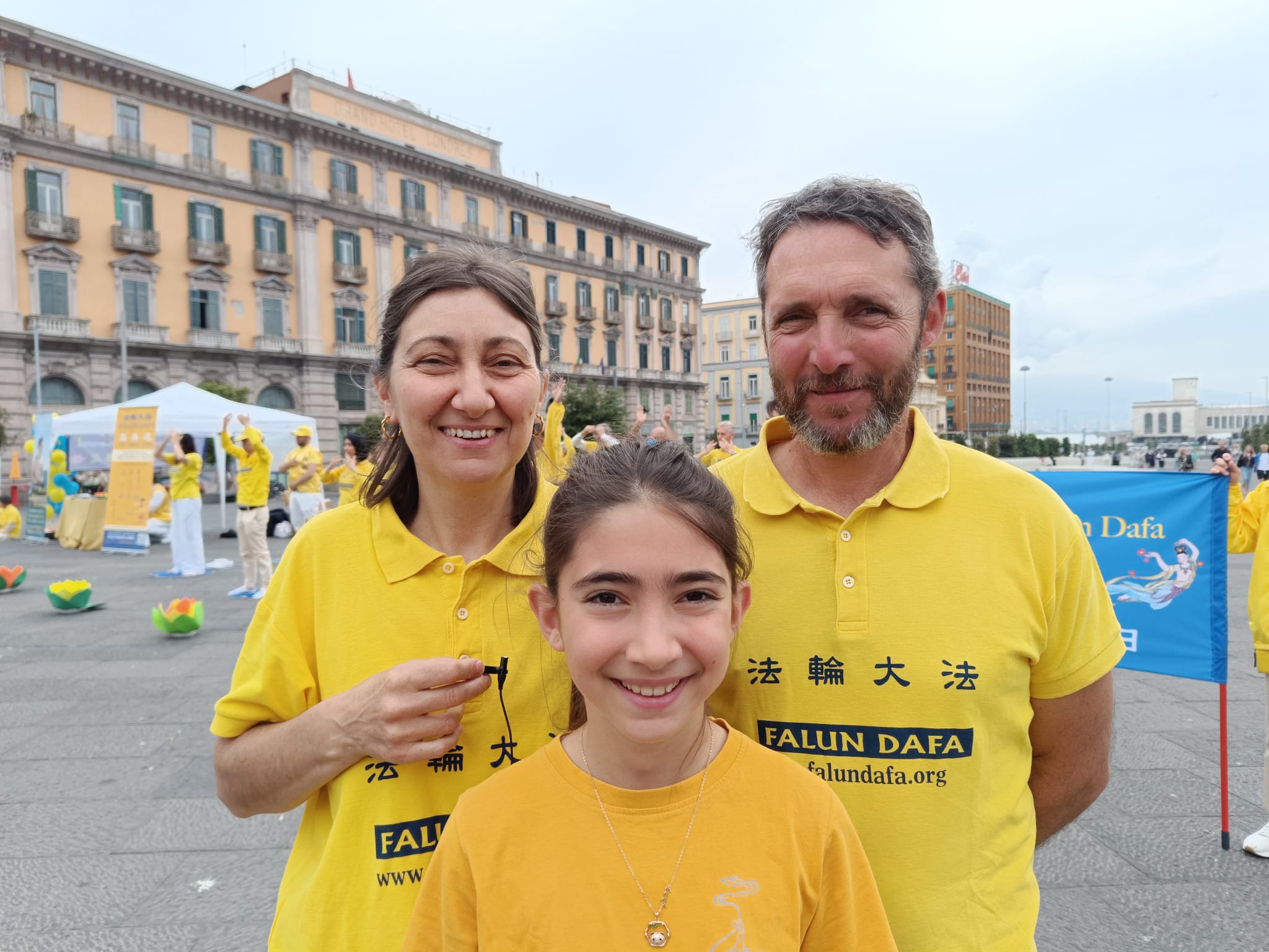 来自文艺复兴发源地托斯卡纳大区的艾瑞柯(Erica)和乔丹诺·册莱(Giordano Cellai )一家,在庆祝法轮大法日这天特意南下来参加这个庆祝活动,表述修炼法轮大法的美好,感激师父的救度之恩!