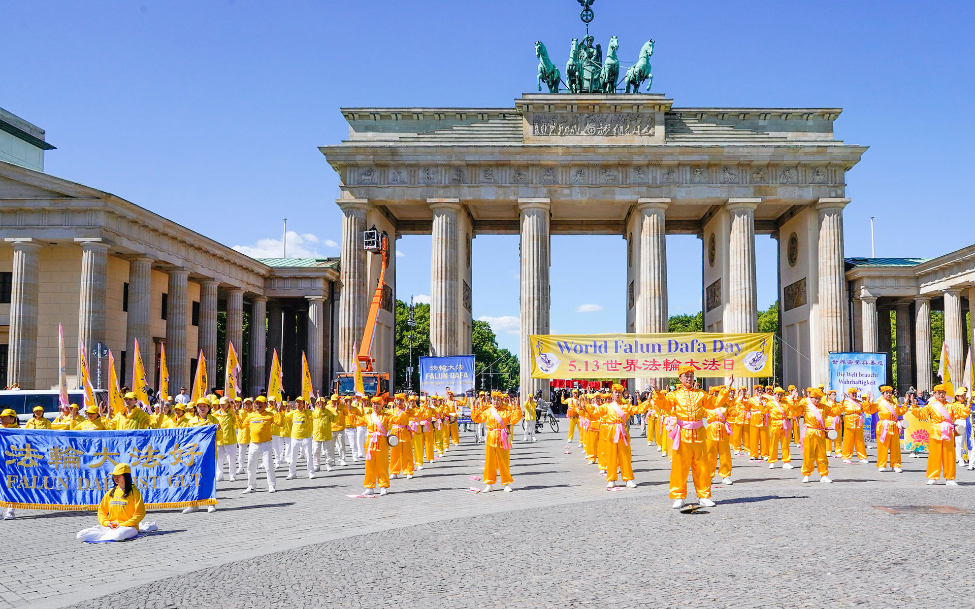 ![]() 图1:二零二五年五月九~十日,德国法轮功学员连续两天在首都柏林举办大型活动,庆祝第二十六届世界法轮大法日暨师父华诞。图为五月九日在勃兰登堡门(Brandenburger Tor)前的活动。 |