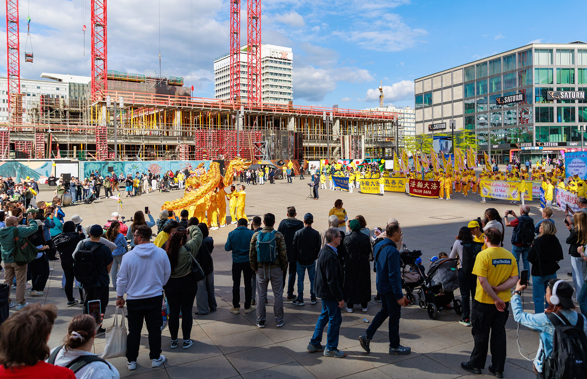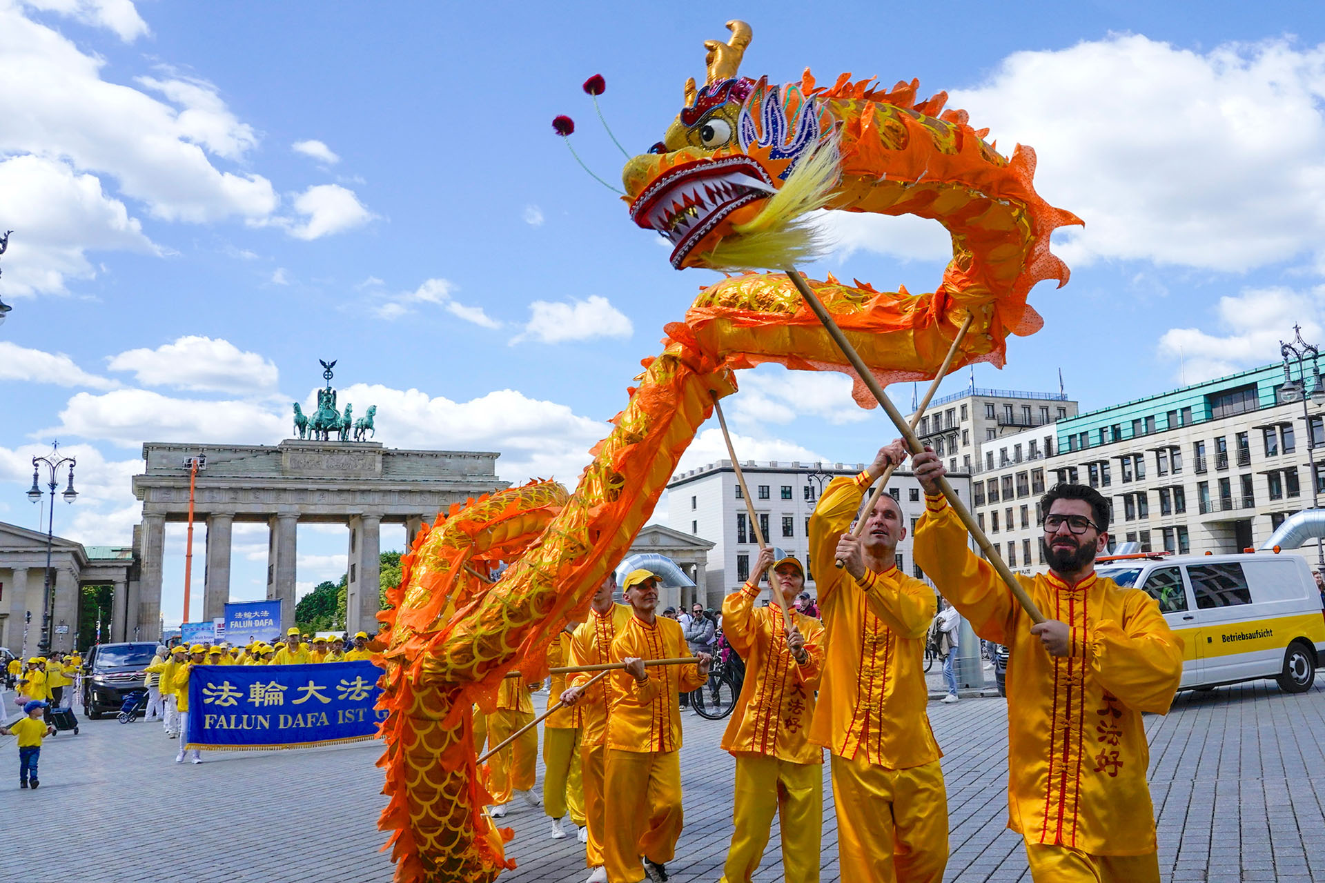 二零二五年五月九至十日,德国法轮功学员连续两天在首都柏林举办大型活动,庆祝第二十六届世界法轮大法日暨师父华诞。活动还邀请了欧洲天国乐团、波兰舞龙队与德国腰鼓队等进行表演,学员们也展示了法轮功功法,吸引了大量民众关注与盛赞。